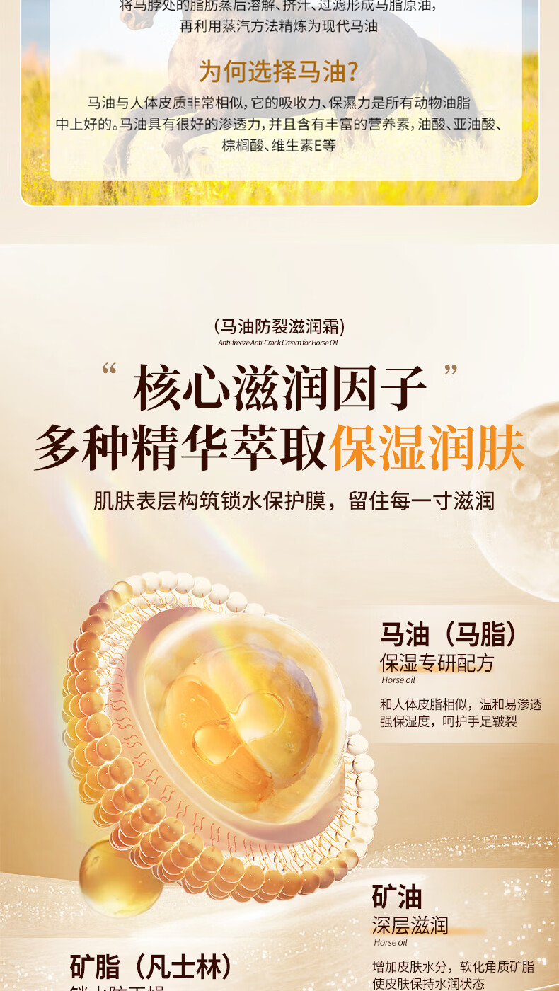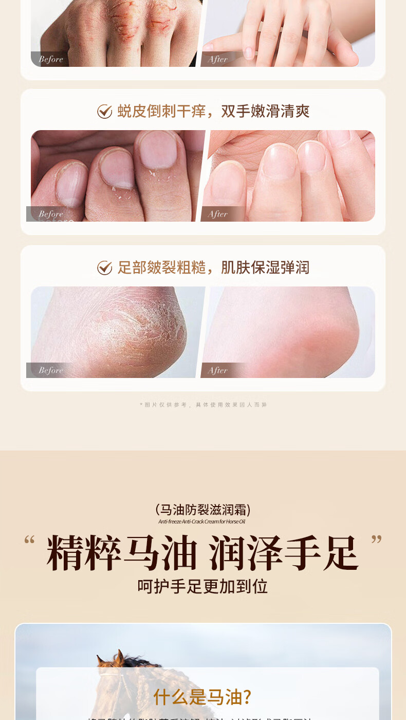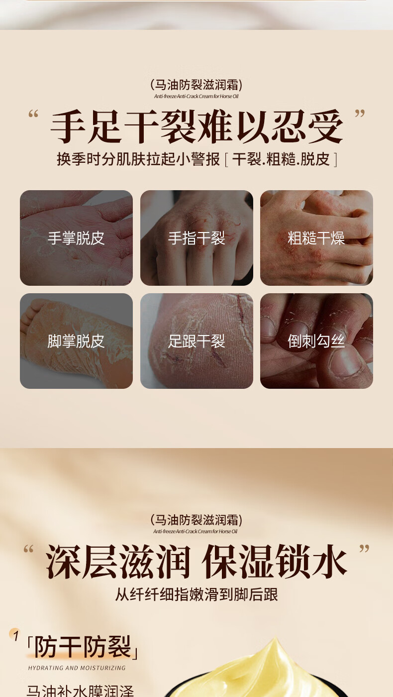 Xiting Horse Oil Anti-Crack Cream for Dry Hands and Feet, Cracked Hands and Heels, Rough Moisturizing Moisturizing Cream 50g 2 Bottles Horse Oil Anti-Crack Hand and Foot Cream