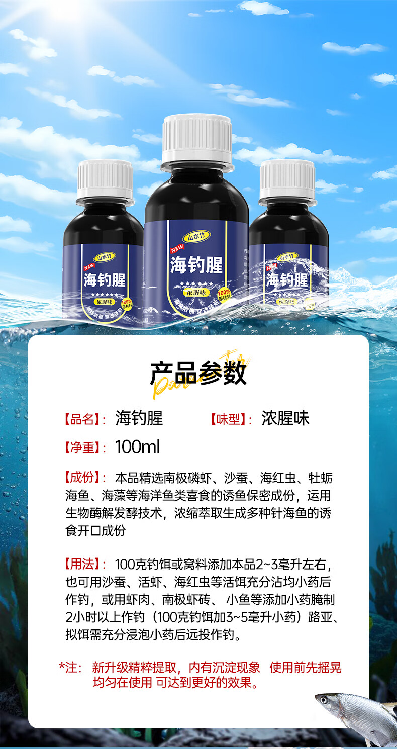 Sichuan Pinshe Sea Fishing Fishy Odor Agent Luya Cube Special Small Drug Additive Autumn and Winter Black Snapper Sea Bass Thick Fishy Bait Fish Attractant Enhanced Concentrated Version 1 Bottle