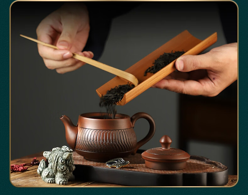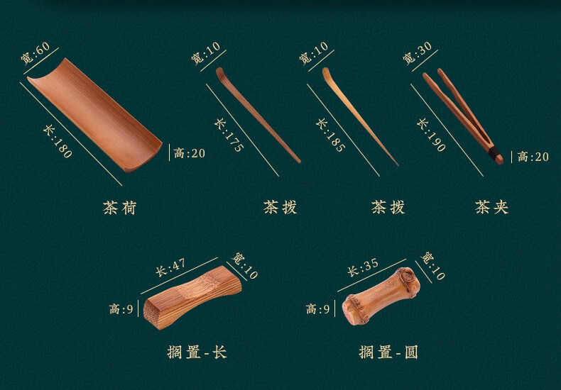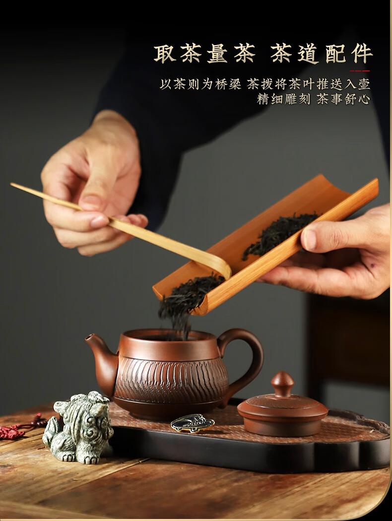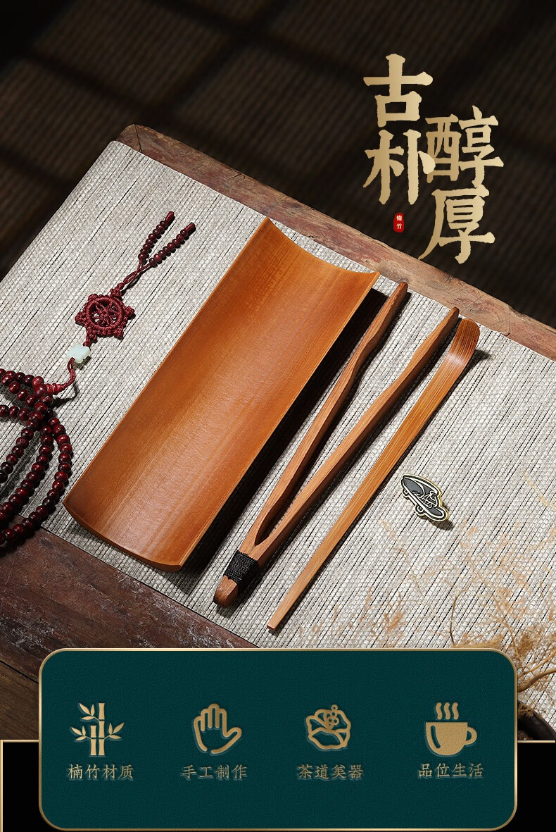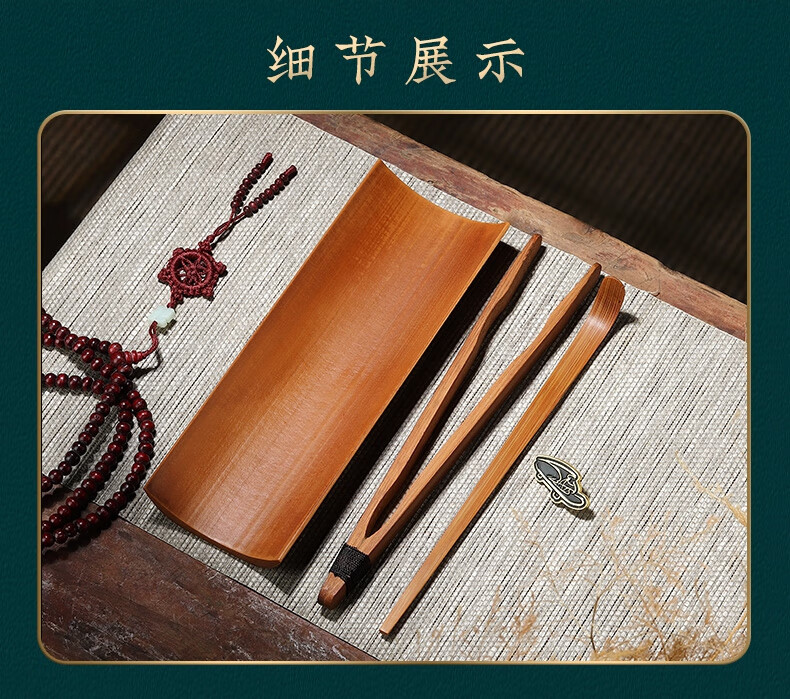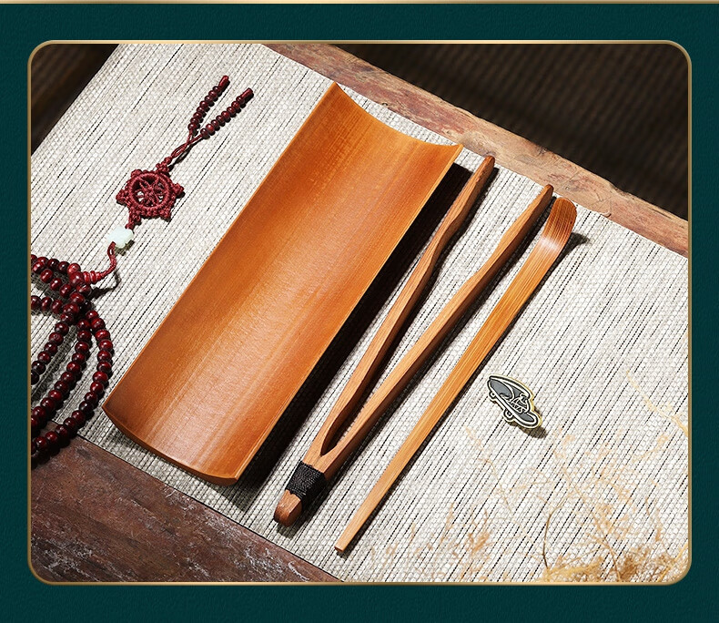 Pine Fengwuming Bamboo Tea Appreciation Tea Lotus Tea Clip Three-piece Set Tea Set Accessories Sauce Tea Pour Tea Pick Tea Leaf Spoon Kungfu Tea Ceremony Nanzhu-square-tea+tea pick+round shelf 180x60mm