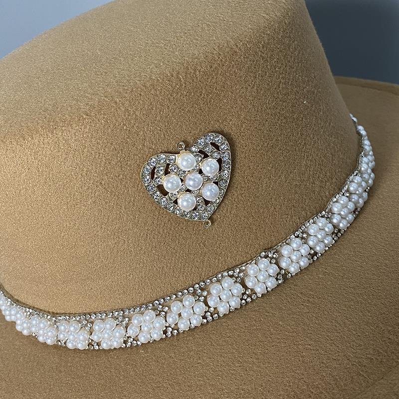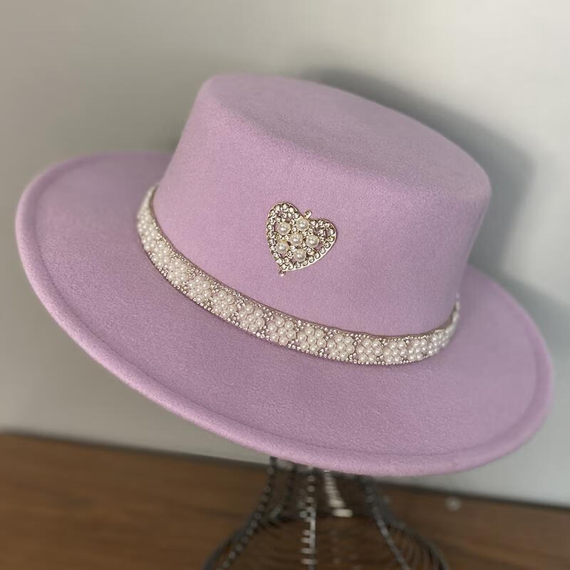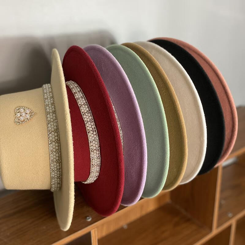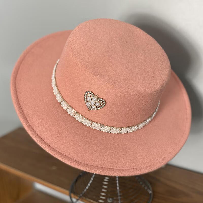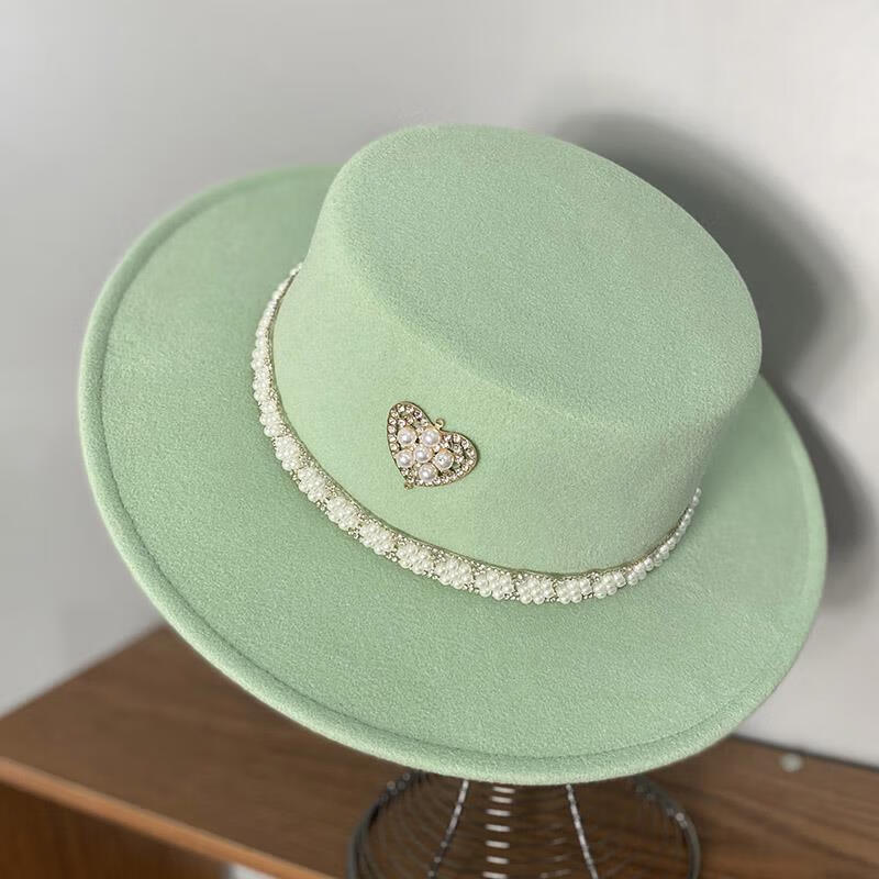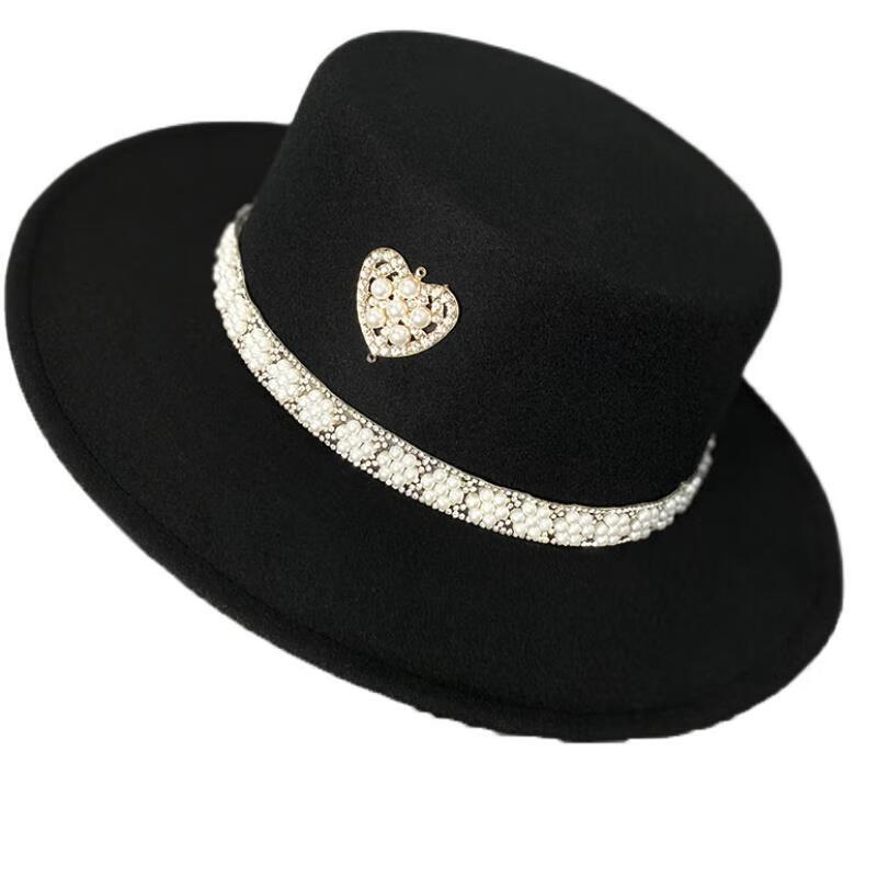 Xishengduo Spring and Autumn Versatile Celebrity Pearl Rhinestone Love Flat Top Jazz Hat Temperament Internet Celebrity Woolen Gift Hat Women's Fashion White M (56-58cm)