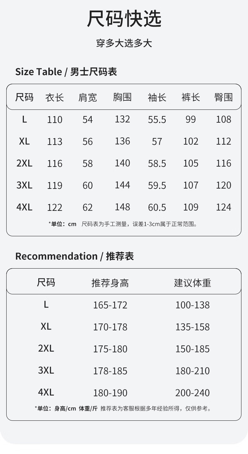 China (cm) 160-165/84-86 165-170 / 88-90 167-172 / 92-96 168-173 / 98-102 170-176 / 106-110