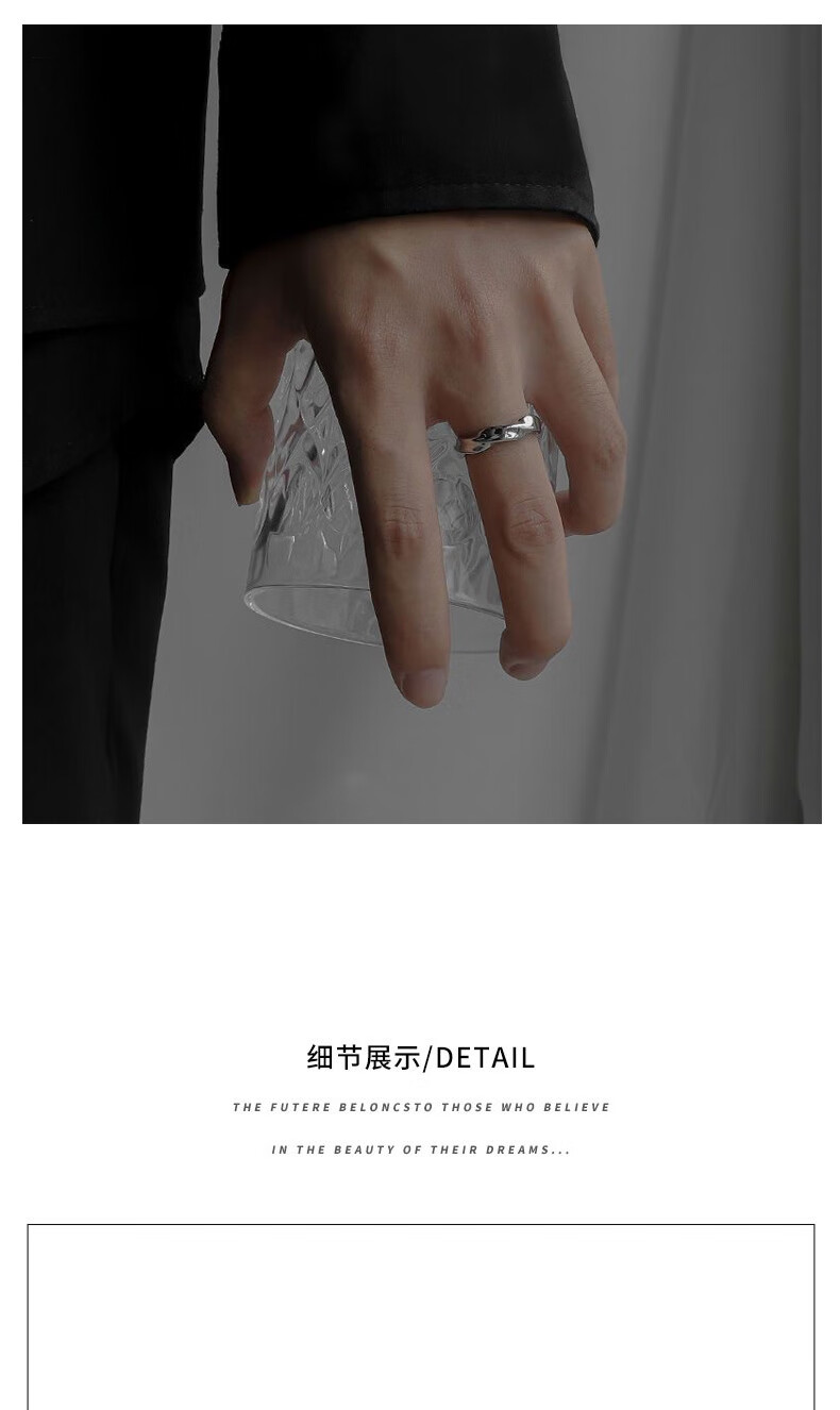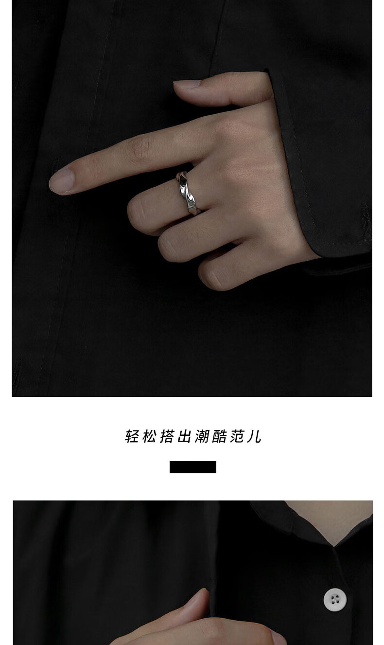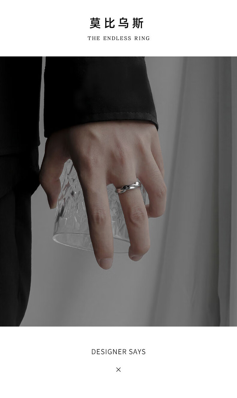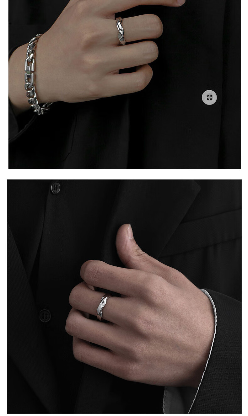 Platinum Möbius Ring Ring Men's ins fashion niche design open couple ring index finger retro light luxury high-end Möbius ring ring