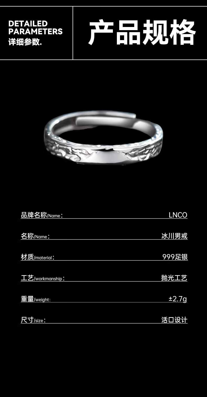 LNCO glacier men's ring 999 pure silver men's single ring unisex trend adjustment birthday commemorative gift for men with gift box when/next day delivery 999 pure silver glacier