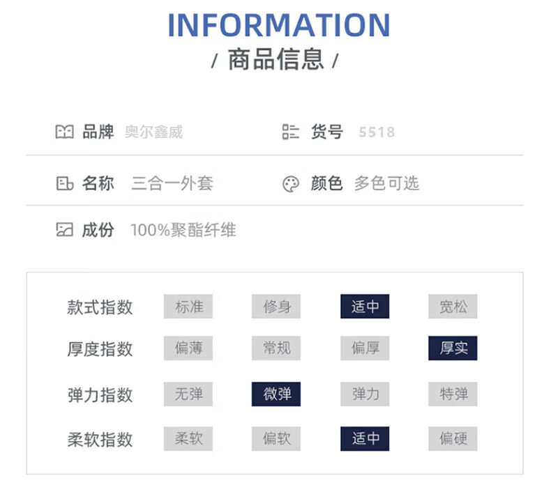 China (cm) 165 / 88-90 170 / 96-98 175 / 108-110 180 / 118-122 185 / 126-130