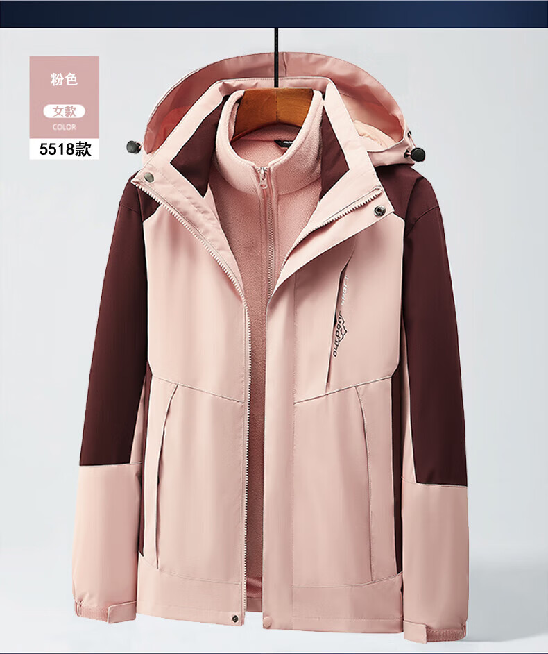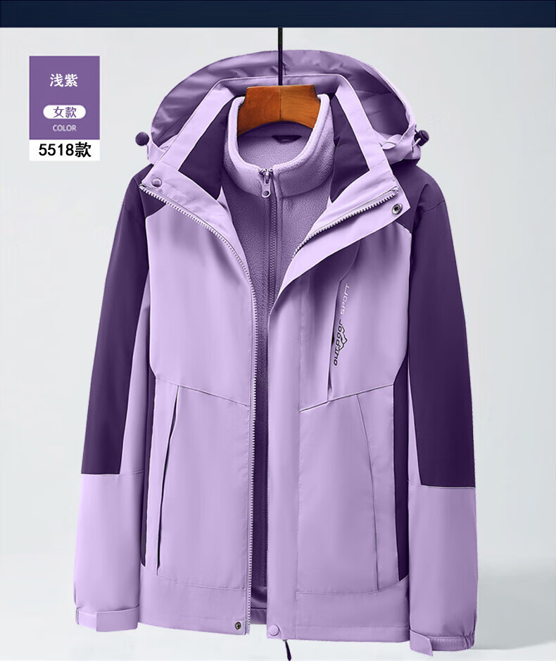 Professional Grade Waterproof Jacket Three-in-One Jacket Work Clothes Men's and Women's Work Jacket Autumn and Winter Windproof Jacket Women's Light Purple XL