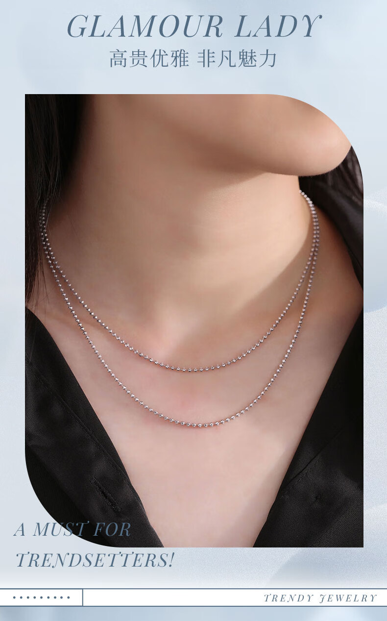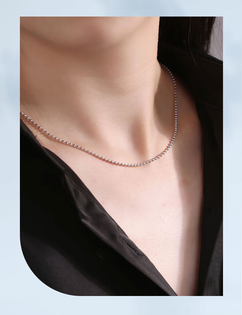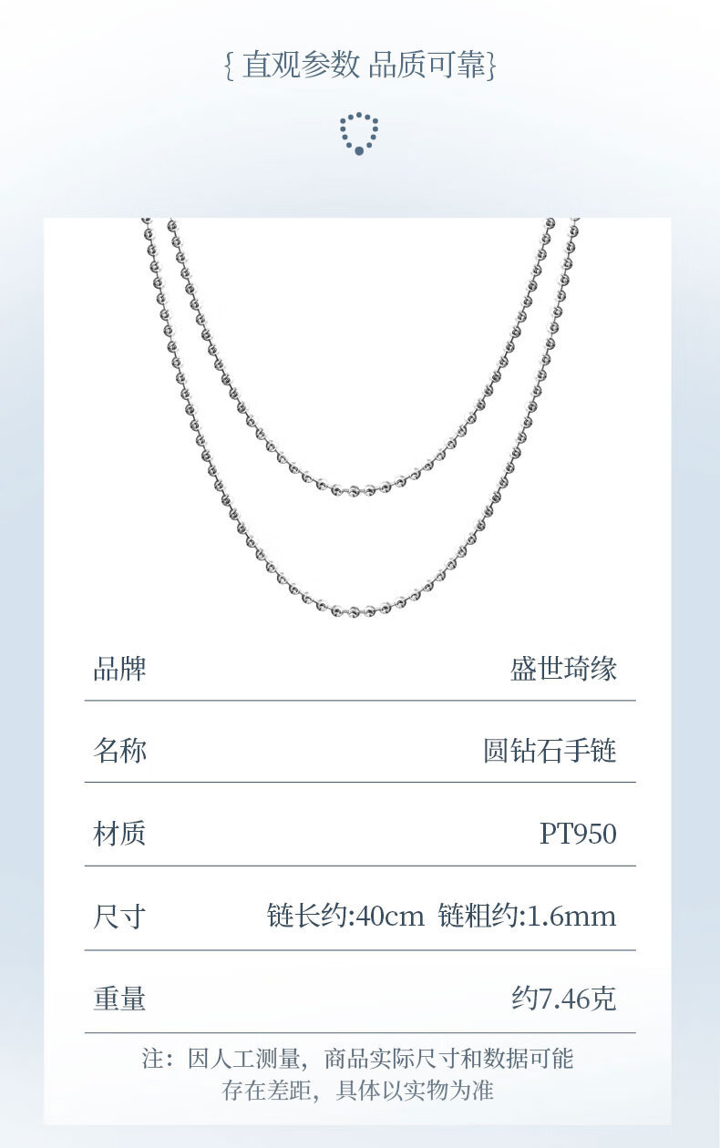 SHENGSHIQIYUAN pt950 platinum necklace for women plain chain platinum necklace clavicle chain sparkling platinum diamond necklace bead chain for women 45cm long 5.71 grams thick about 1.5mm