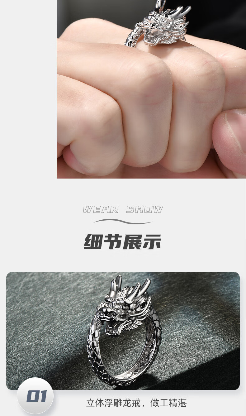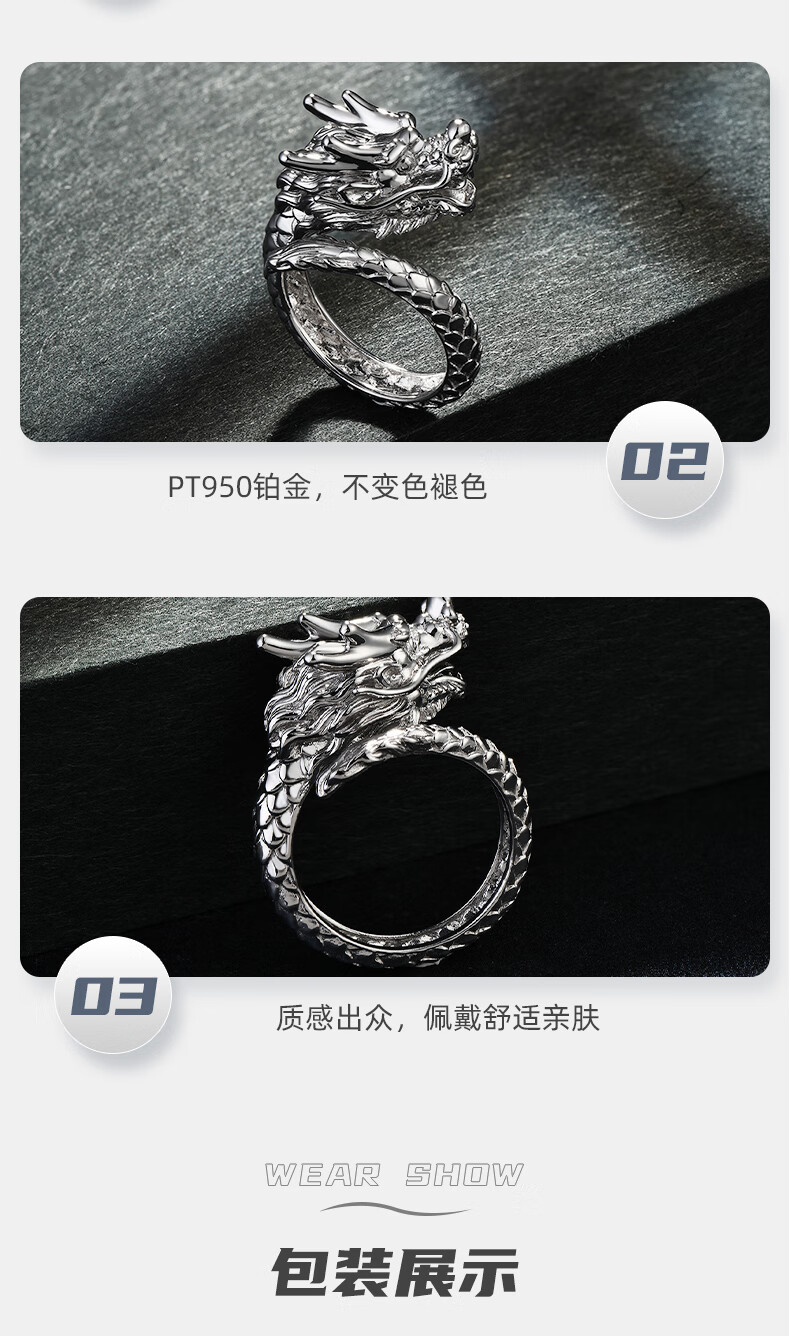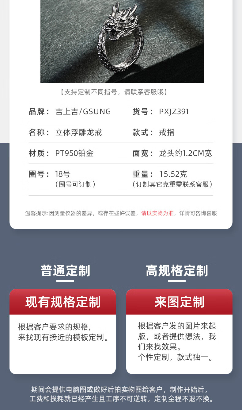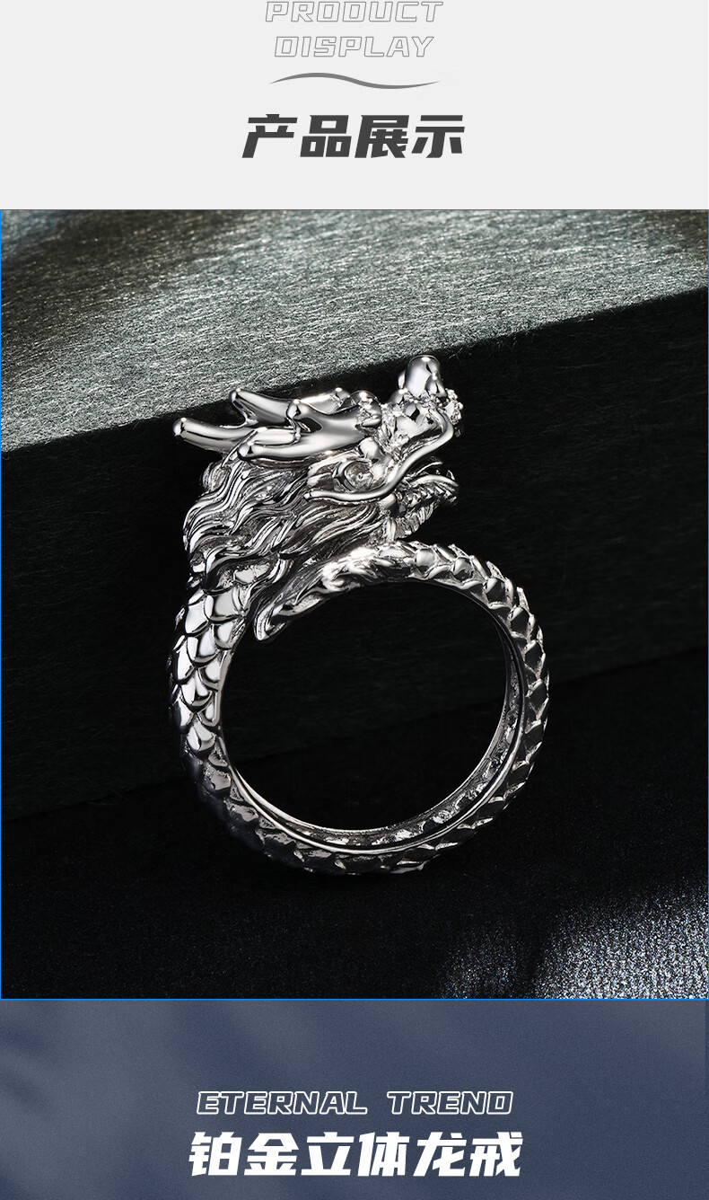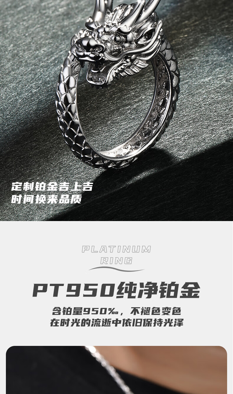GsunG platinum ring men's PT950 atmospheric dragon ring three-dimensional relief platinum ring men's natal dragon pattern ring, priced by gram, contact customer service before bidding for gold price