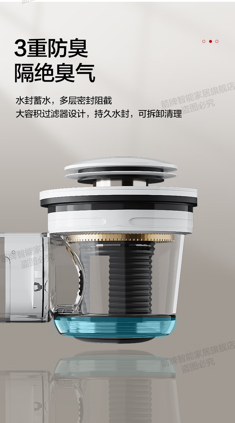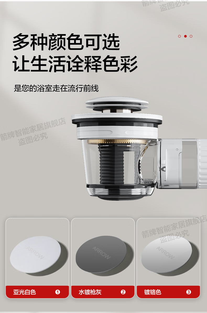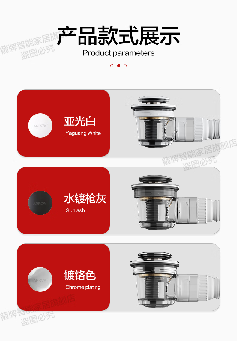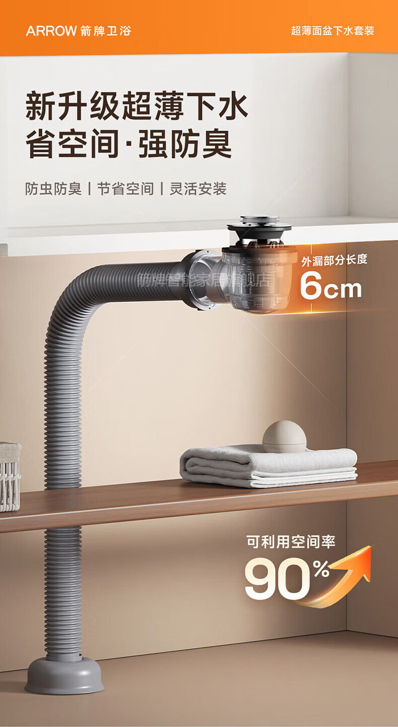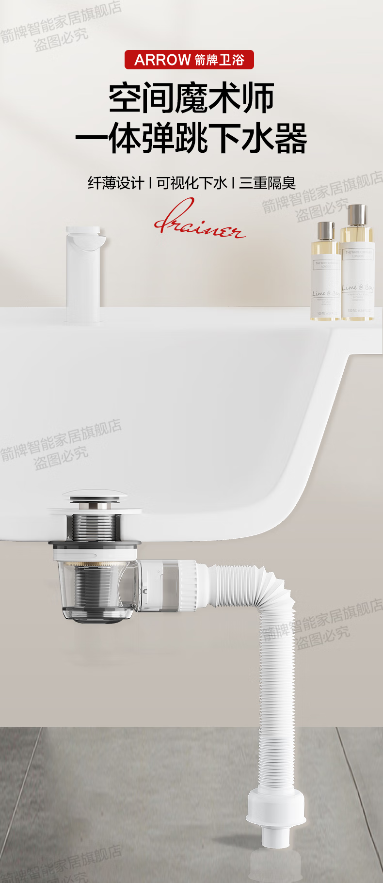 ARROW wash basin drainer, visible design, anti-odor seal, ultra-thin wall row, side row bathroom, anti-insect and anti-odor, gun ash, triple anti-odor-ultra-thin visual drain-flip-type space-saving drain set
