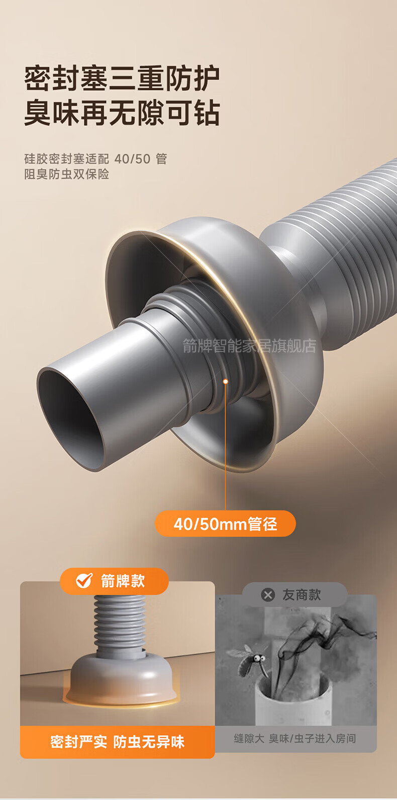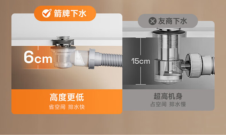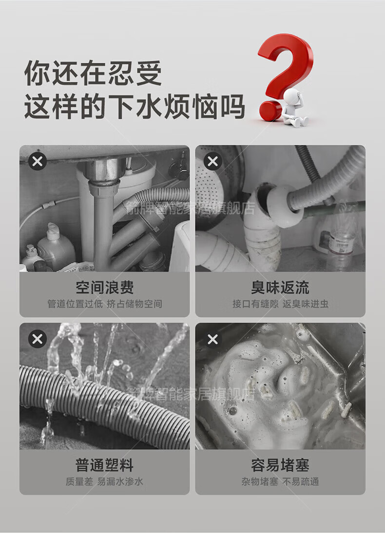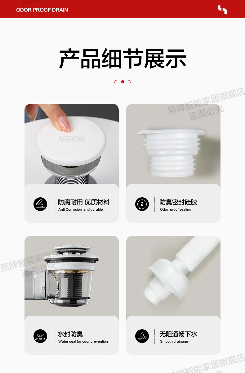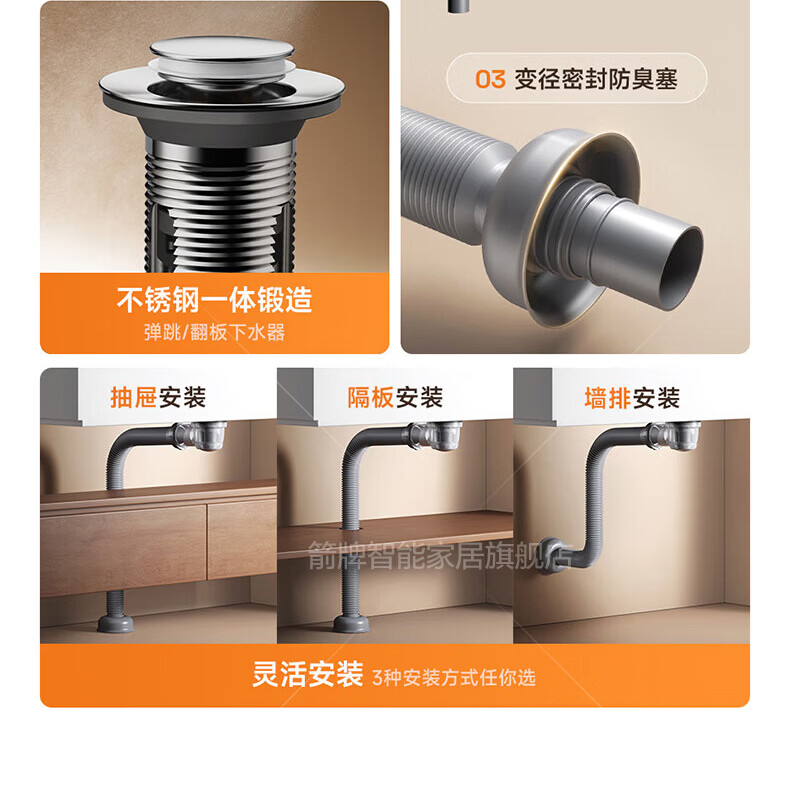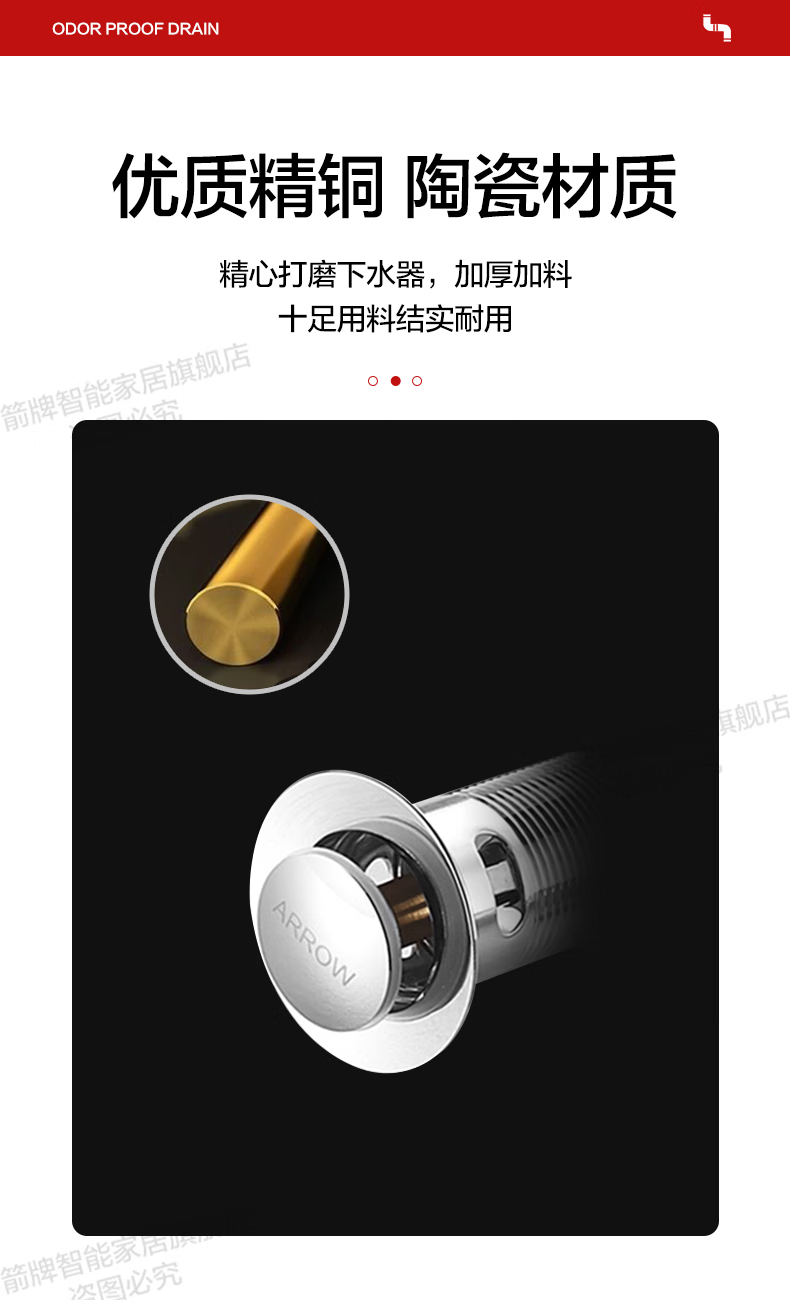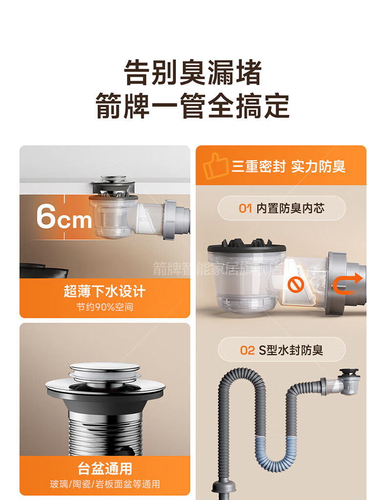 ARROW wash basin drainer, visible design, anti-odor seal, ultra-thin wall row, side row bathroom, anti-insect and anti-odor, gun ash, triple anti-odor-ultra-thin visual drain-flip-type space-saving drain set