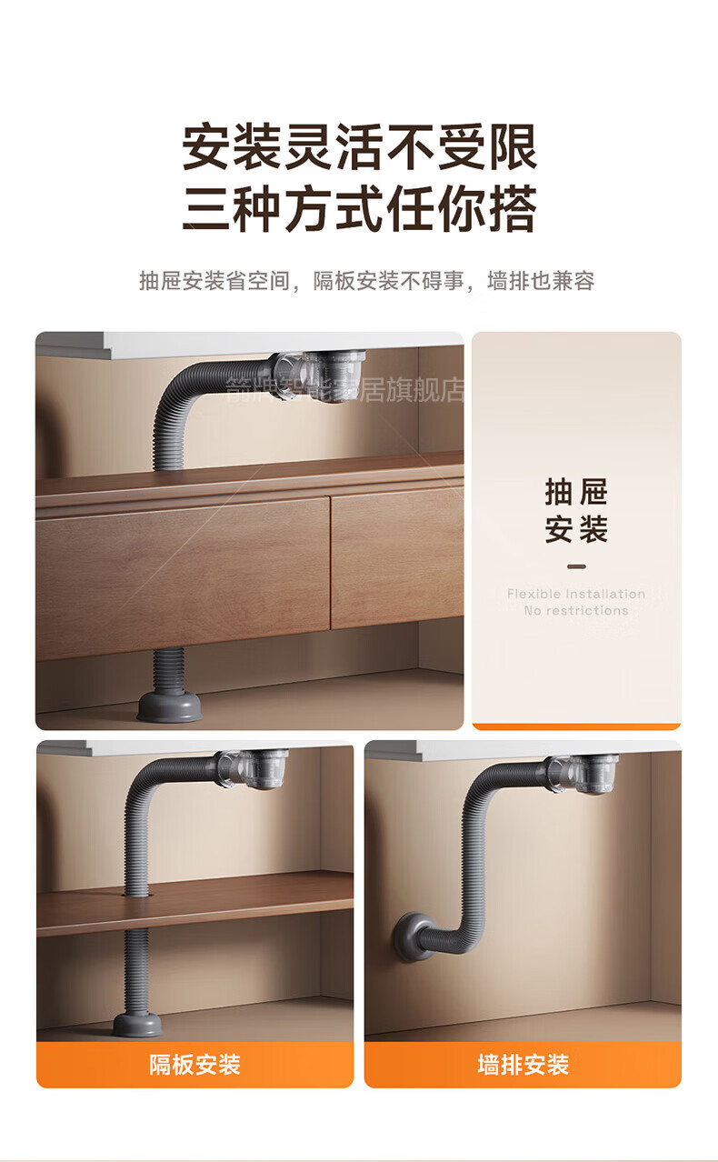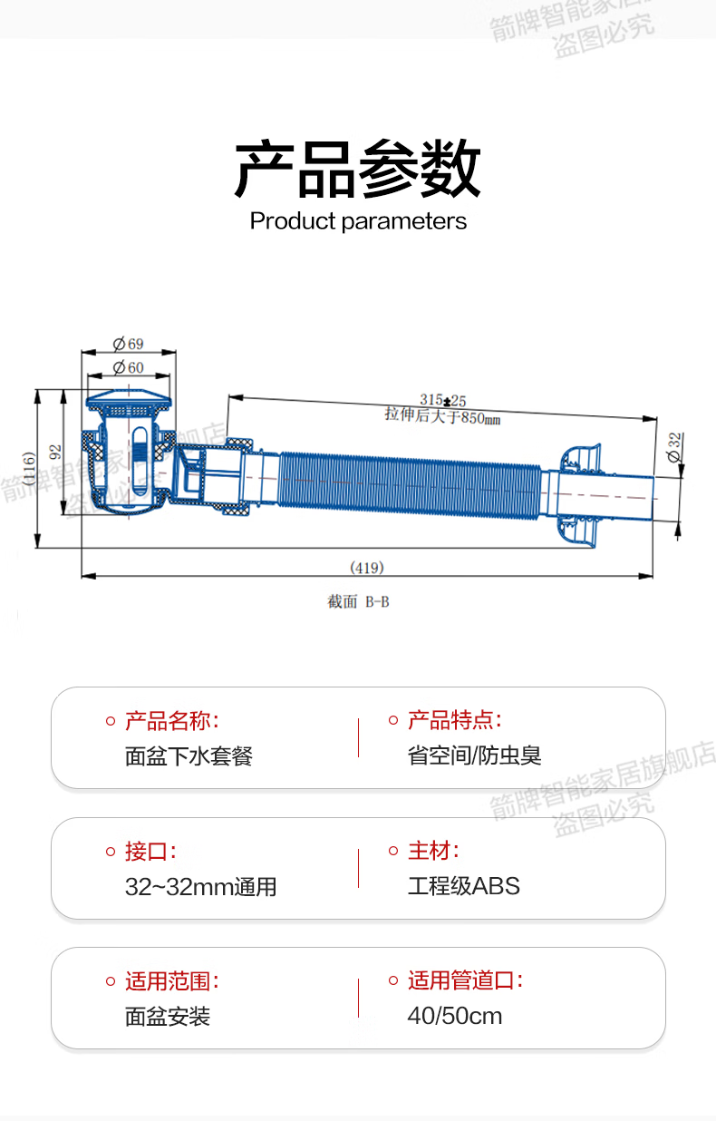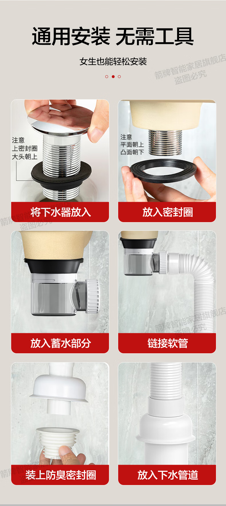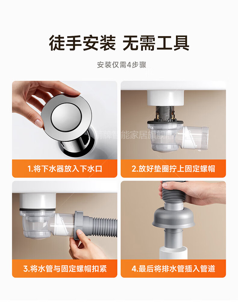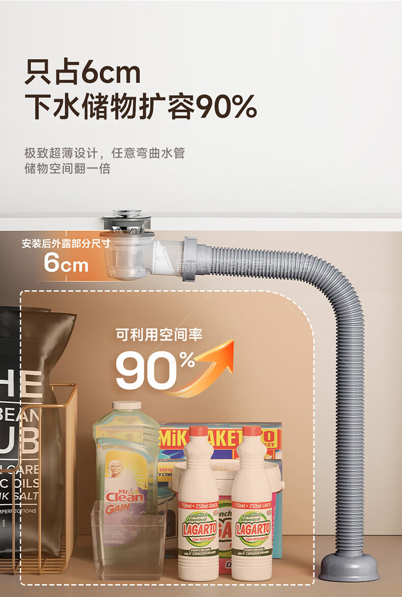 ARROW wash basin drainer, visible design, anti-odor seal, ultra-thin wall row, side row bathroom, anti-insect and anti-odor, gun ash, triple anti-odor-ultra-thin visual drain-flip-type space-saving drain set