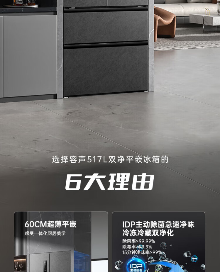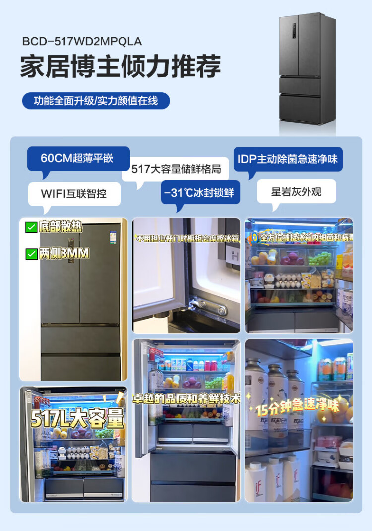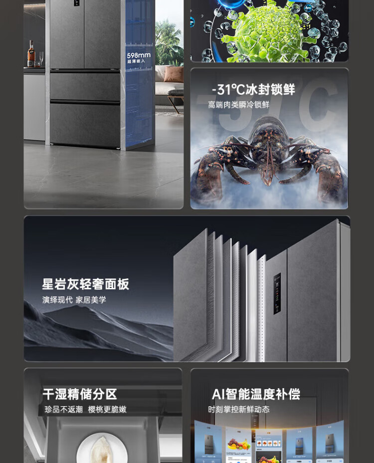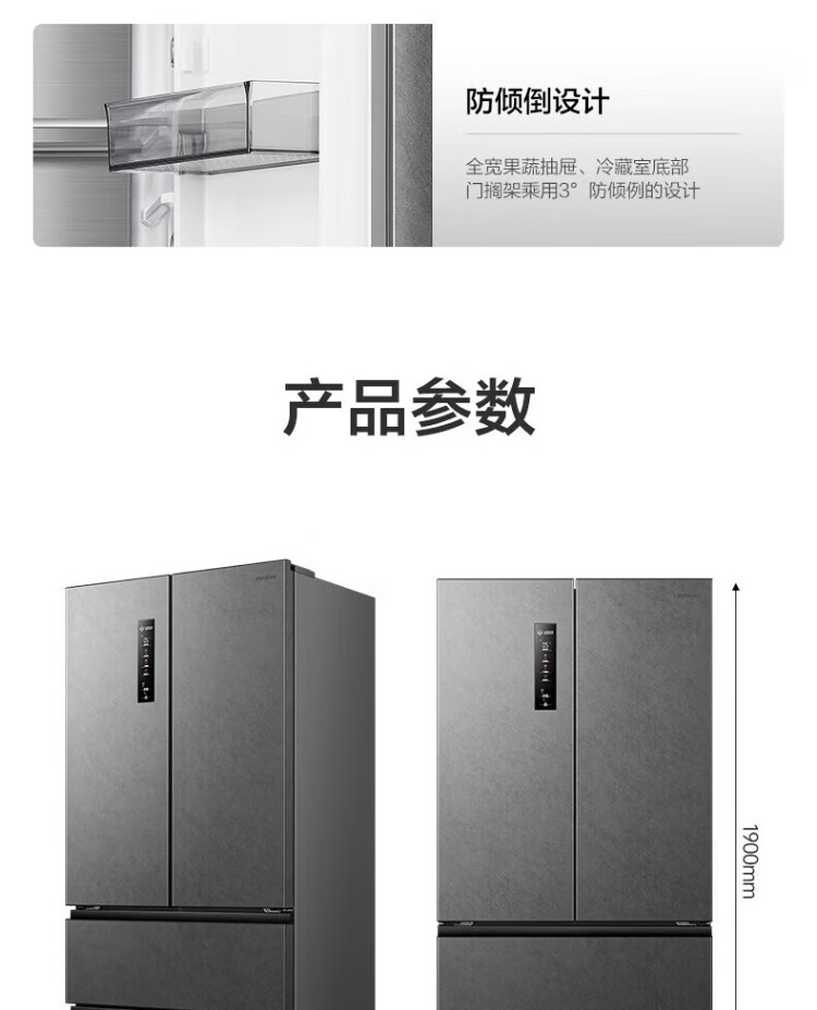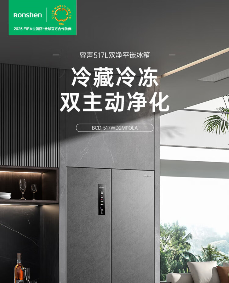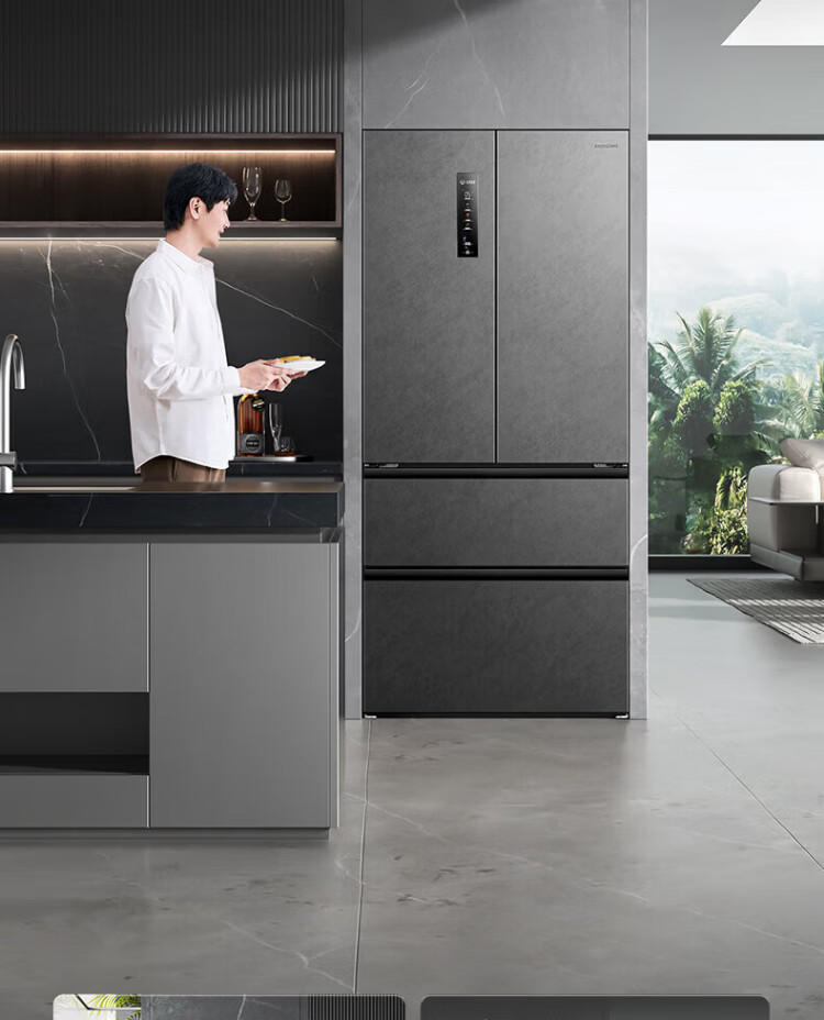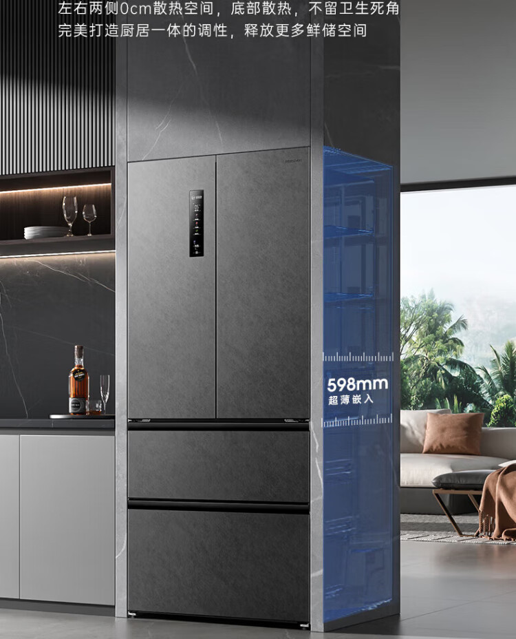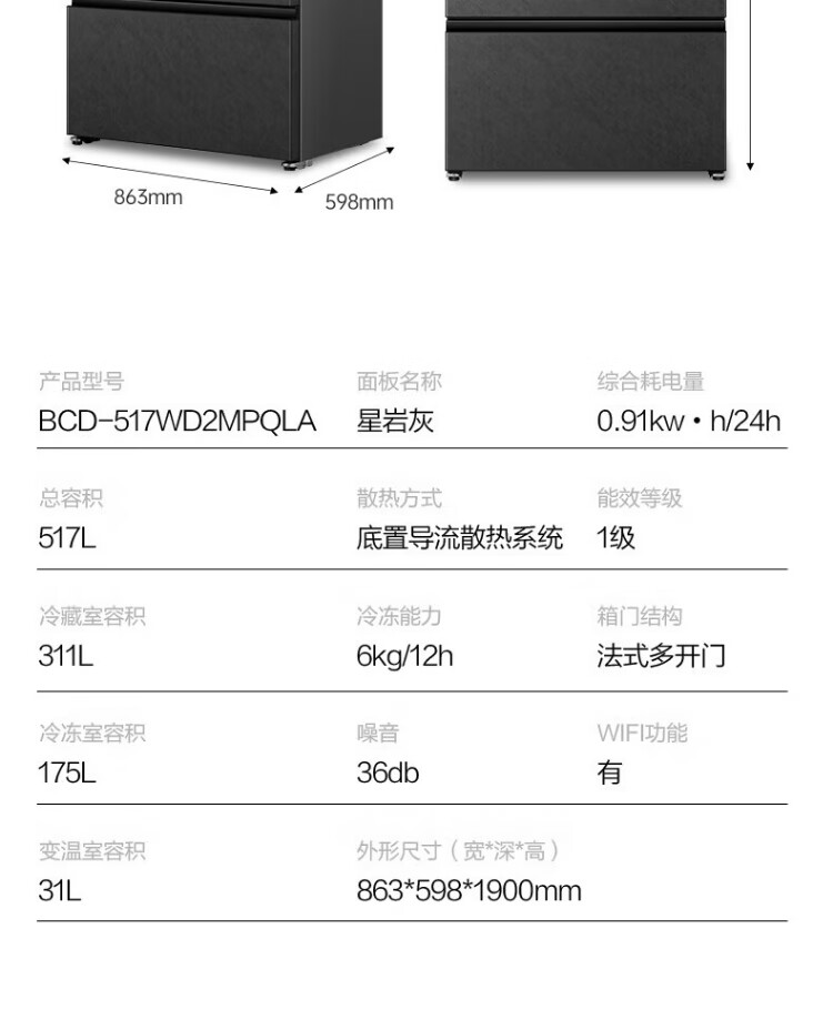Rongsheng 517-liter double-clean French multi-door refrigerator zero-embedded first-class energy efficiency air-cooled frost-free large capacity active sterilization gray bottom cooling state subsidy official flagship store BCD-517WD2MPQLA Star Rock Gray
