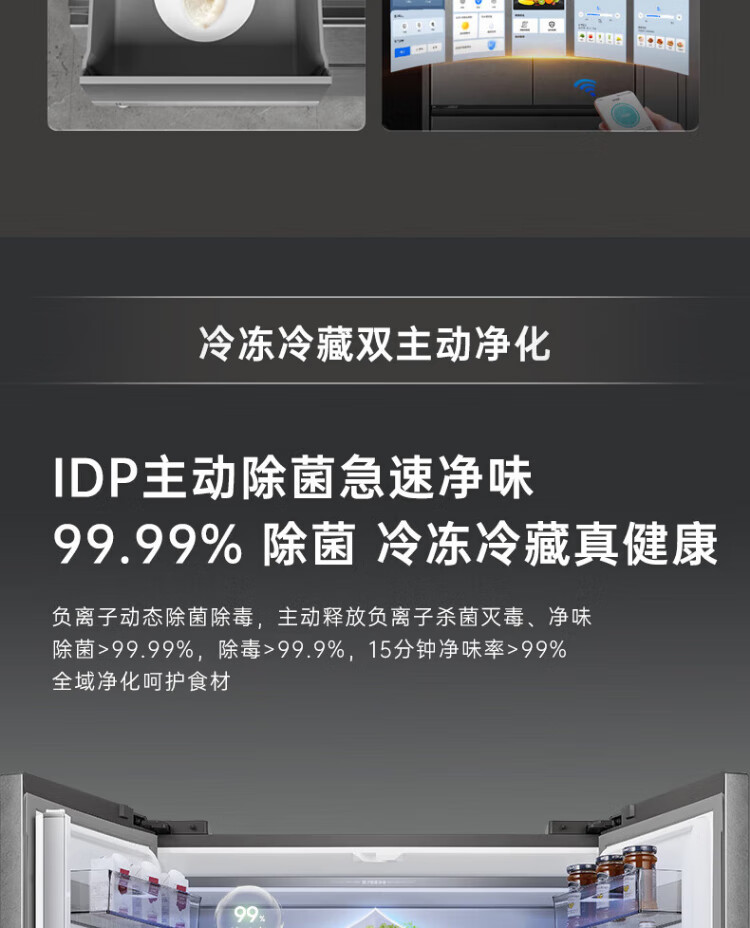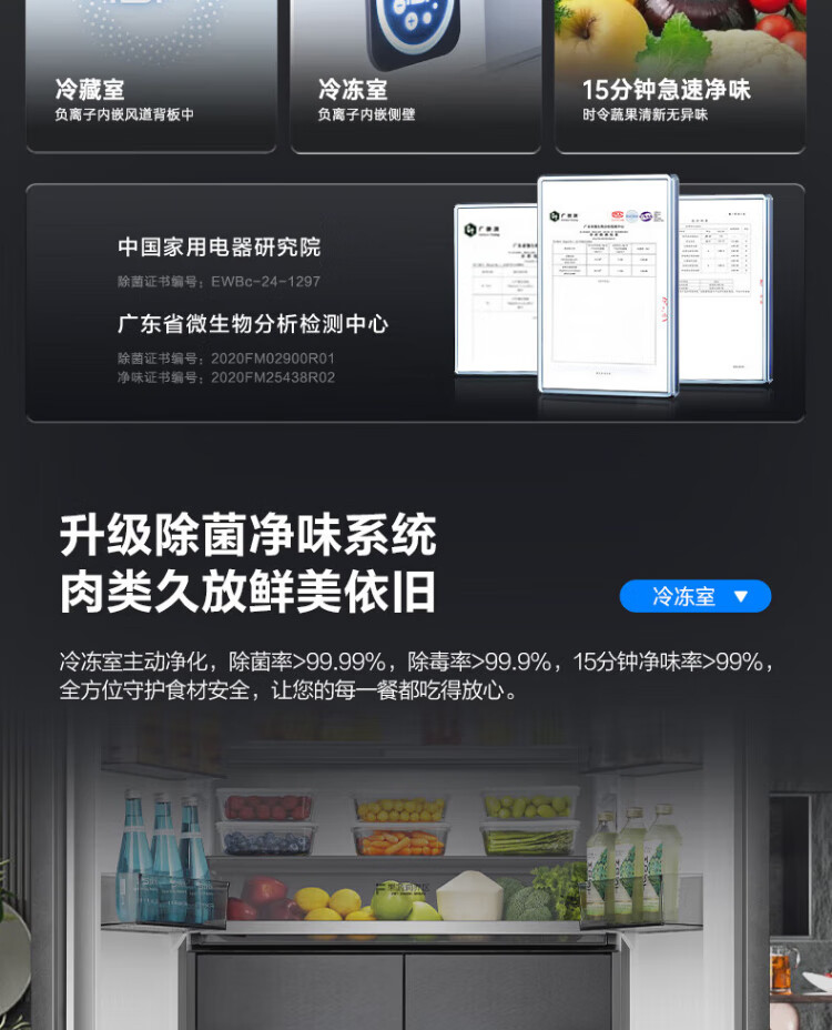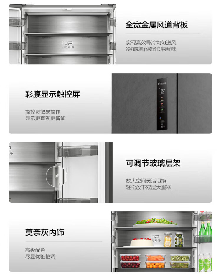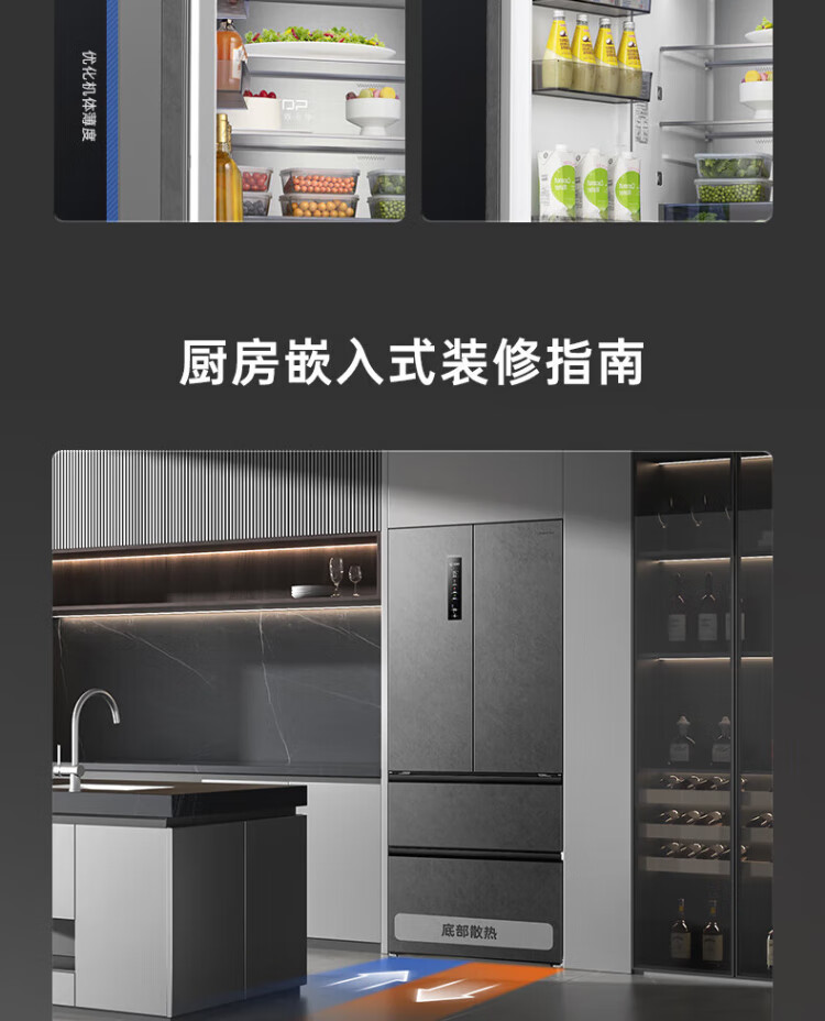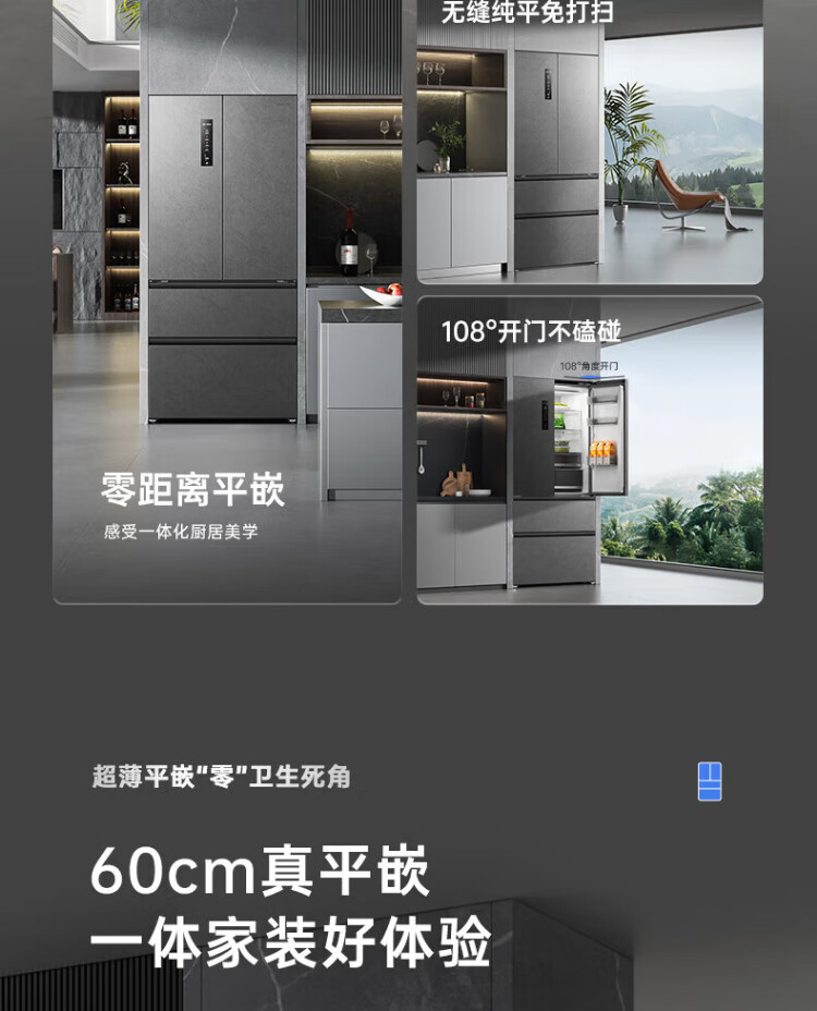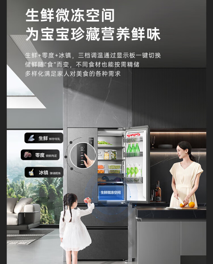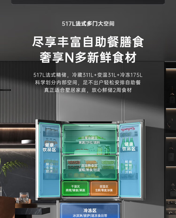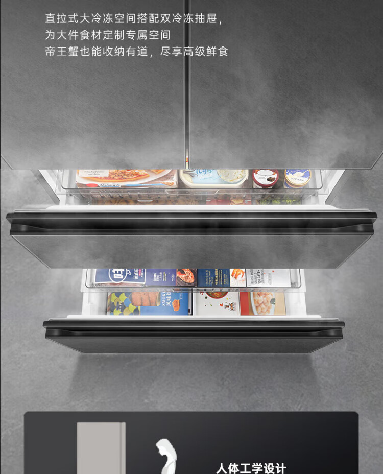 Rongsheng 517-liter double-clean French multi-door refrigerator zero-embedded first-class energy efficiency air-cooled frost-free large capacity active sterilization gray bottom cooling state subsidy official flagship store BCD-517WD2MPQLA Star Rock Gray