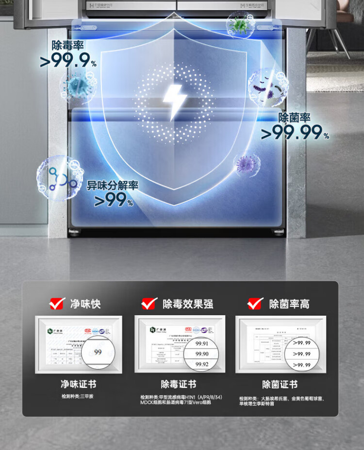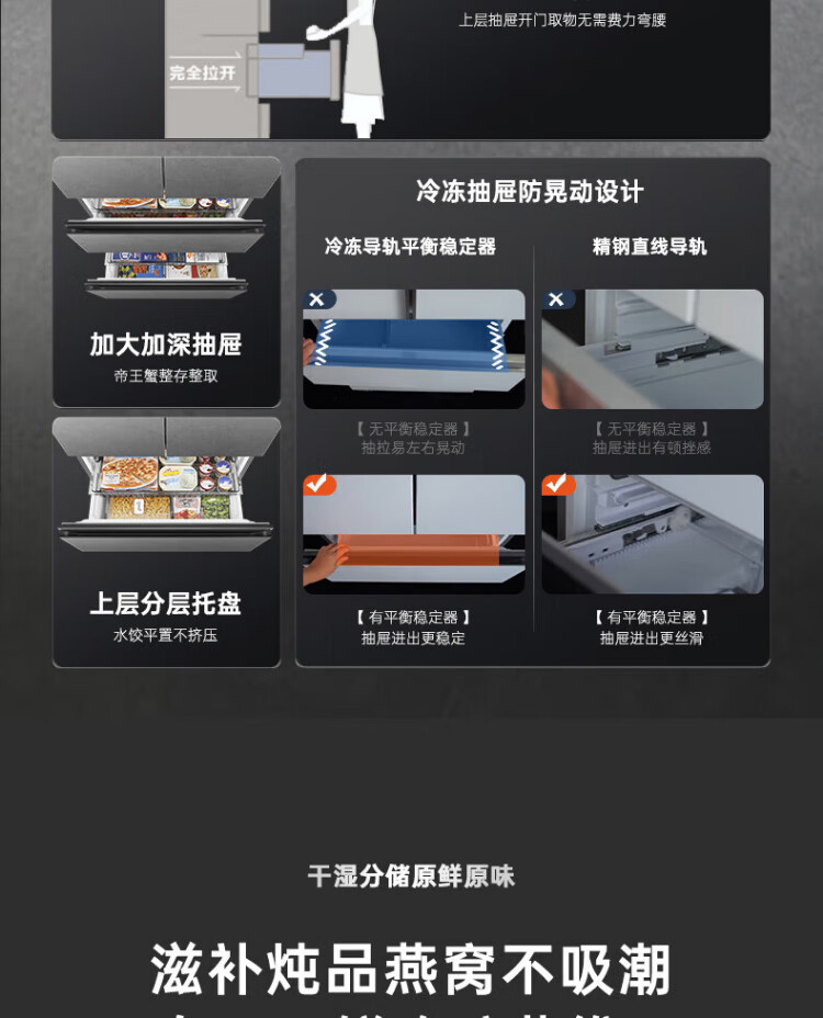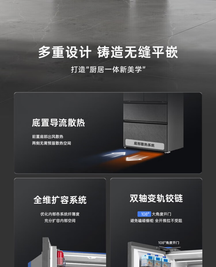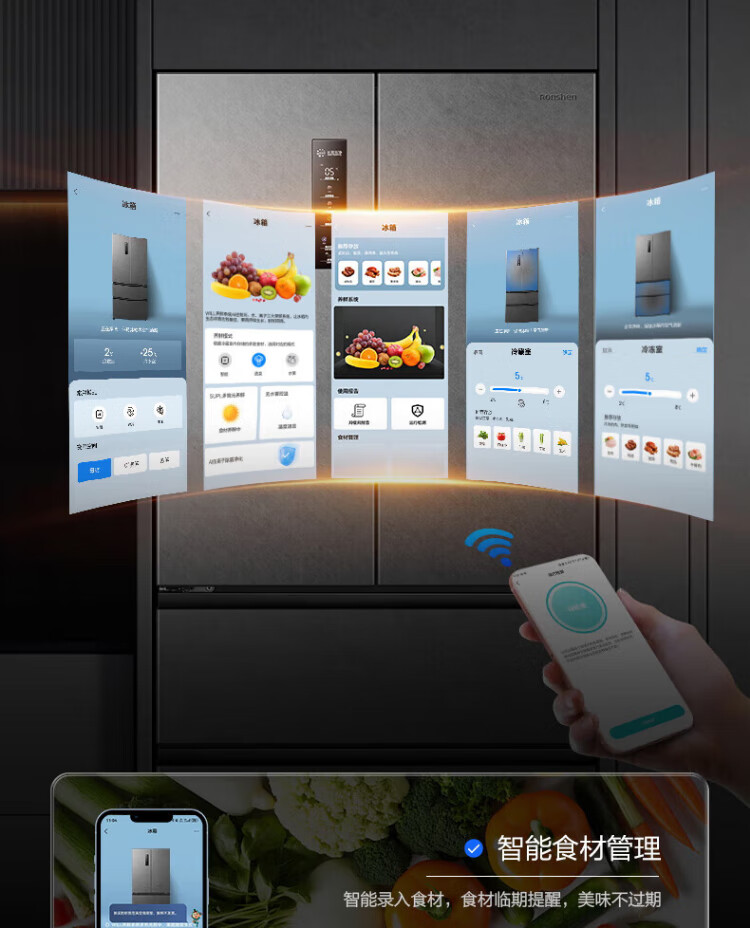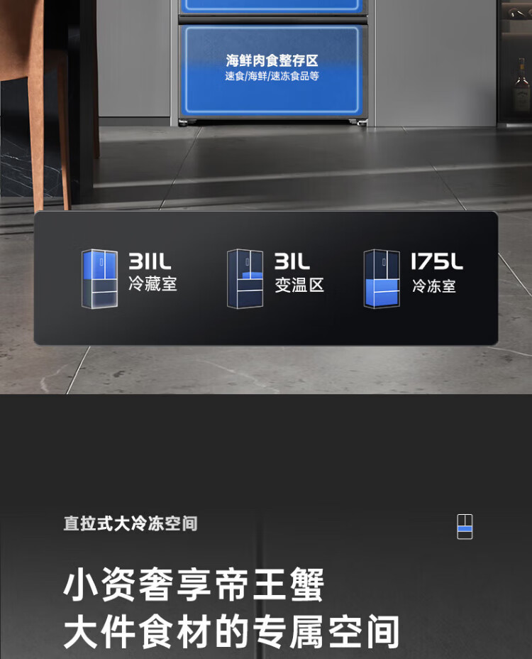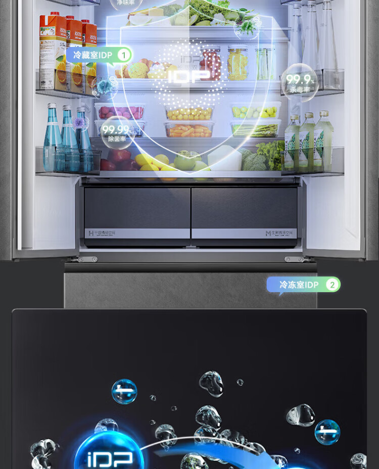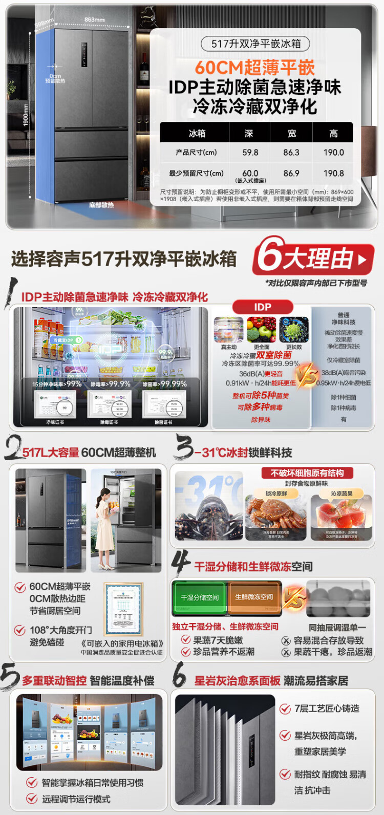 Rongsheng 517-liter double-clean French multi-door refrigerator zero-embedded first-class energy efficiency air-cooled frost-free large capacity active sterilization gray bottom cooling state subsidy official flagship store BCD-517WD2MPQLA Star Rock Gray