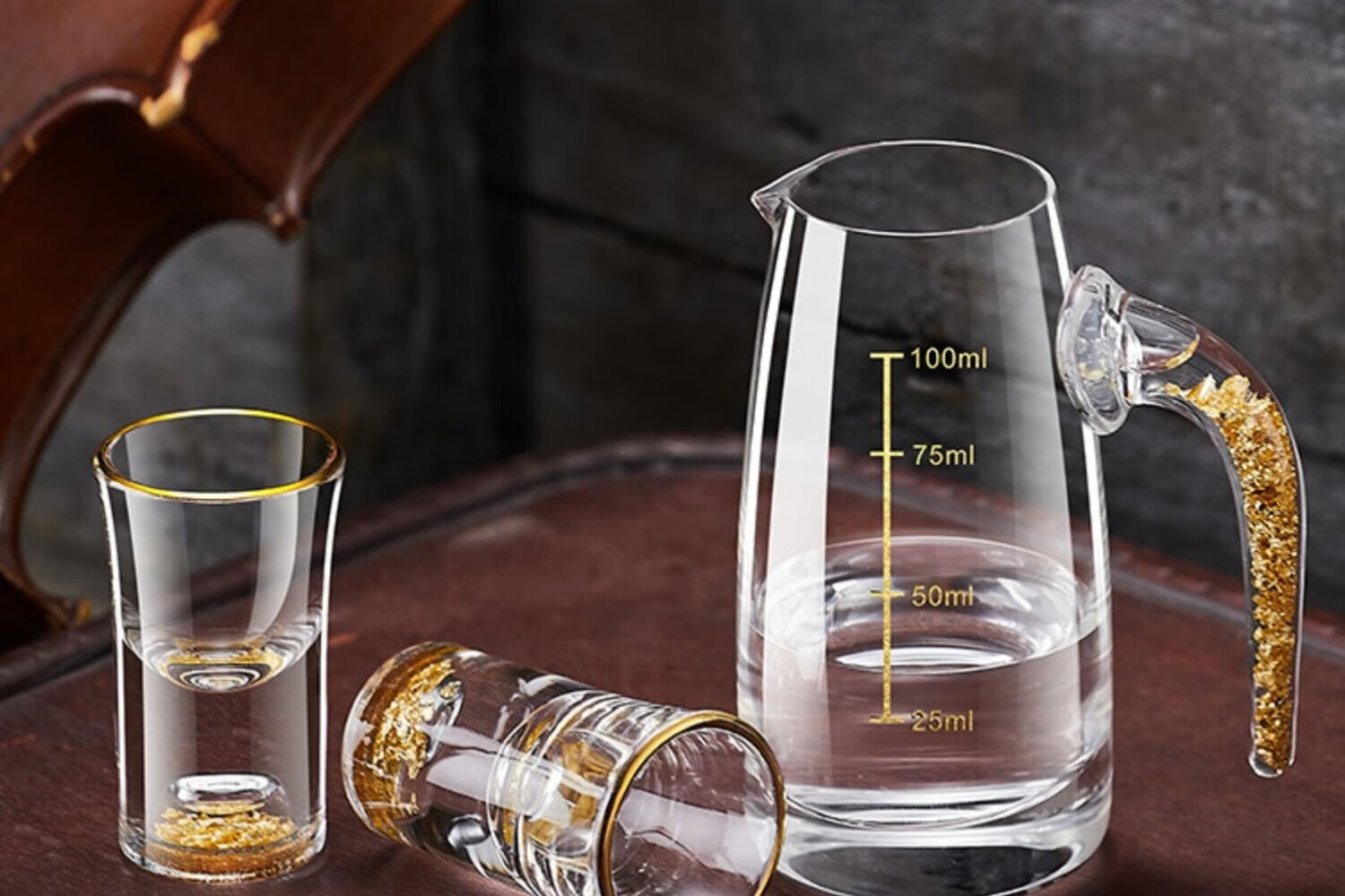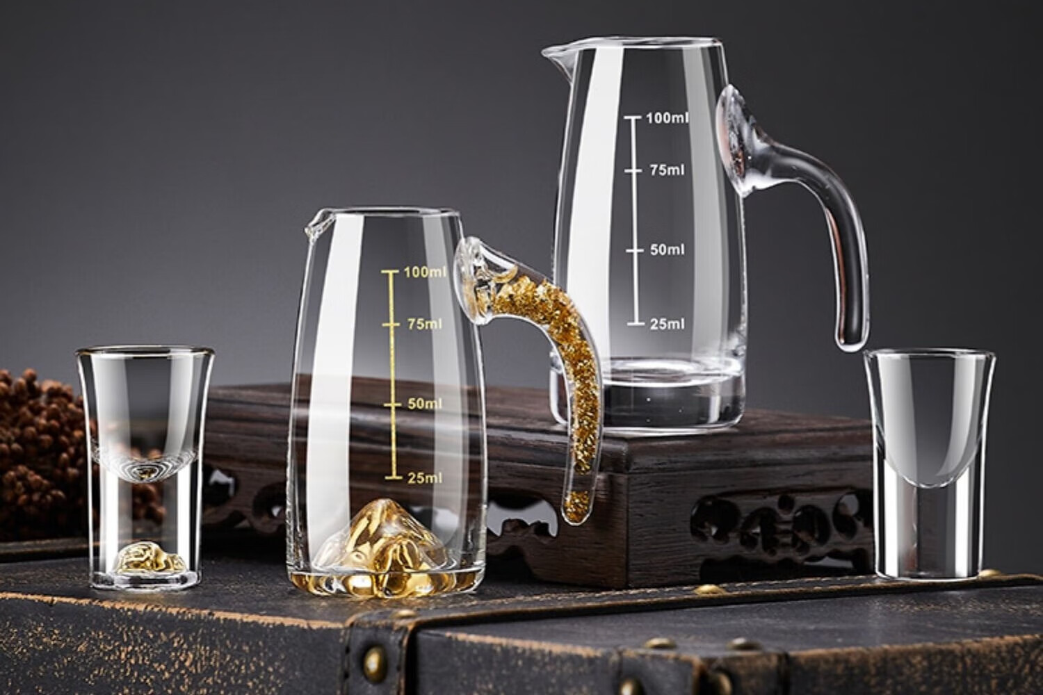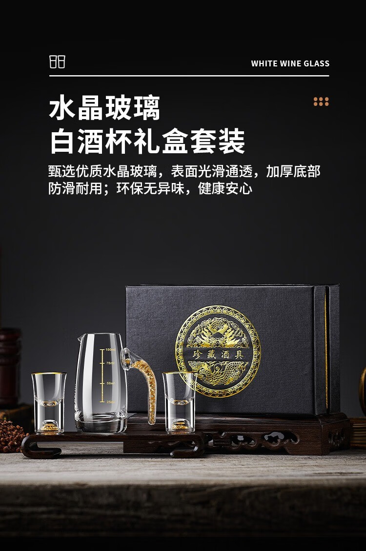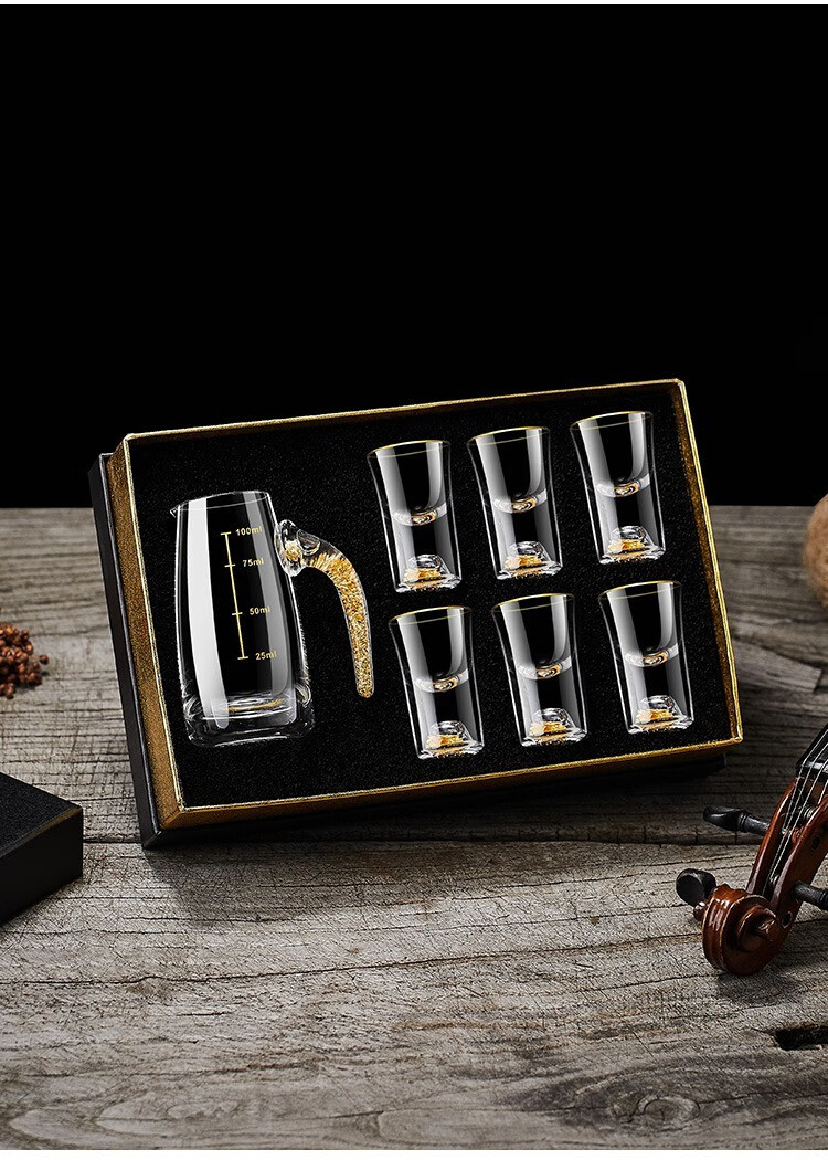 23 degrees north latitude high-end gold foil liquor cup Chinese style gift box crystal glass wine divider household small wine glass set wine cup transparent style 6 pots 6 cups collection gift box