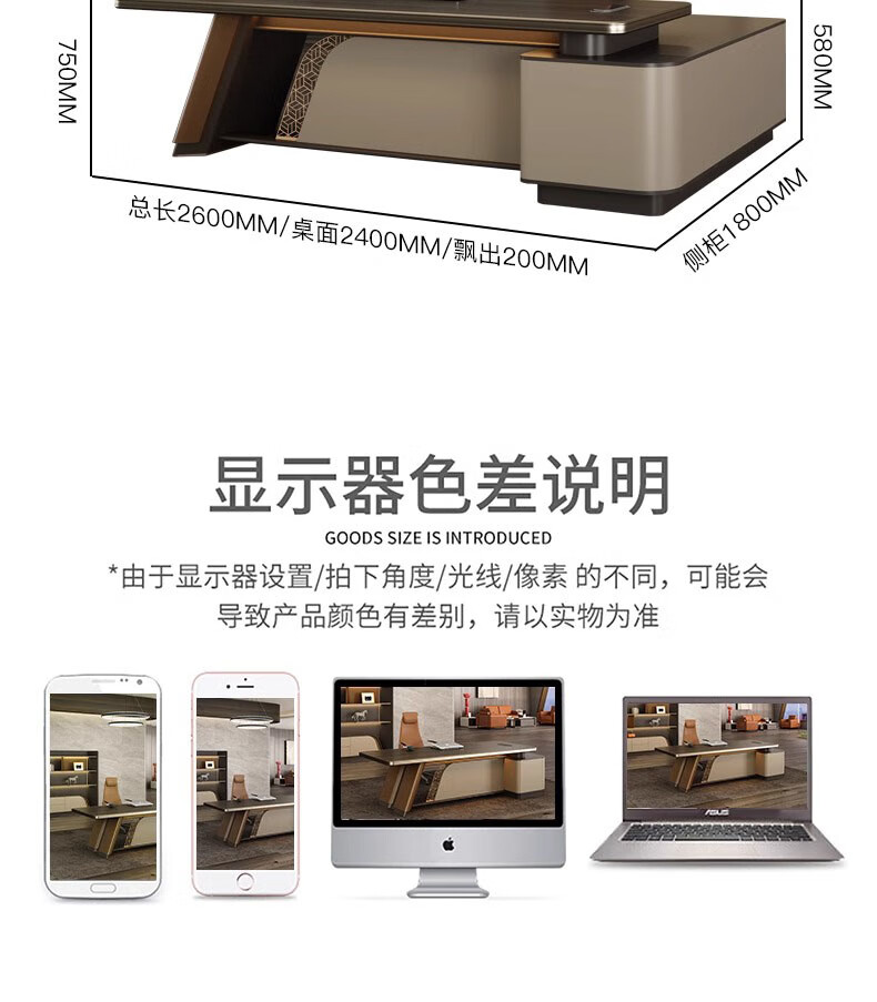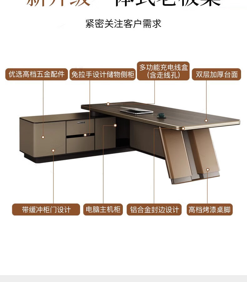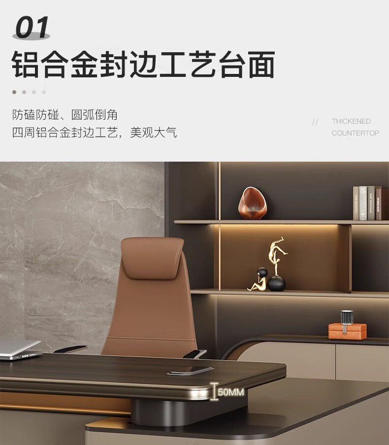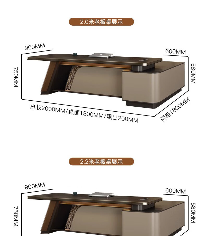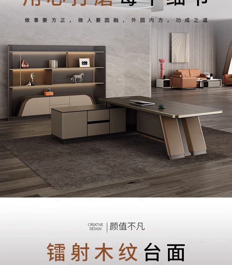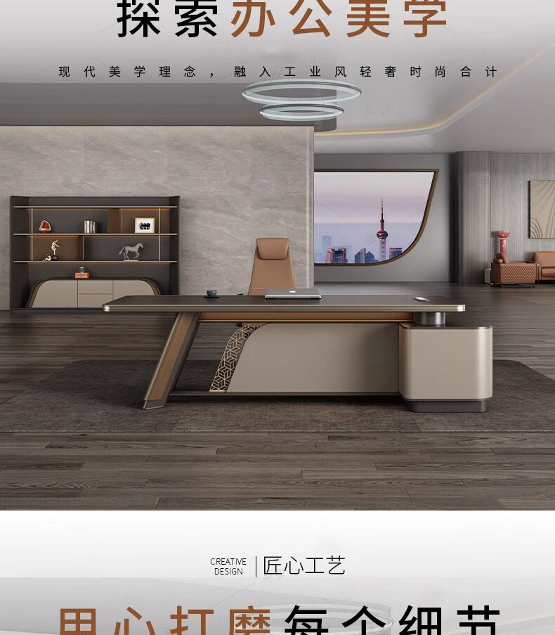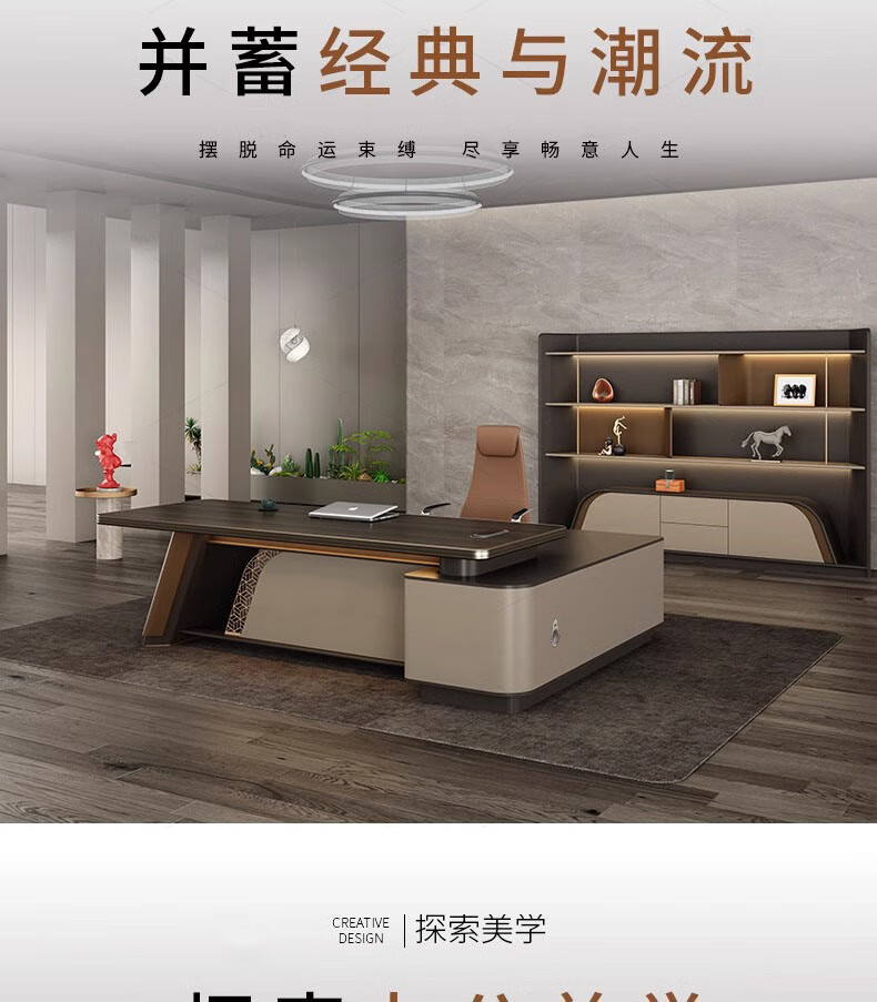 Hanjitangyu light luxury desk boss desk and chair combination high-end simple modern president office chairman executive desk 2.0 meters boss desk
