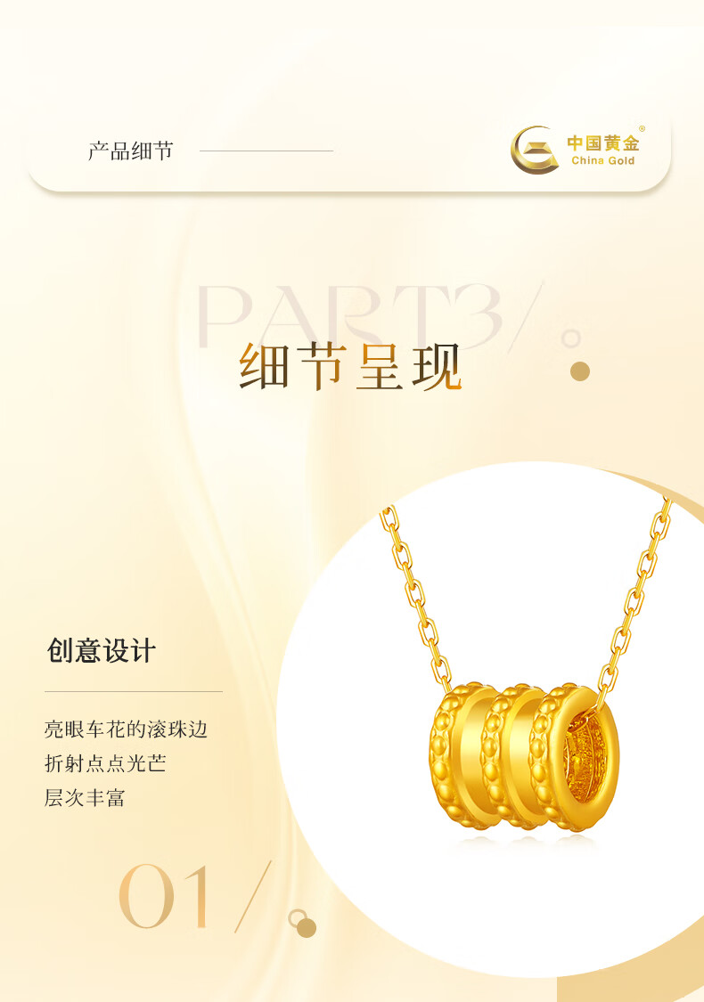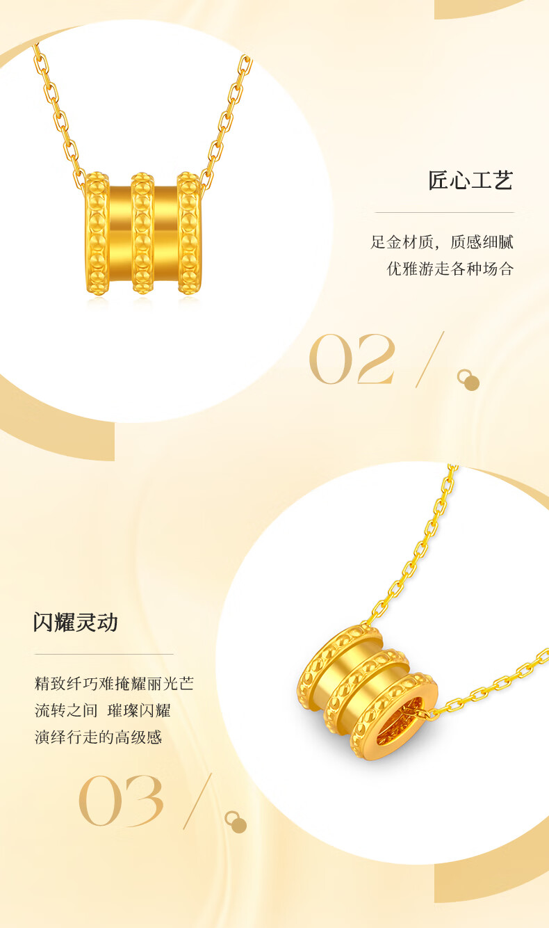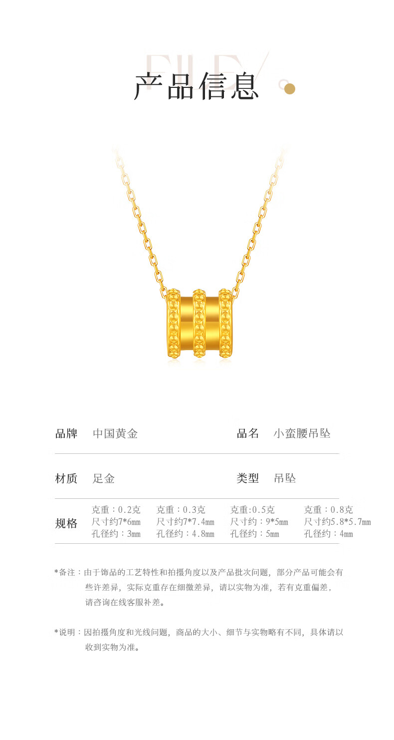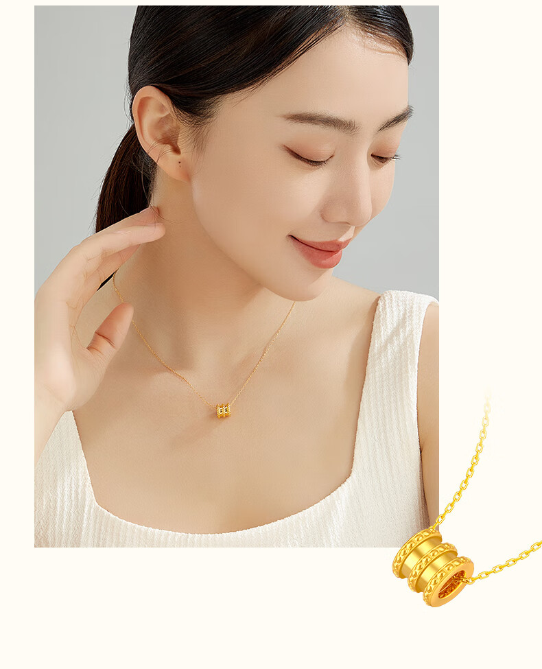 CHINA GOLD Small Waist Gold Pendant Transfer Beads Pure Gold Pendant Clavicle Chain Necklace Women's Valentine's Day Gift Pure Gold Pendant About 0.56g
