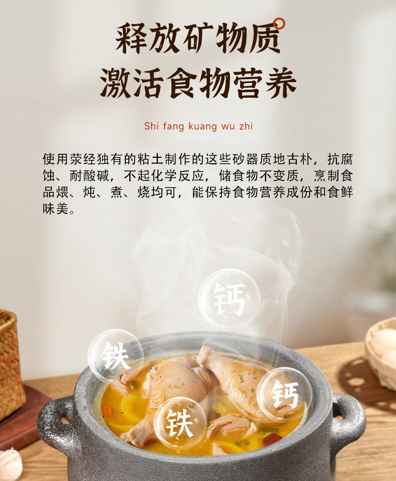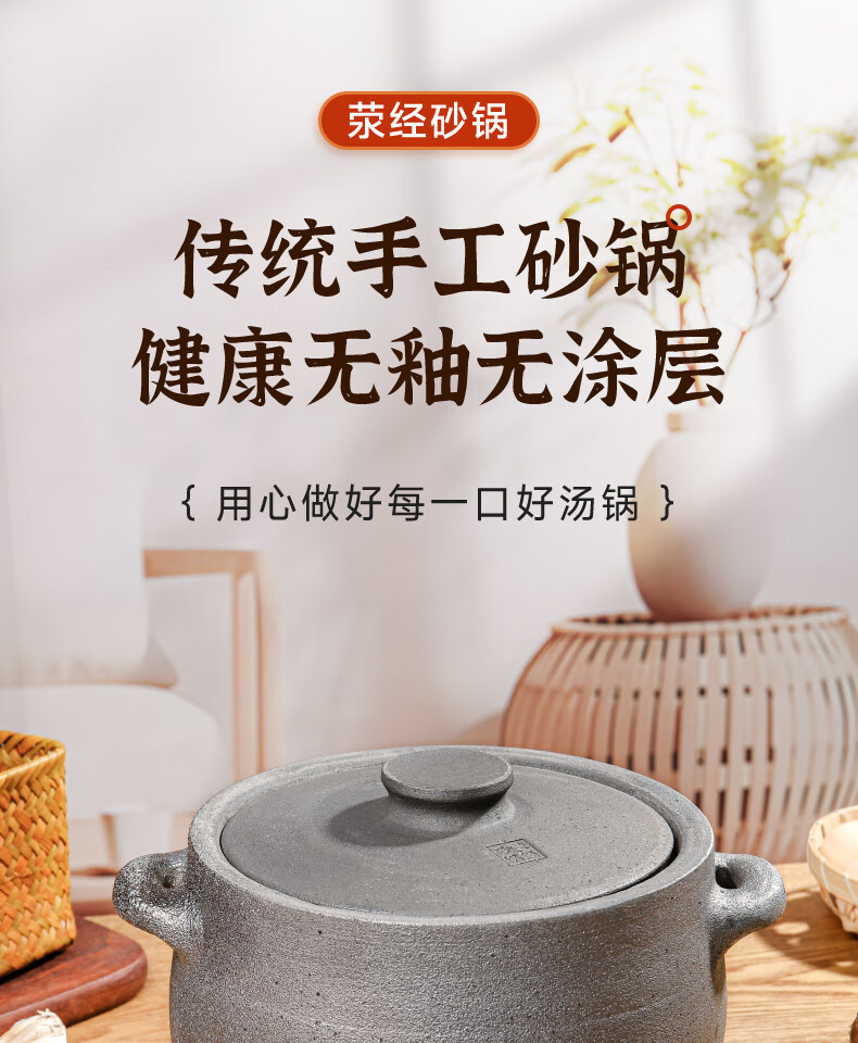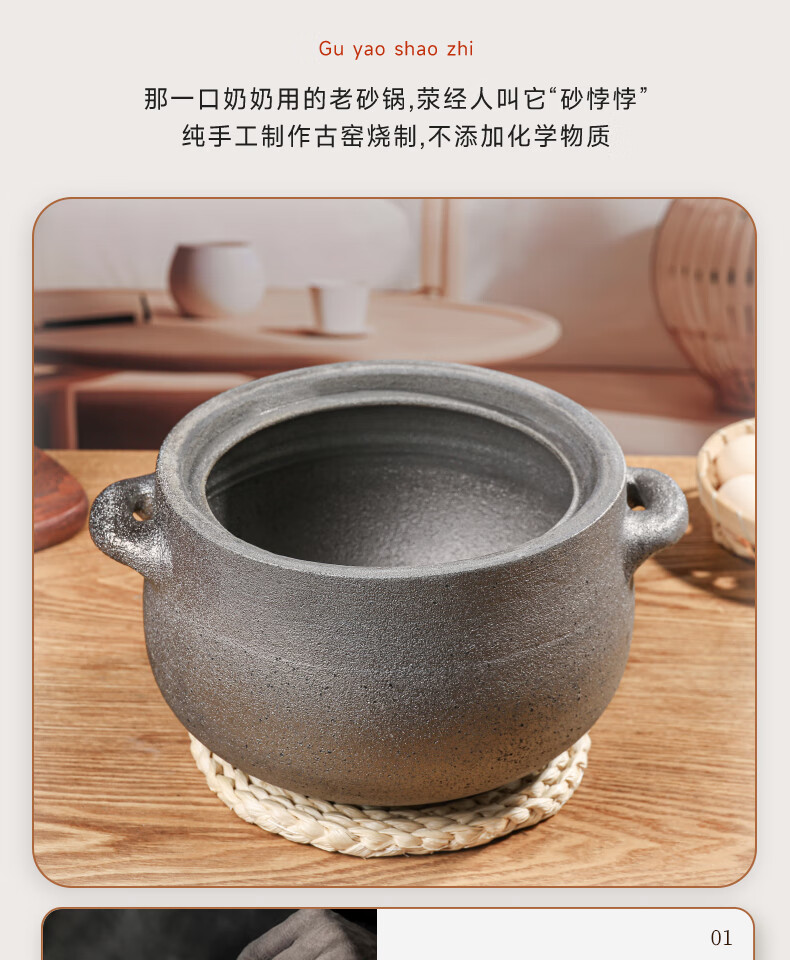 Ying kiln cauldron Ying Jing casserole soup household stew casserole soup pot gas stove unglazed casserole stew meat clay pot soup pot casserole pot (Herbao) gift pack + open pot 8L