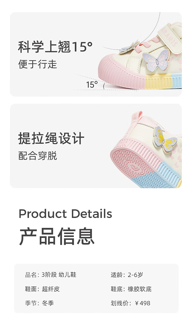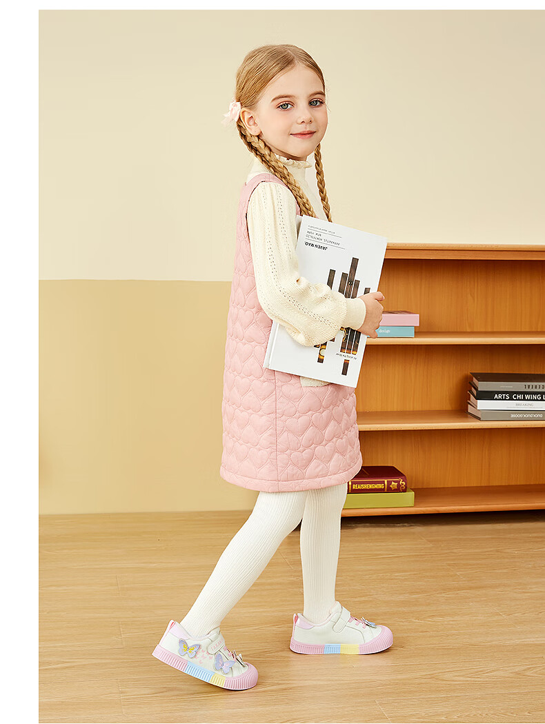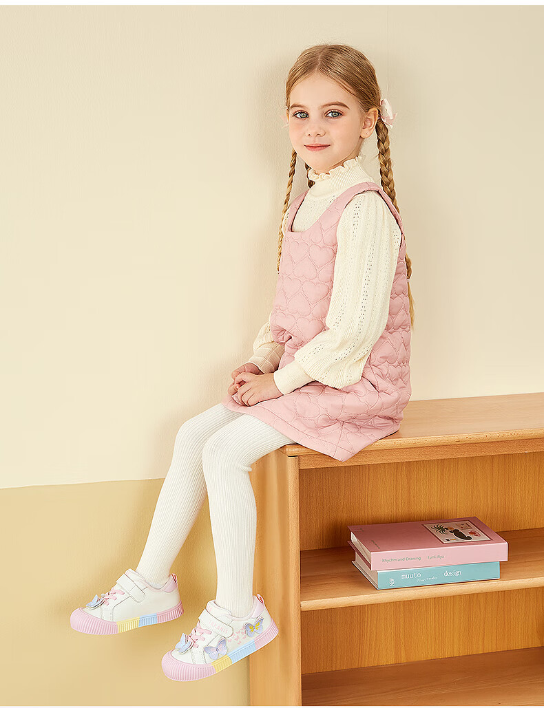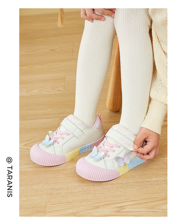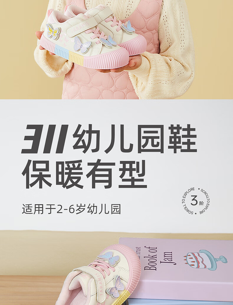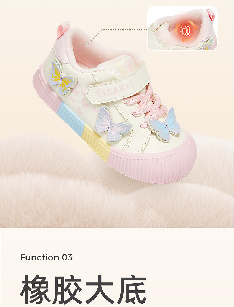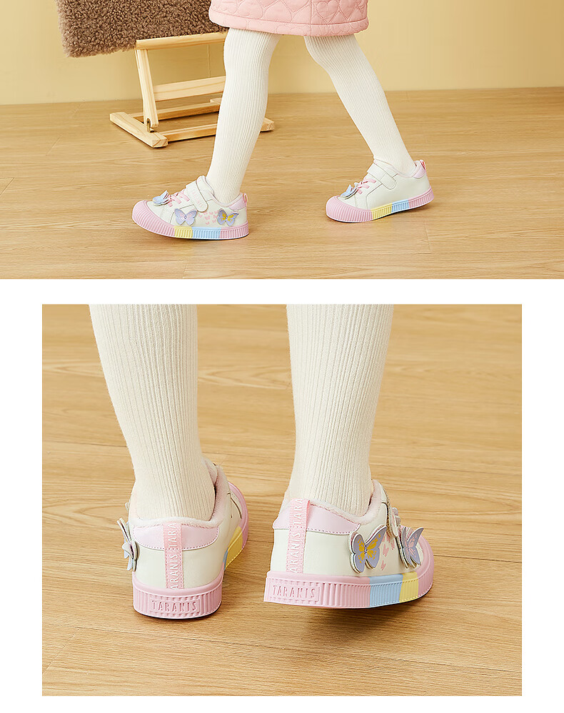 Tyrannis children's shoes winter new 311 kindergarten indoor shoes girls plus velvet warm children's shoes white/purple 28 inner length 18cm suitable for feet 16.5cm long