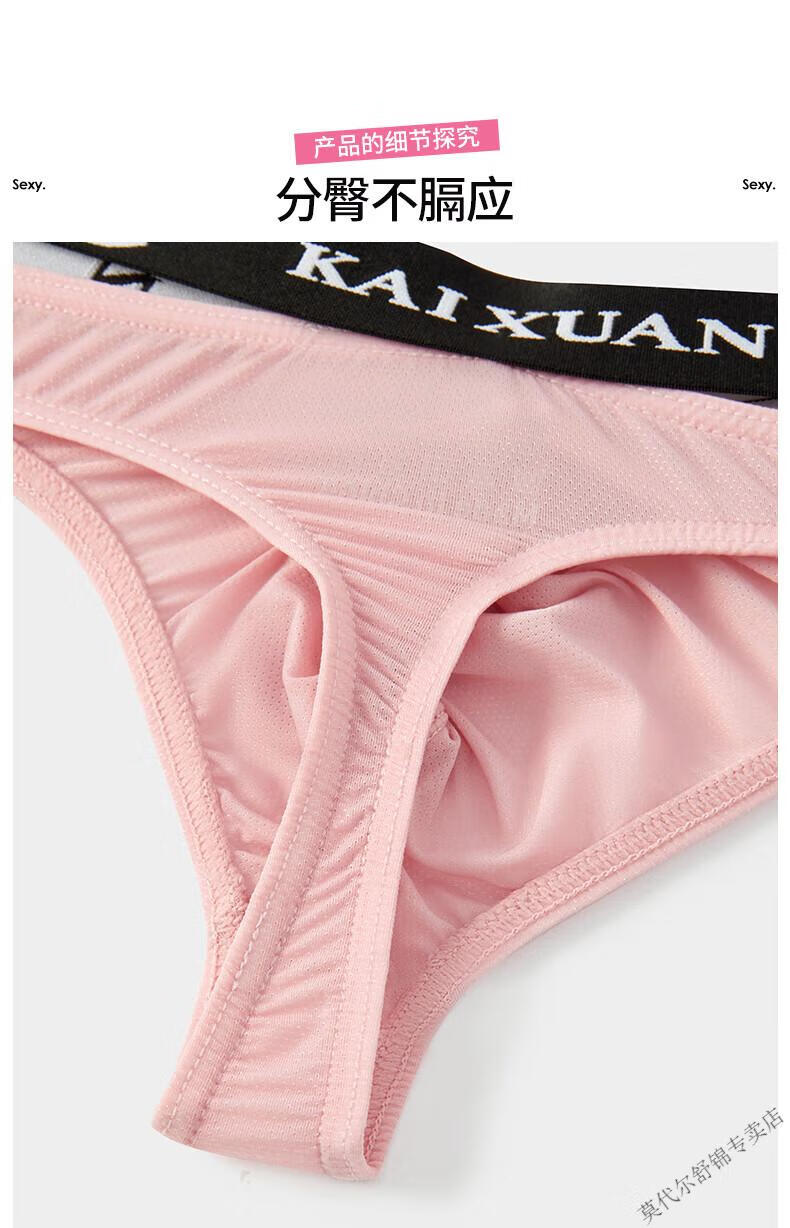 Modal High Slit Waist Passionate Youth Ice Silk Underwear Men's Summer Hot Thong Personality Sexy T-Pants U-Protruding Trend 2 Pairs Macho Pink + Charming Black M Weight 100-130 Jin Jin equals 0.5 kg