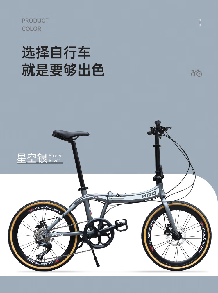 HITO official direct sales German HITO 20/22-inch folding bicycle aluminum alloy 451 wheel retro ultra-light and portable 7-speed starry silver - aluminum alloy + Shimano + double 20 inches x