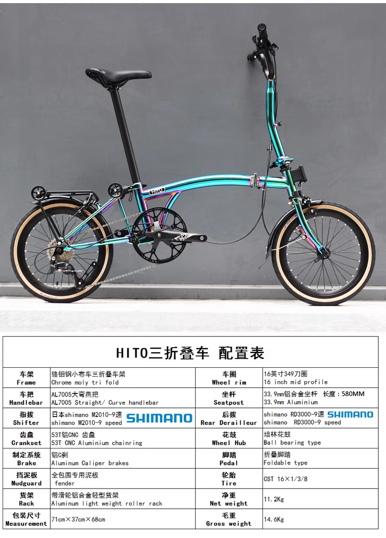 HITO official direct sales German HITO Lei Jun's same style Xiaobu folding bicycle 16/20 inches ultra-light and portable 9-change 16-inch - postal green Lei Jun's same style 16 inches