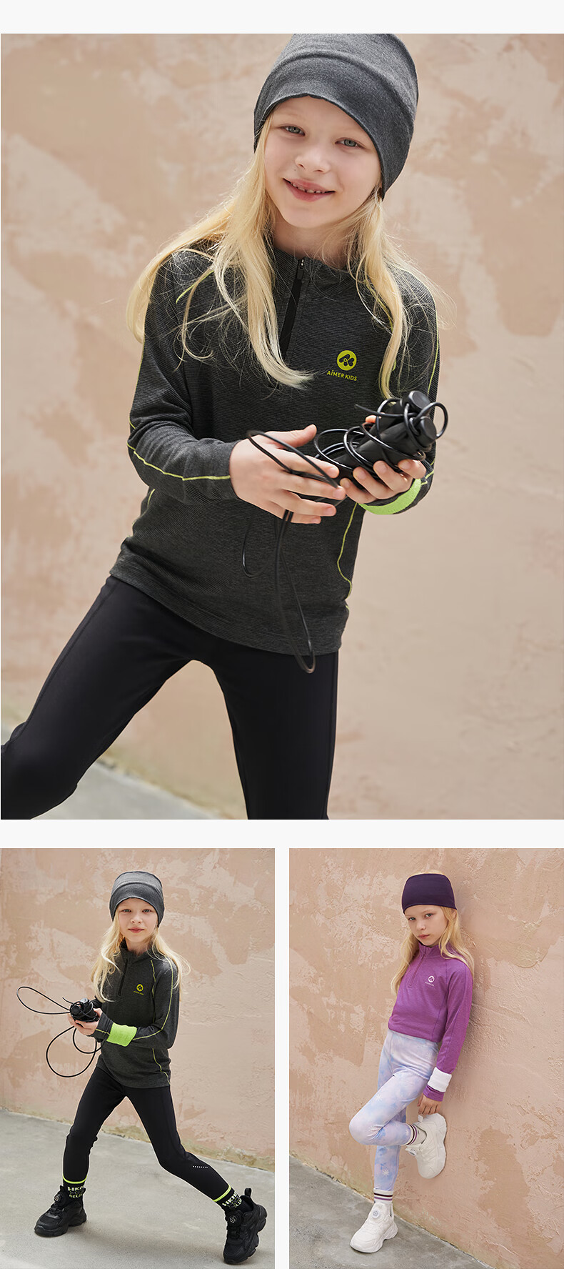 AIMER KIDS new autumn and winter product lightweight sports low-intensity children's long-sleeved warm base layer antibacterial moisture-wicking sportswear gray 130 (45-60Jin Jin equals 0.5kg)