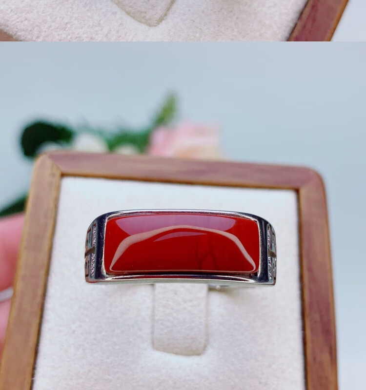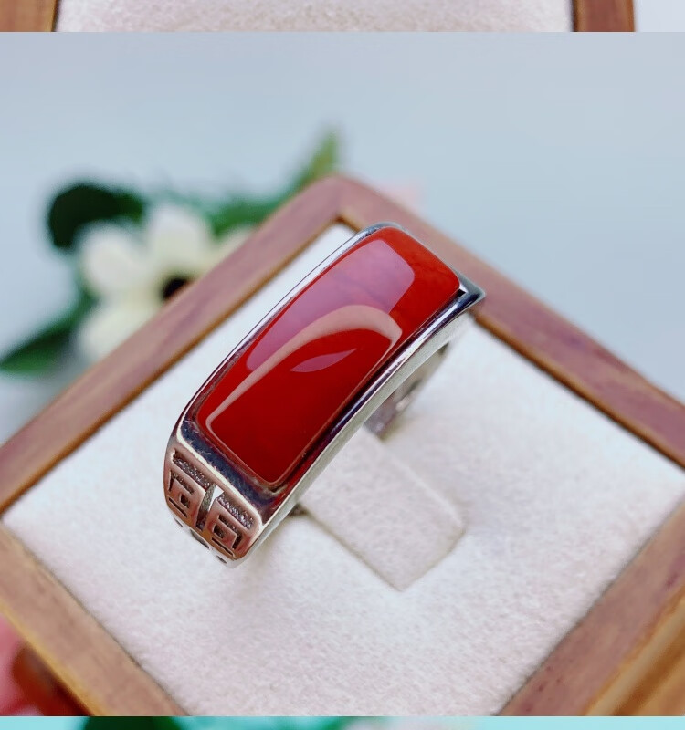 Core fragrance natural agate southern red saddle square ring fashionable versatile and exquisite birthday gift ring for boyfriend and girlfriend default ring