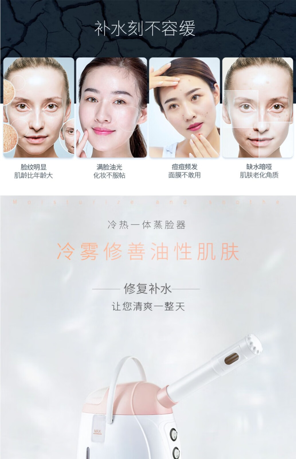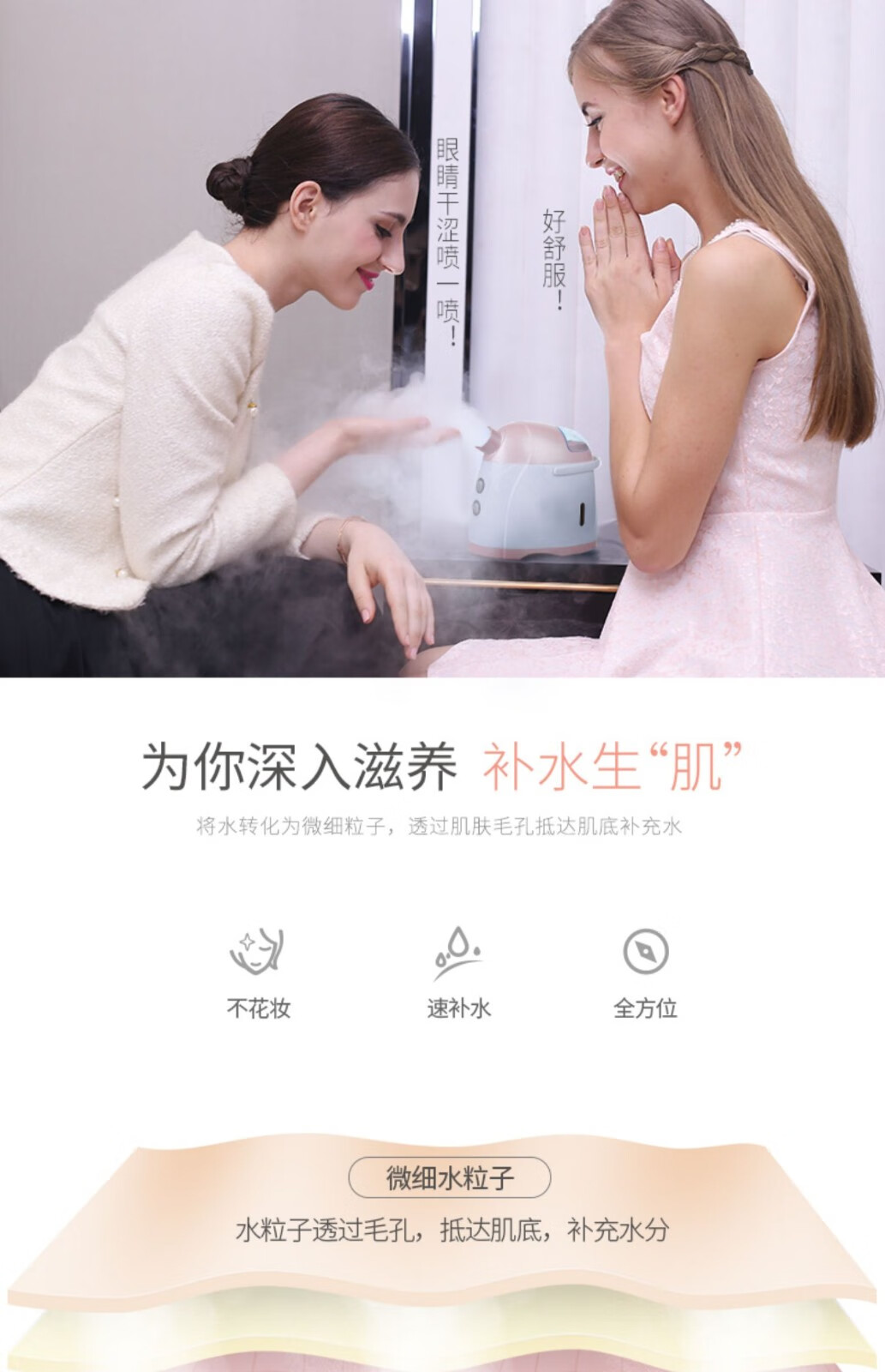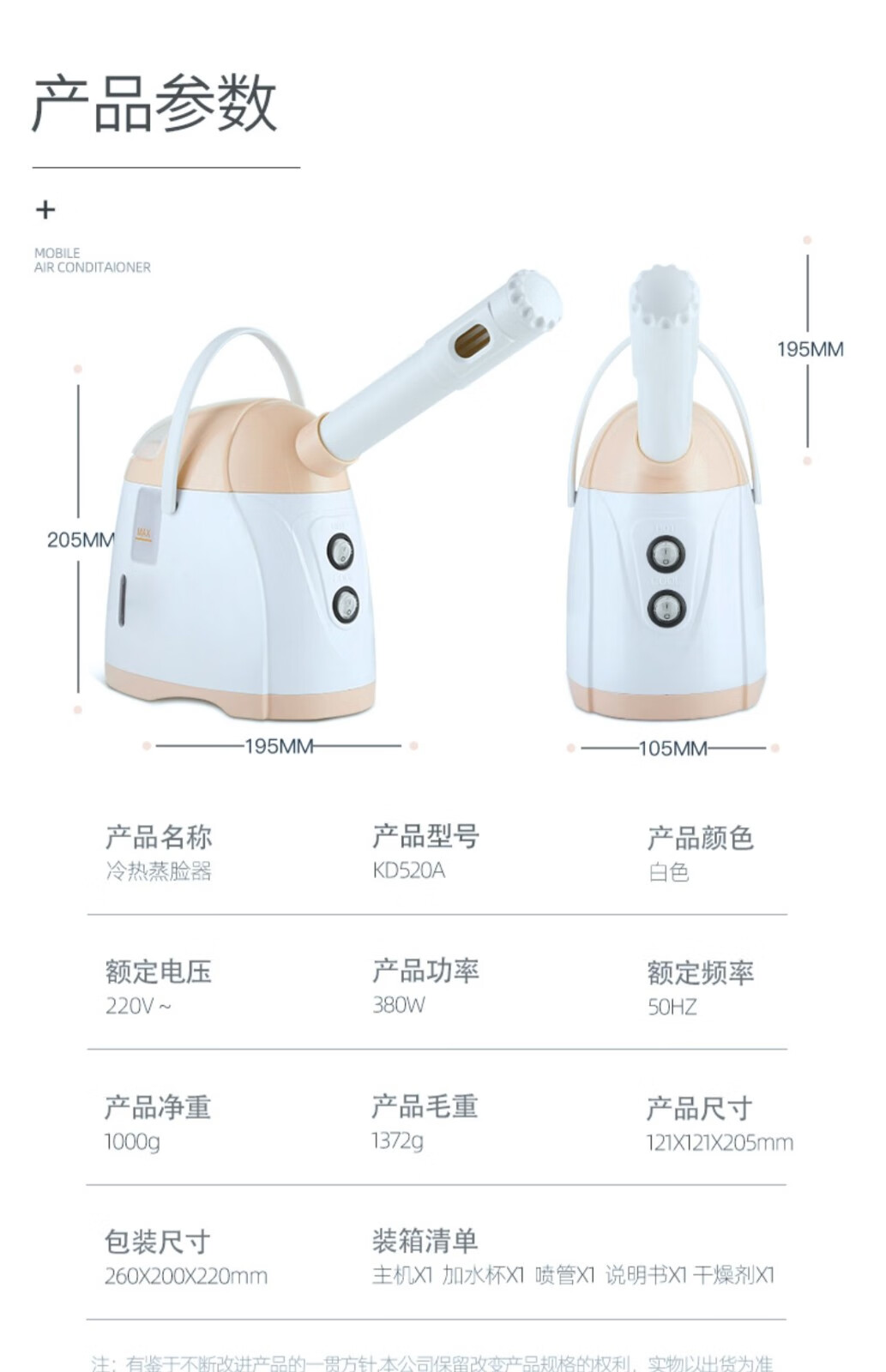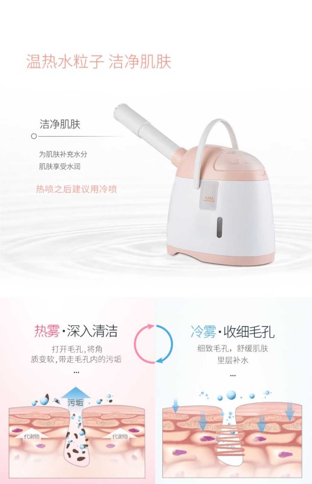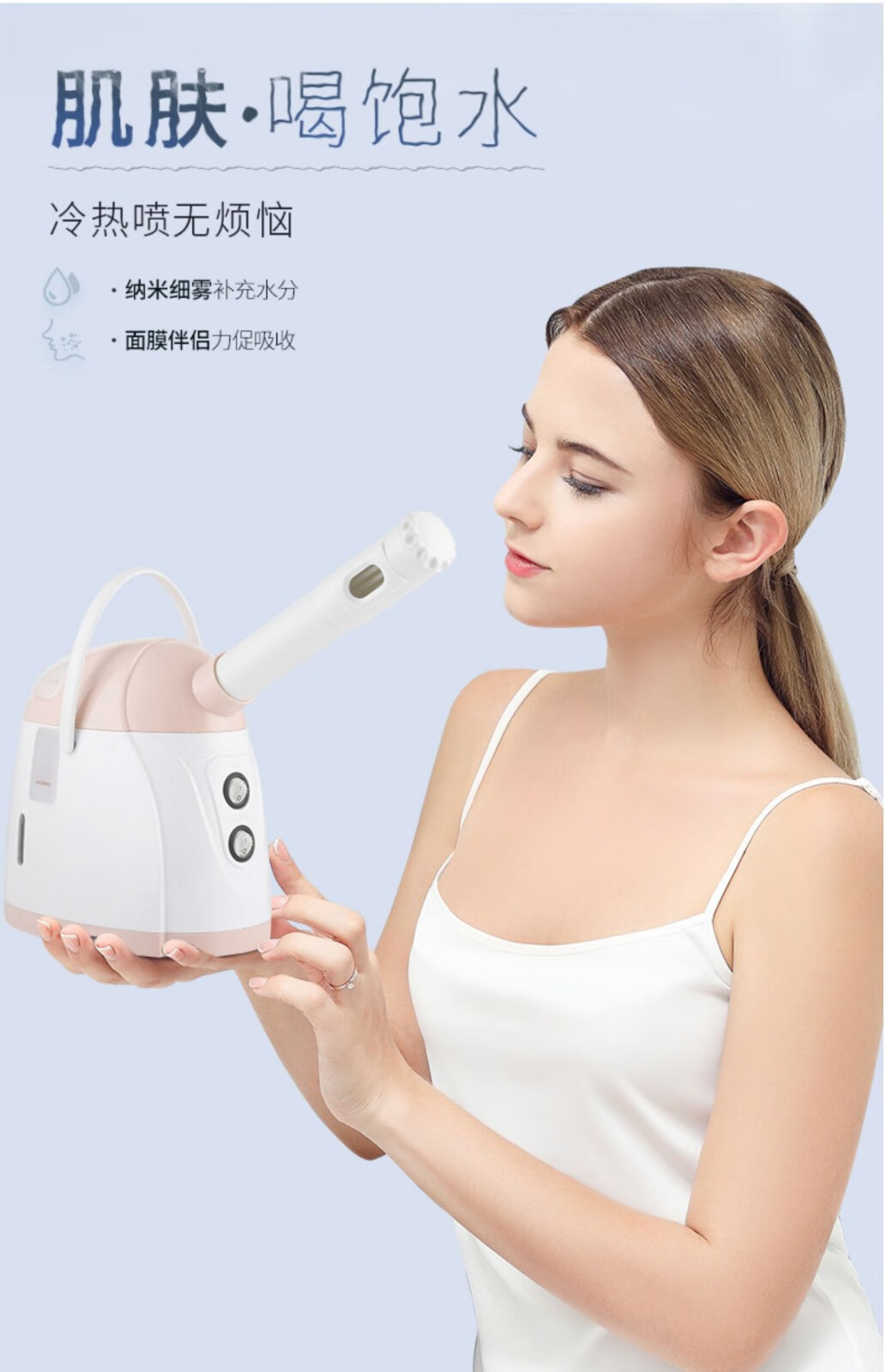 Golden Rice Facial Steamer Hot and Cold Dual Spray Nano Spray Beauty Instrument Hydrating Cold Spray Humidifying Facial Steamer Facial Steamer KD169A White Hot and Cold