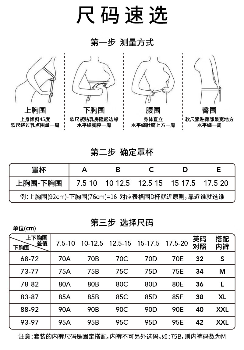 China (cm) 160-165/84-86 165-170 / 88-90 167-172 / 92-96 168-173 / 98-102 170-176 / 106-110