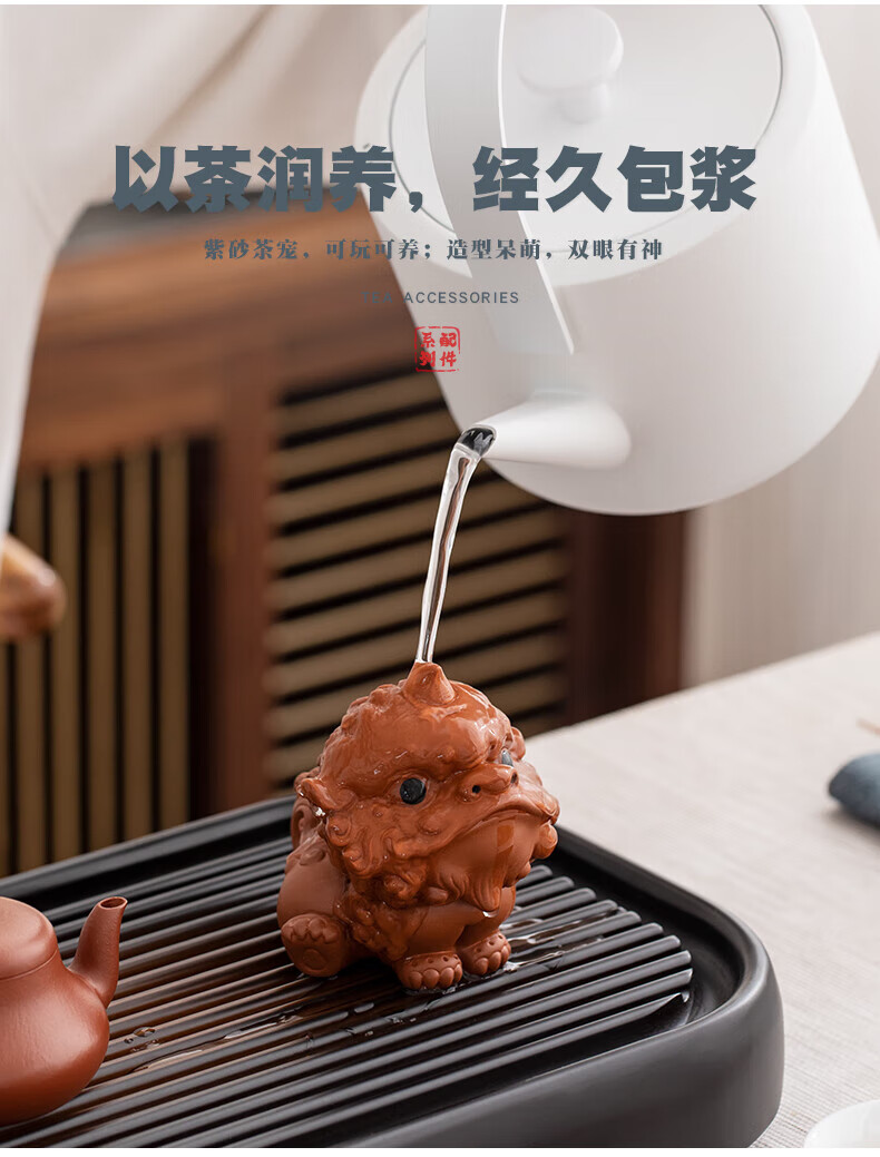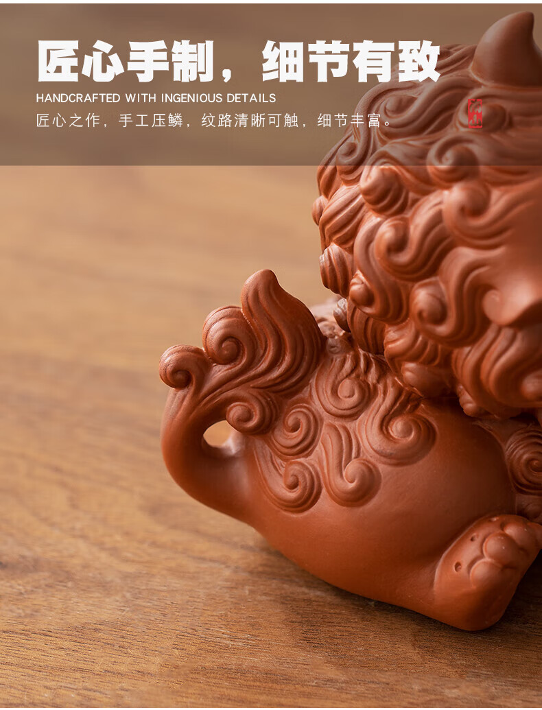 Mr. Nanshan tea set accessories household kung fu tea set purple clay ornaments creative tea table tea play lion awakening tea pet lion awakening tea pet_red clay gift box