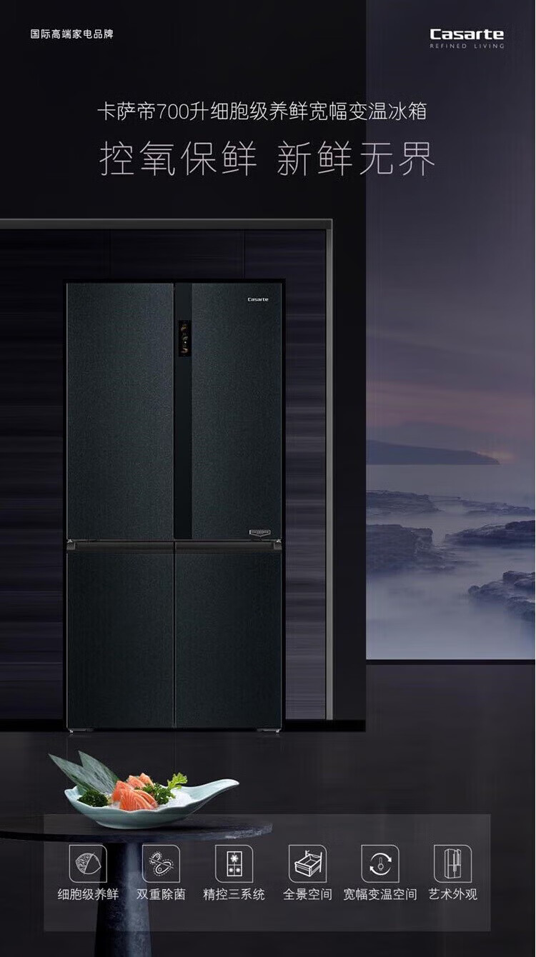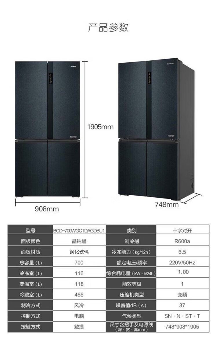 Zhijia Triwing Bird 700WGCTDAGDBU1 Crystal Diamond Series 700L high-end large-capacity cross-door precise control three-system MSA oxygen-controlled fresh-keeping automatic ice making machine