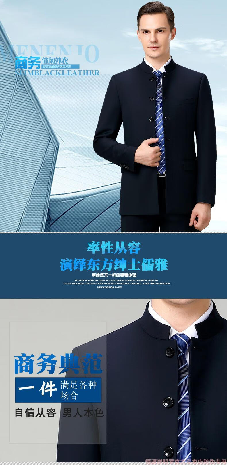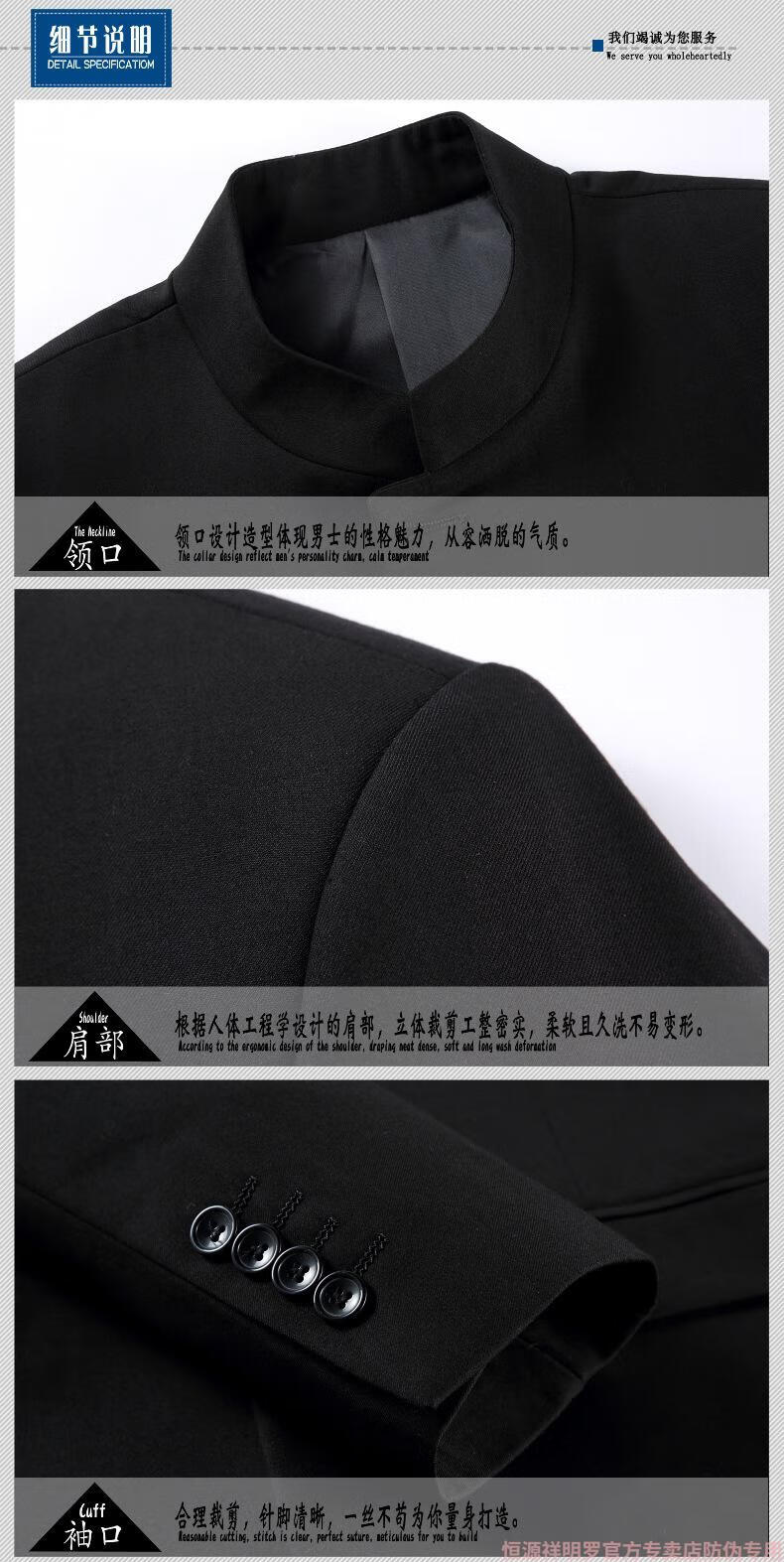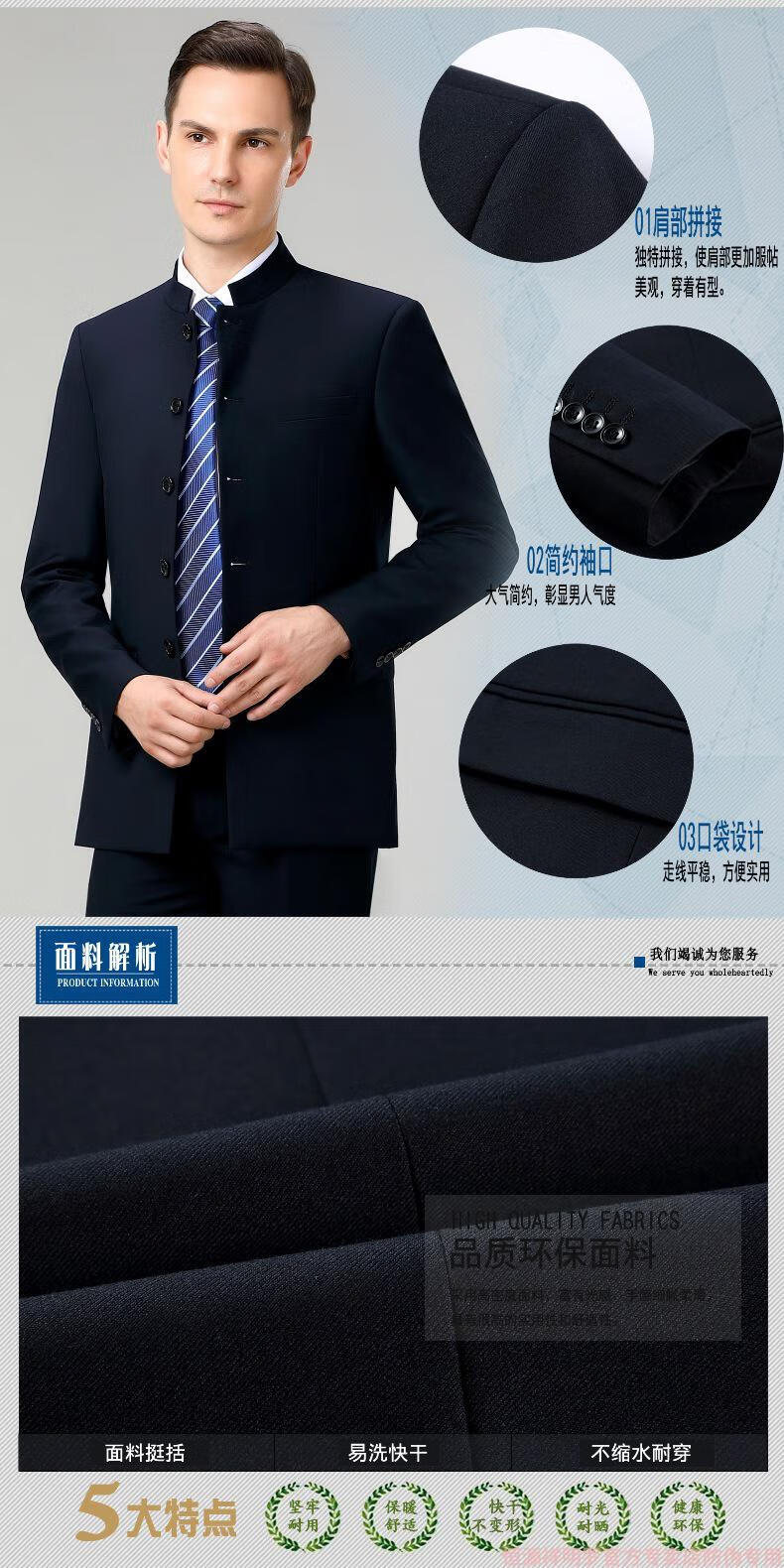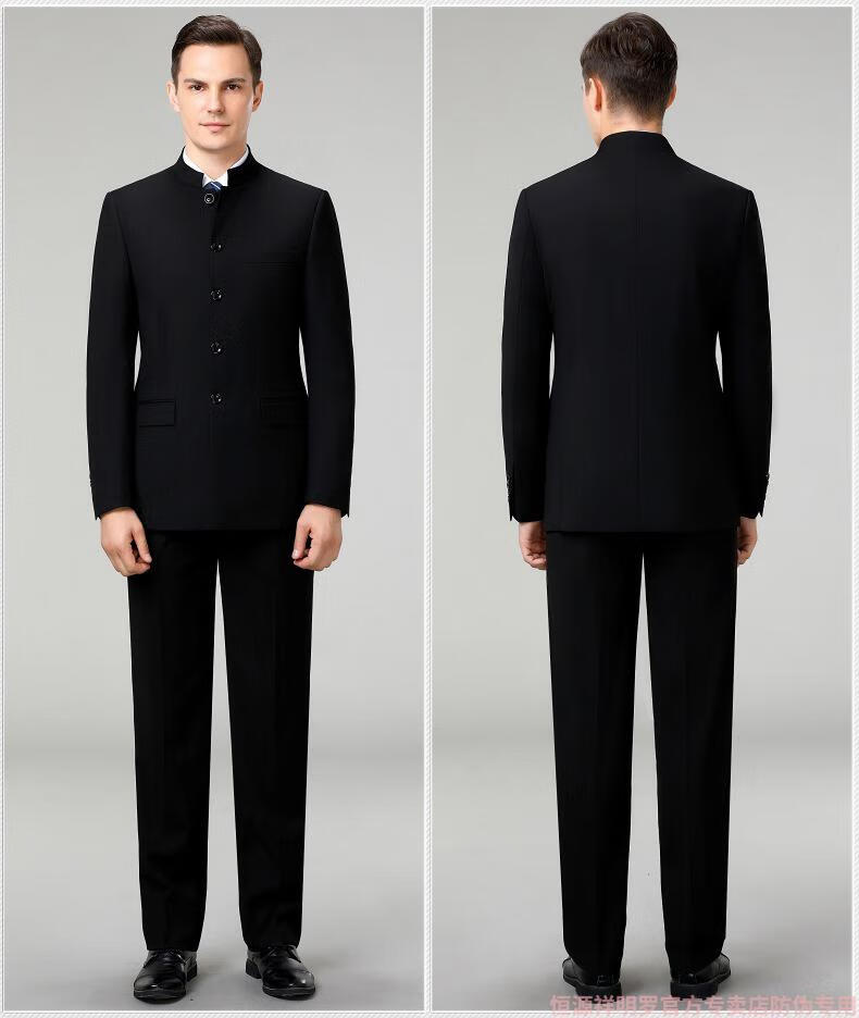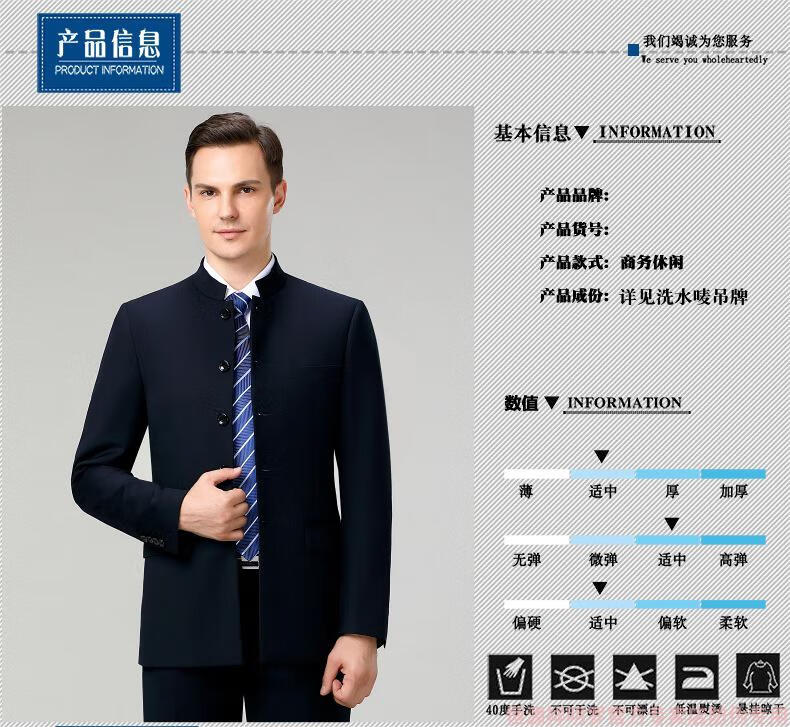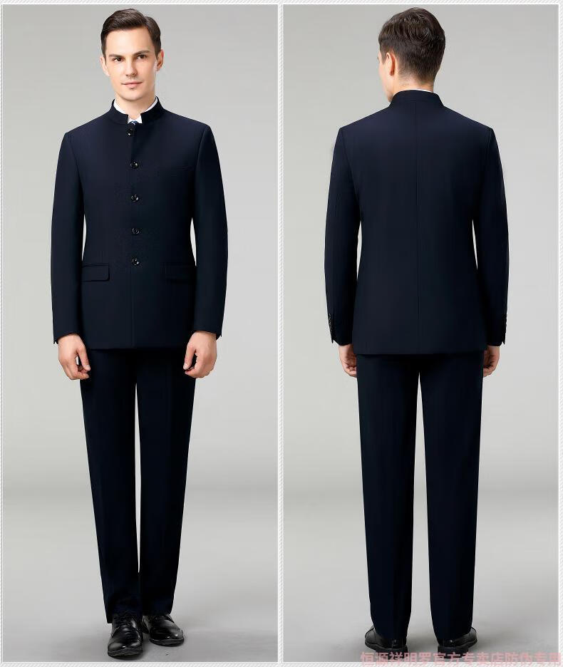 Hengyuanxiang tunic men's wool suit middle-aged dad's suit stand collar suit Chinese wedding banquet business casual wool suit 5532 Navy blue 165/46