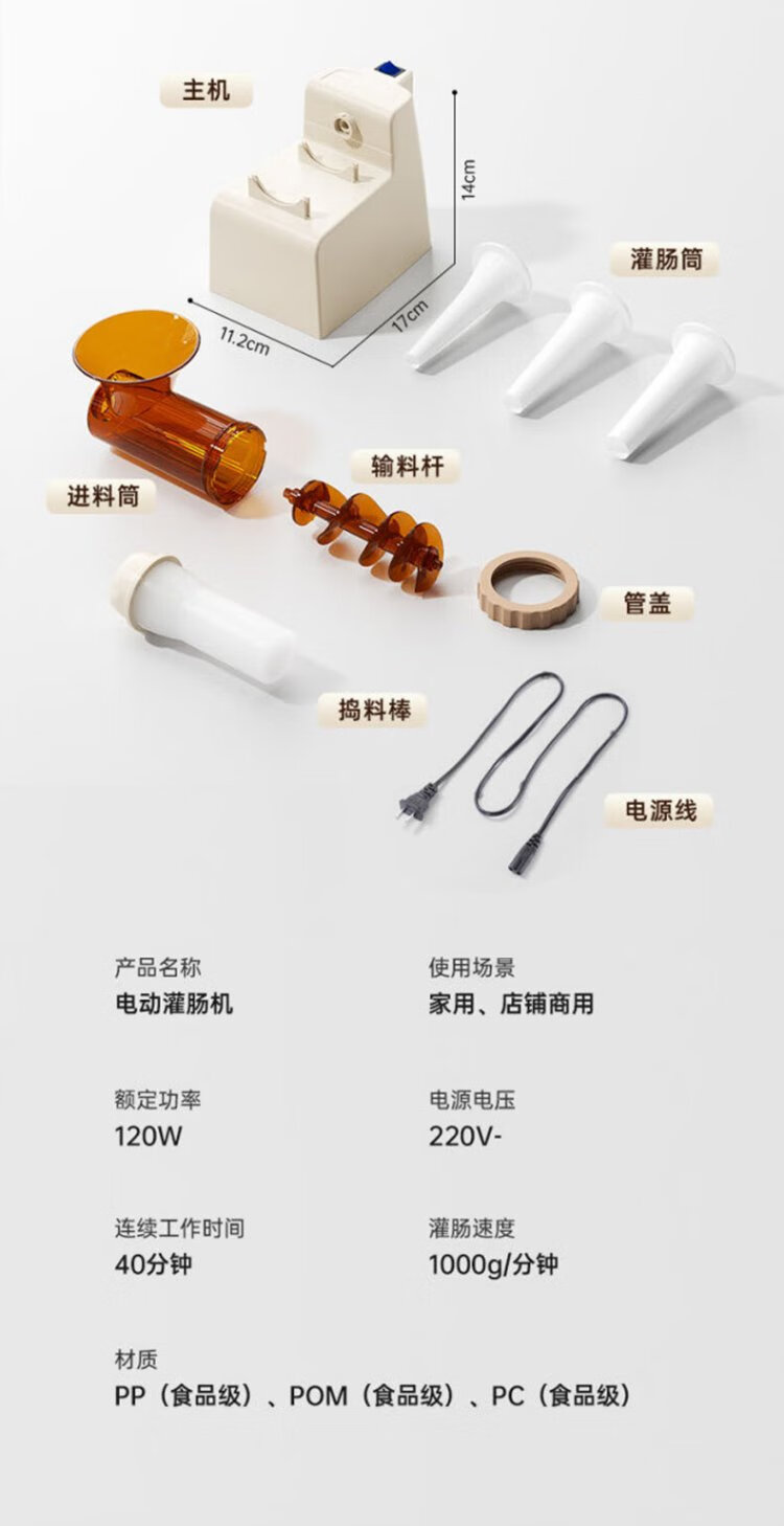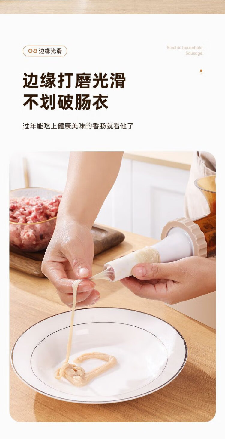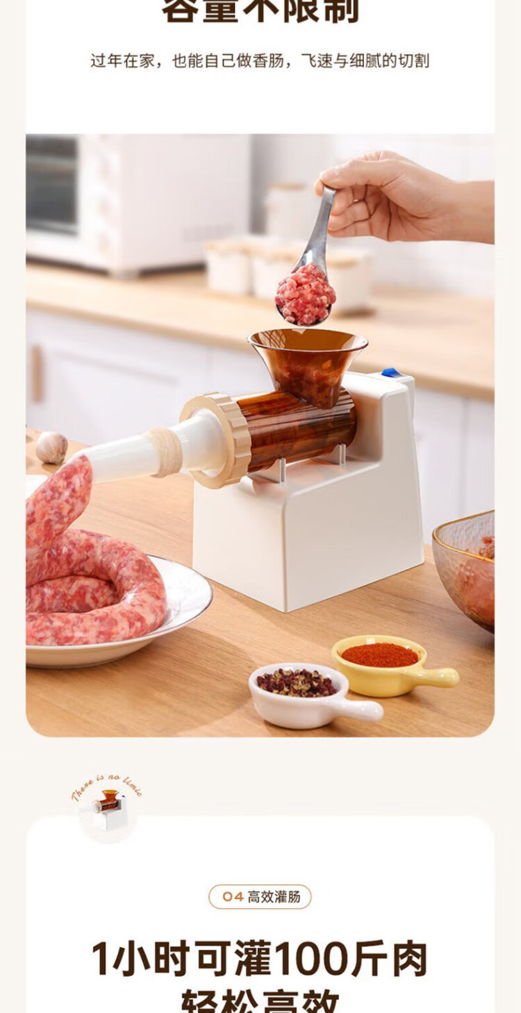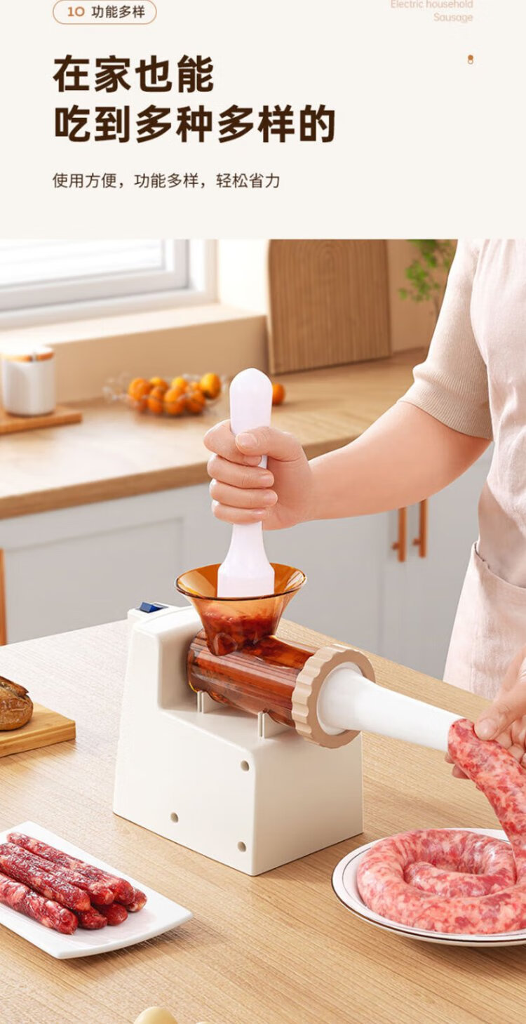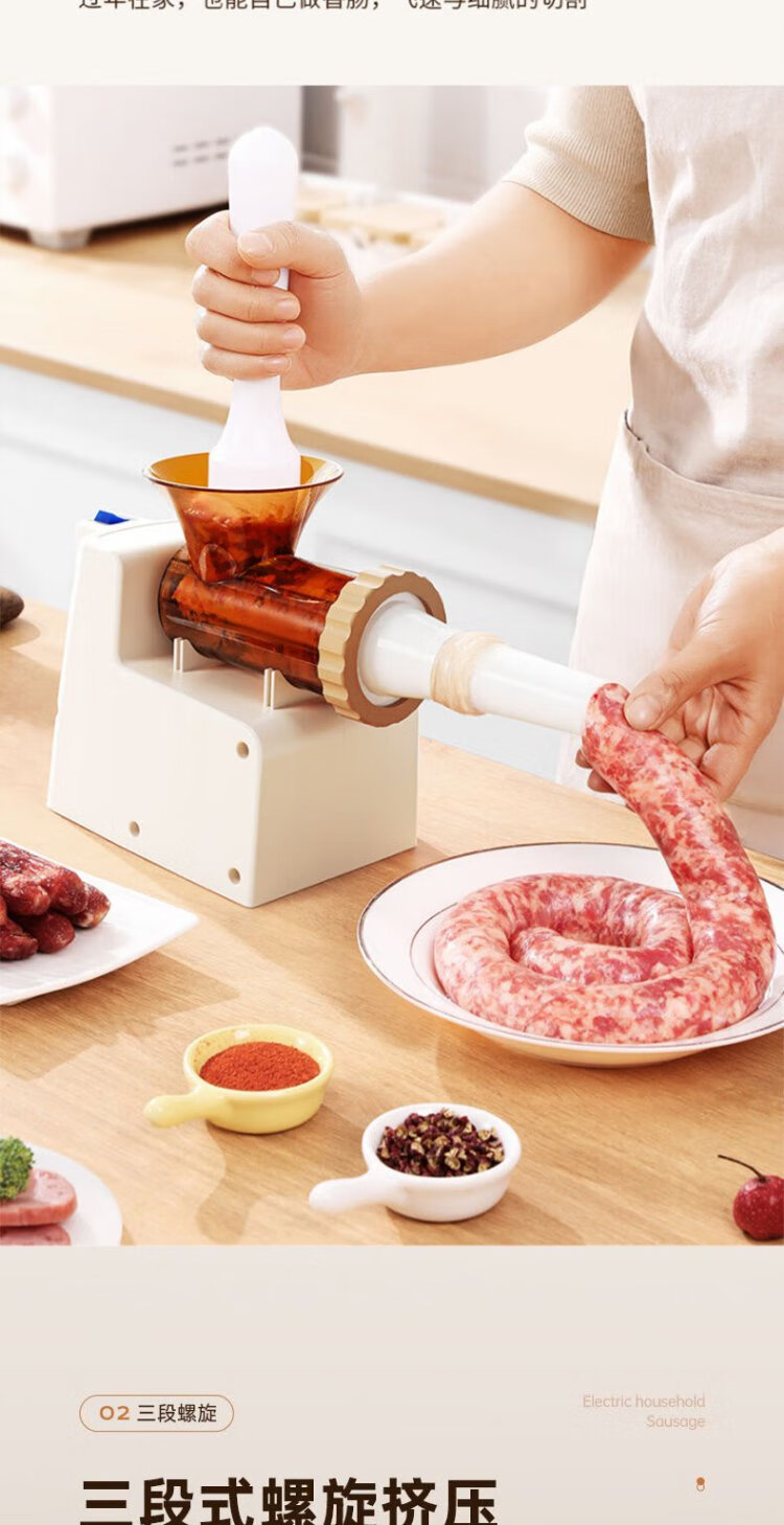 Baijie Electric Sausage Filler Home Fully Automatic Sausage Filling Machine Sausage Sausage Casing Tool Sausage Machine Artifact Fully Automatic Sausage Filler Intestinal Tube * 3 + Meat Stick #Explosive Style# Multi-segment spiral twisting to create a meaty texture