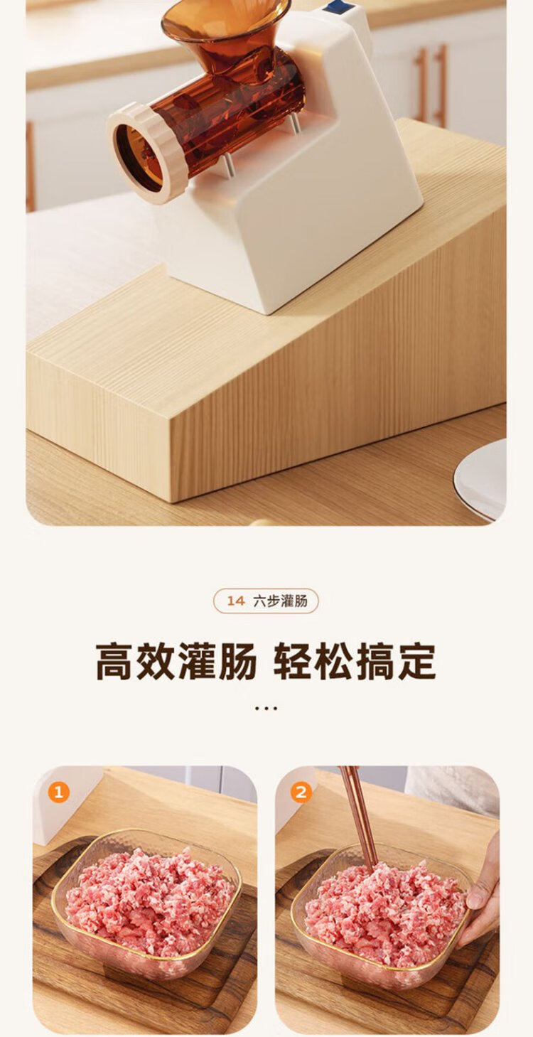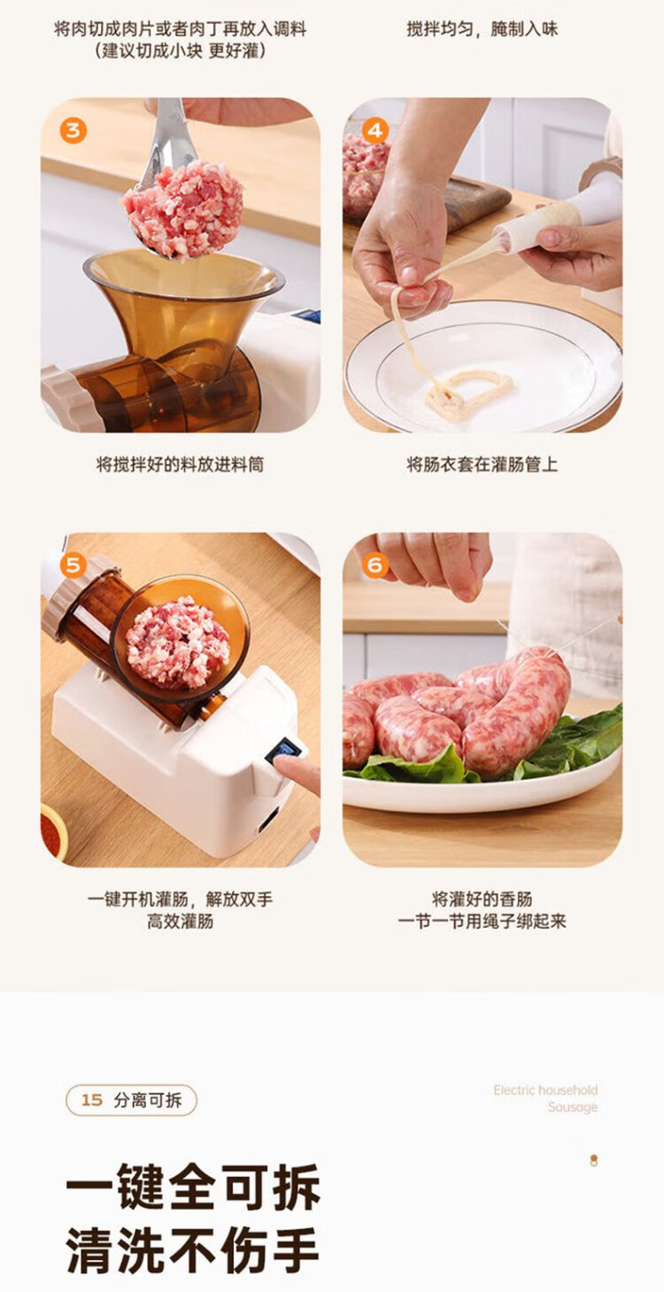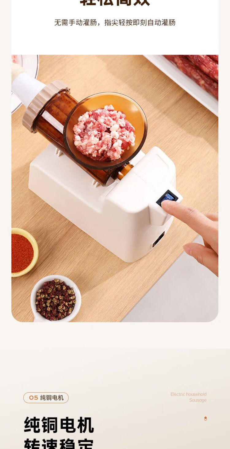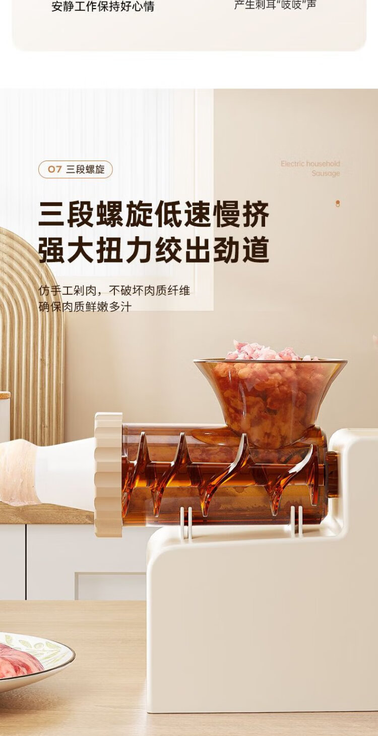 Baijie Electric Sausage Filler Home Fully Automatic Sausage Filling Machine Sausage Sausage Casing Tool Sausage Machine Artifact Fully Automatic Sausage Filler Intestinal Tube * 3 + Meat Stick #Explosive Style# Multi-segment spiral twisting to create a meaty texture