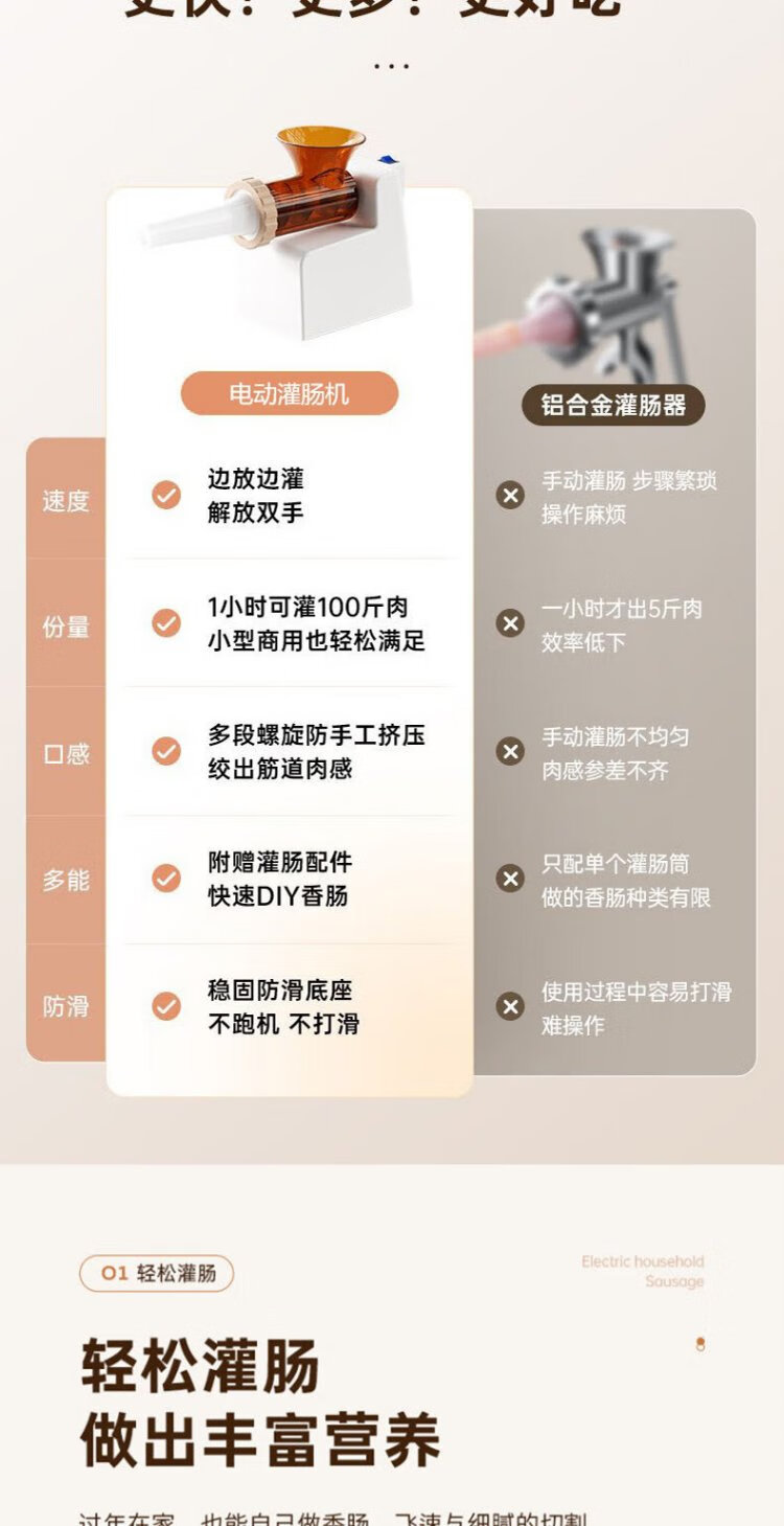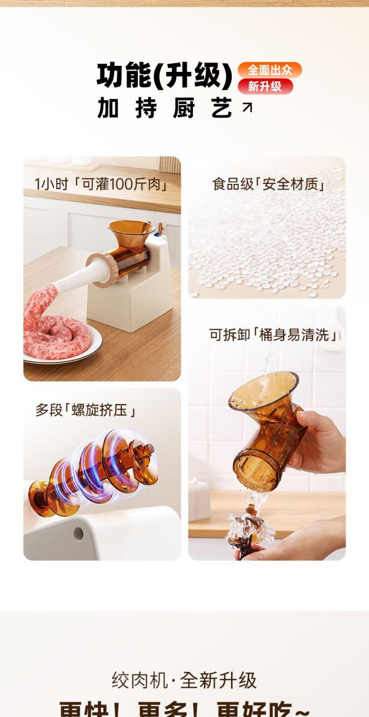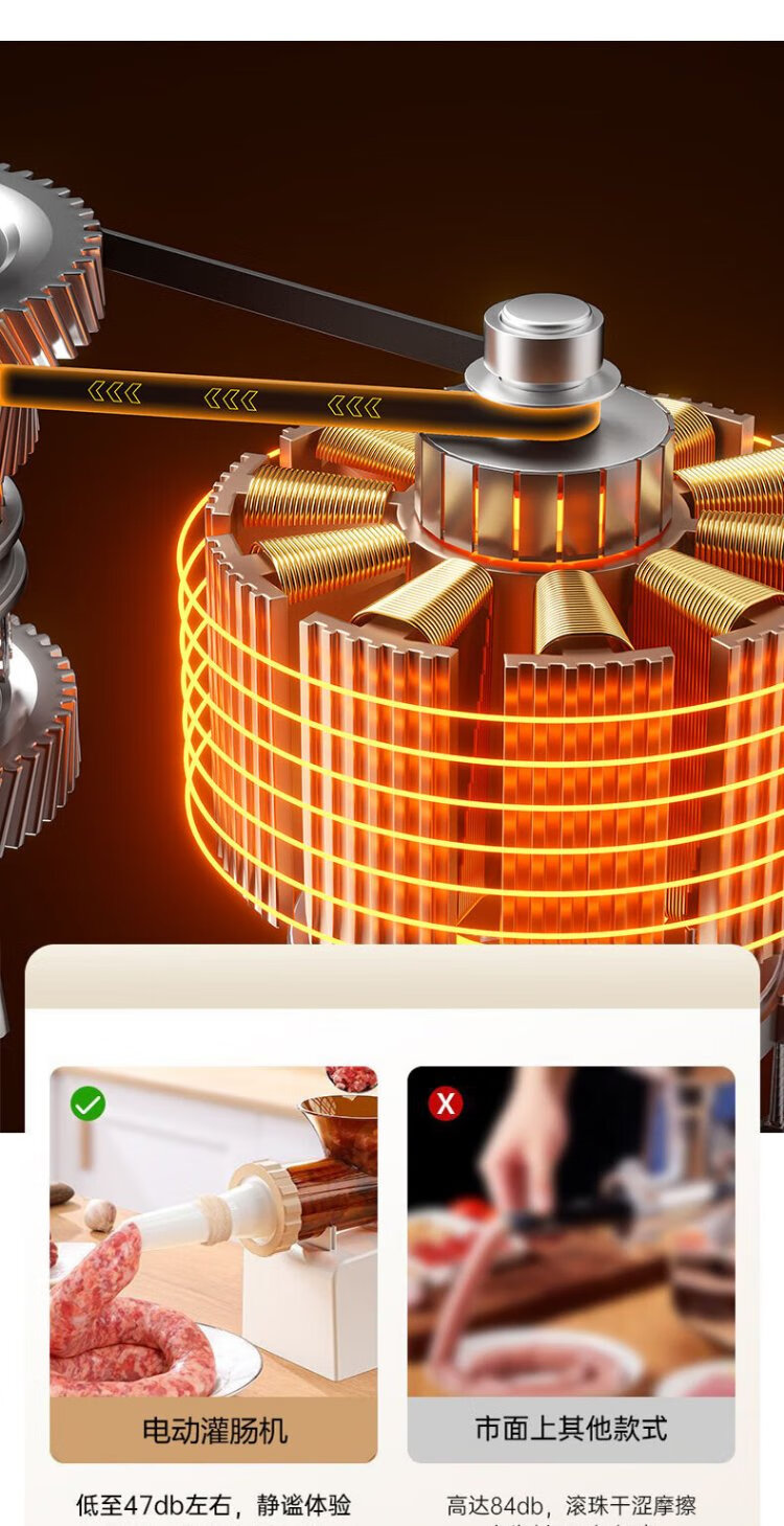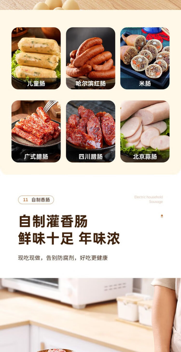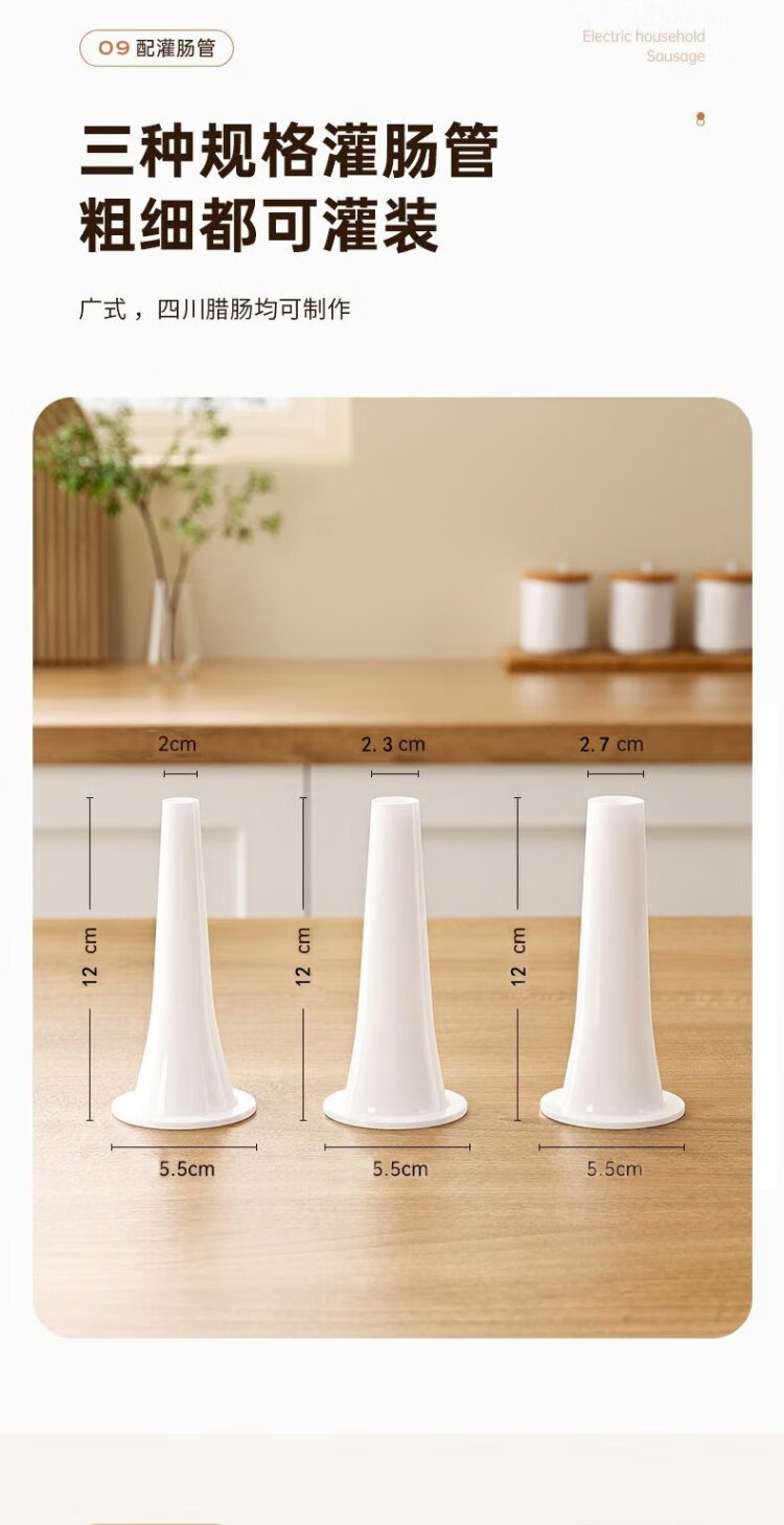 Baijie Electric Sausage Filler Home Fully Automatic Sausage Filling Machine Sausage Sausage Casing Tool Sausage Machine Artifact Fully Automatic Sausage Filler Intestinal Tube * 3 + Meat Stick #Explosive Style# Multi-segment spiral twisting to create a meaty texture