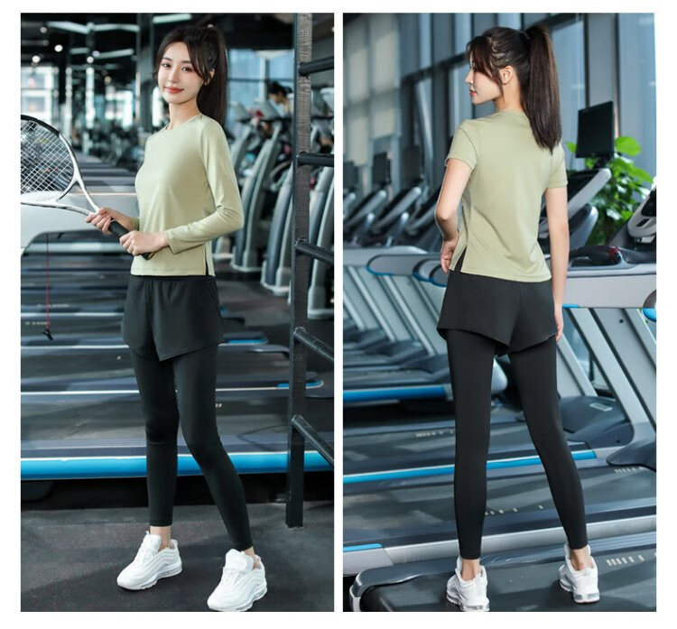 Fluniyu Sports Suit Women's Yoga Wear Women's Five-Piece Quick-Drying Breathable Running Fitness Wear Women's Pilates Training Clothes Grass Green Five-Piece Suit XL Recommended Weight 112-128 Jin Jin is equal to 0.5 kg