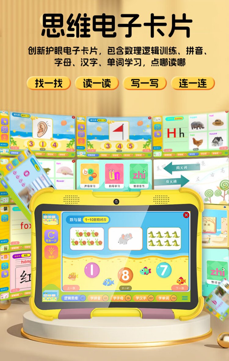 Huajingfang Children's Learning Machine Early Education Machine 0-3-6-12 Years Old Baby Toddler Primary School Thinking Eye-Care Student Tablet 7-inch Upgraded Version 4G+128G丨Logical Thinking丨Junior-school Connection