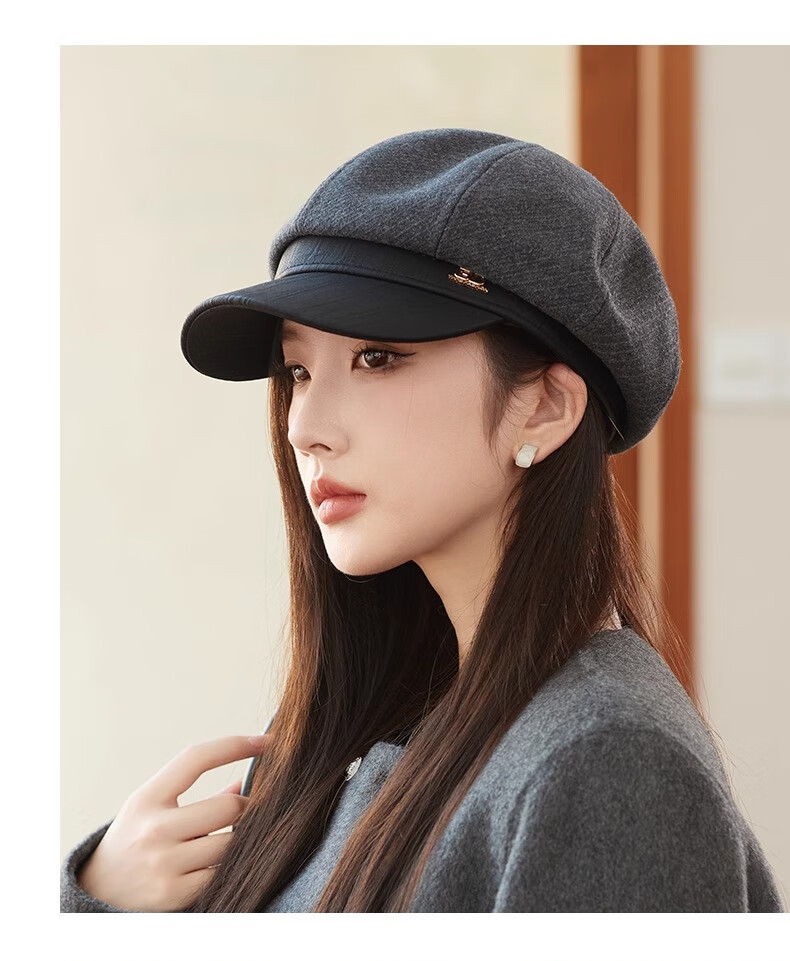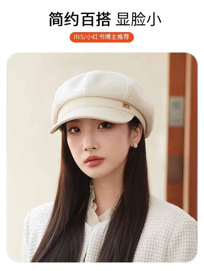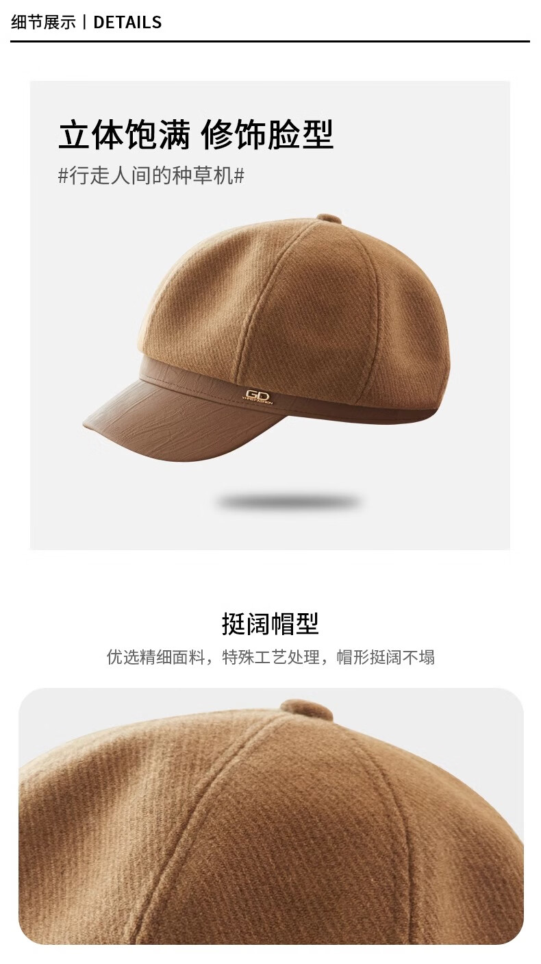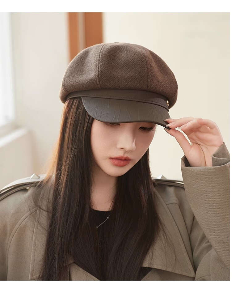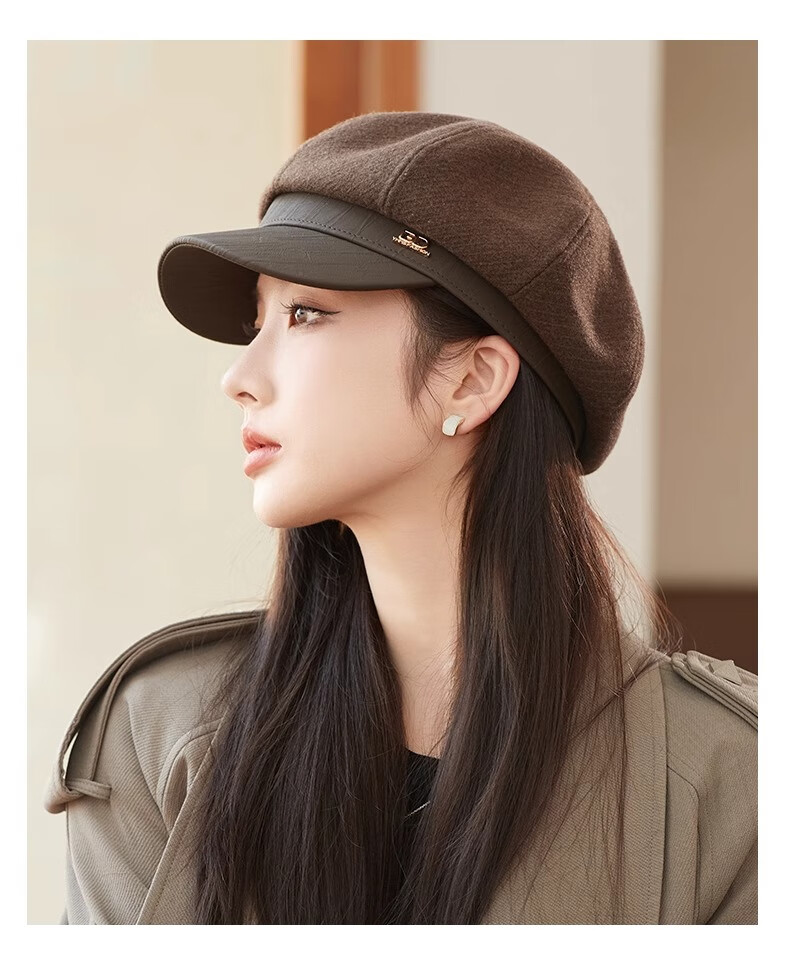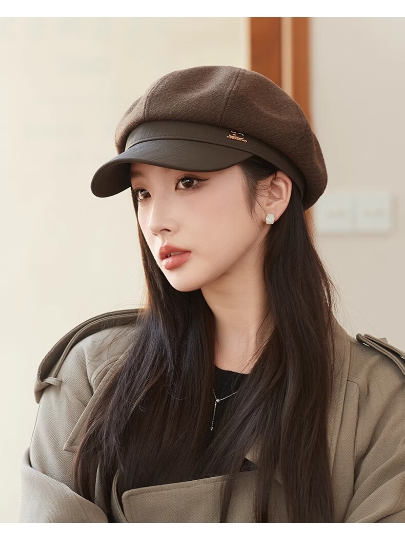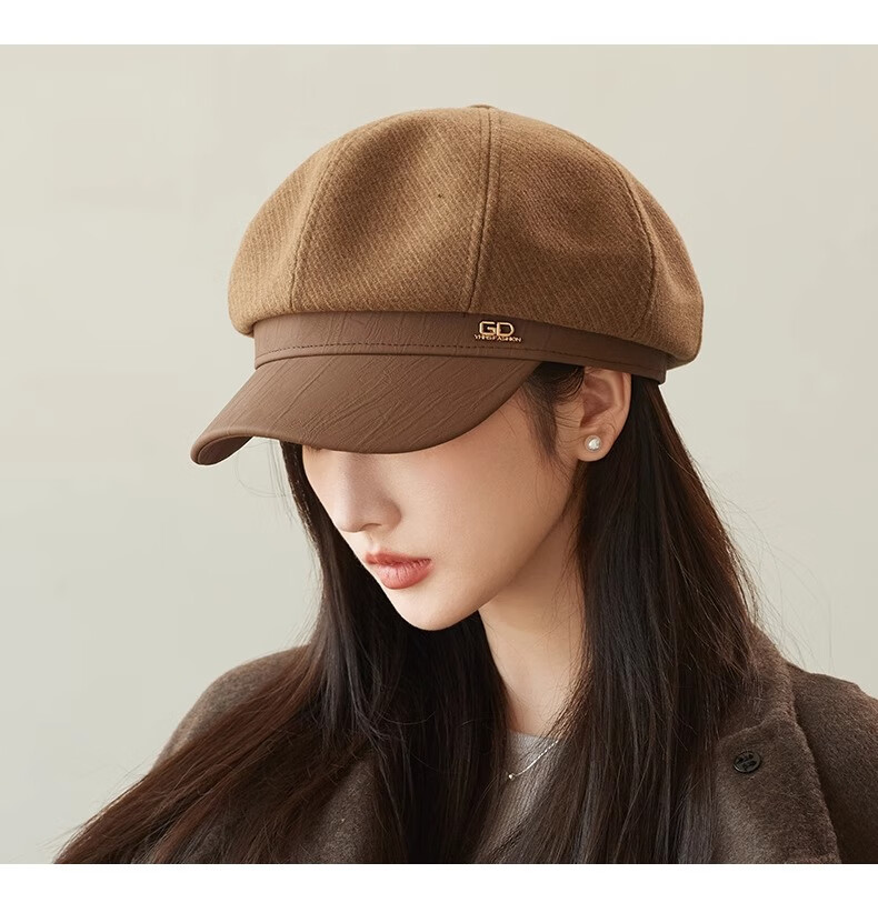 Shenggeer octagonal beret women's autumn and winter Korean version versatile 2025 new British retro face-showing small fashion newsboy hat brown one size