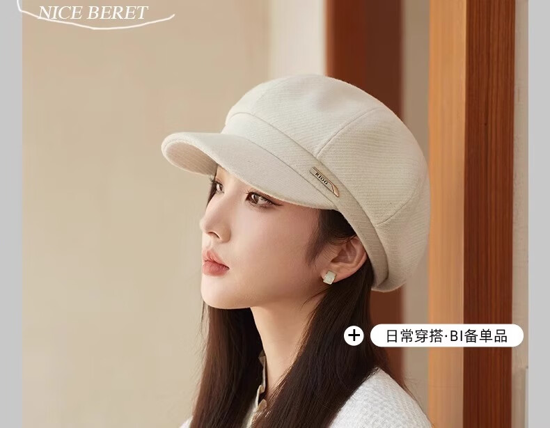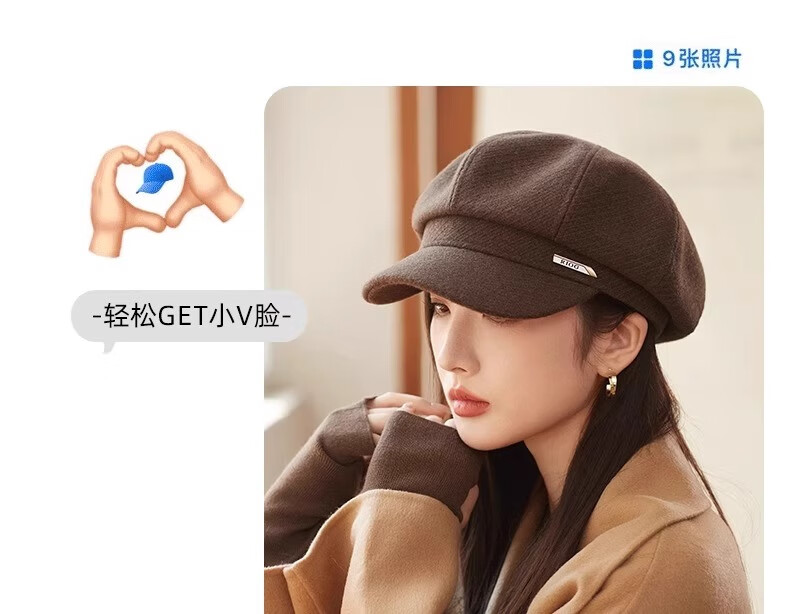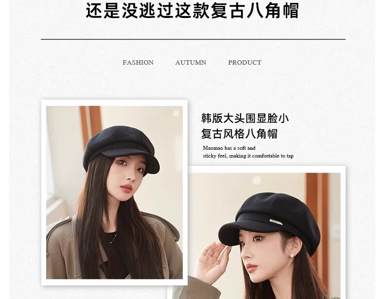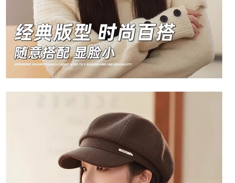 Shenggeer Hat Women's Spring and Autumn Korean Style Fashion Versatile Octagonal Beret Showing Face Small Retro Painter Hat British Peaked Cap Brown