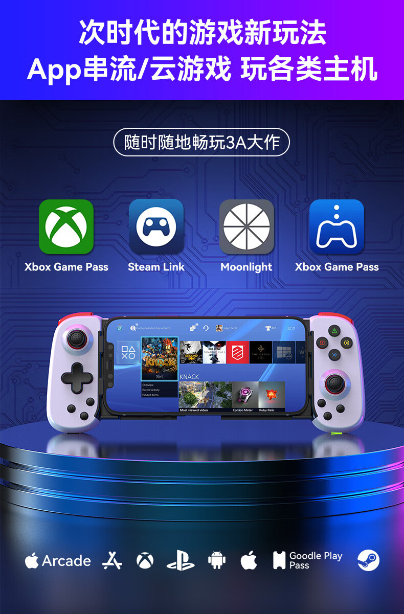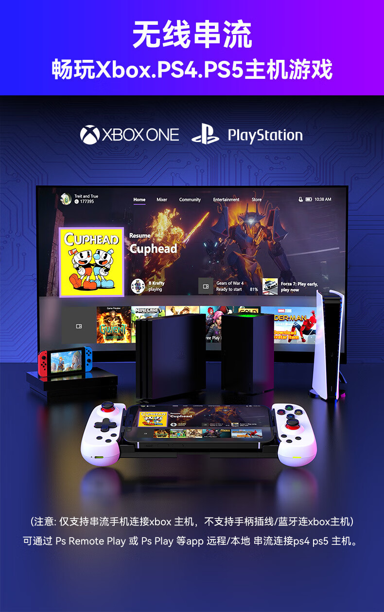 AIRWORLD mobile phone stretch game controller fully compatible with Android V3 Apple computer cloud game simulator PS5 XBOX host elegant white