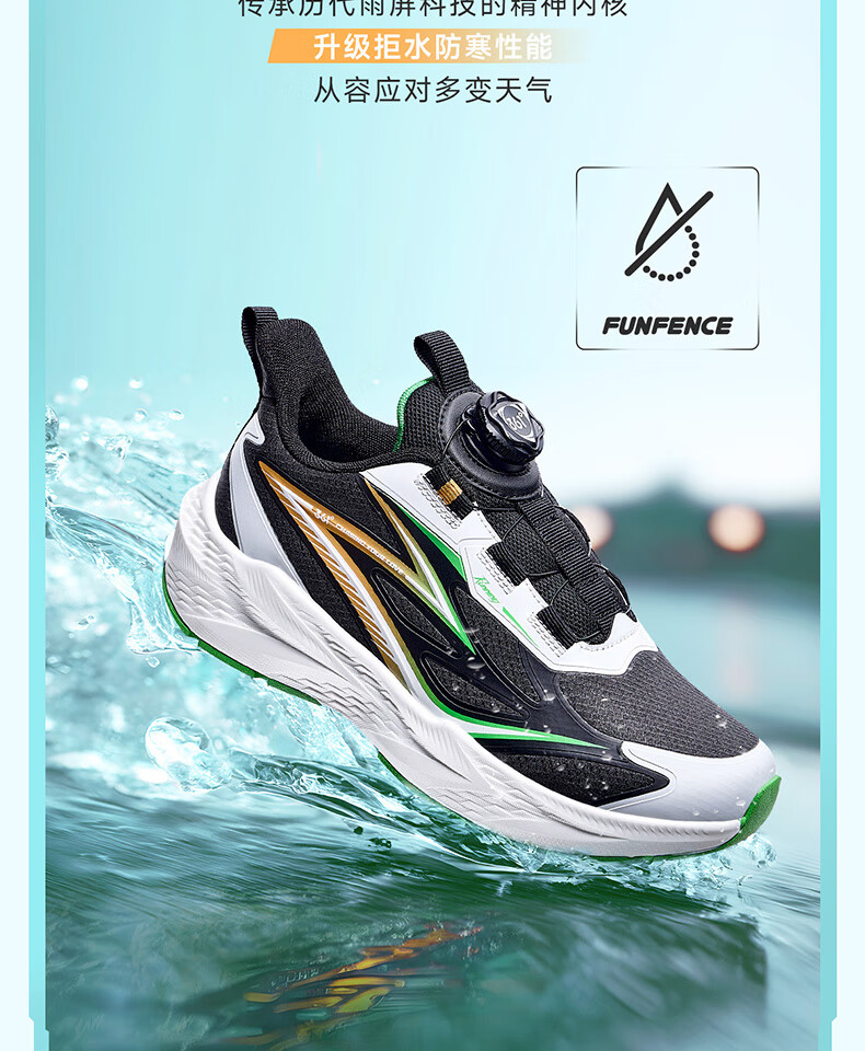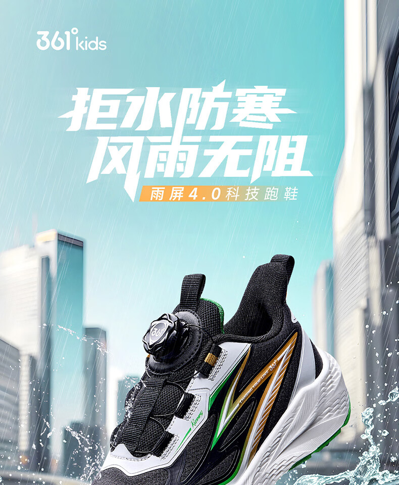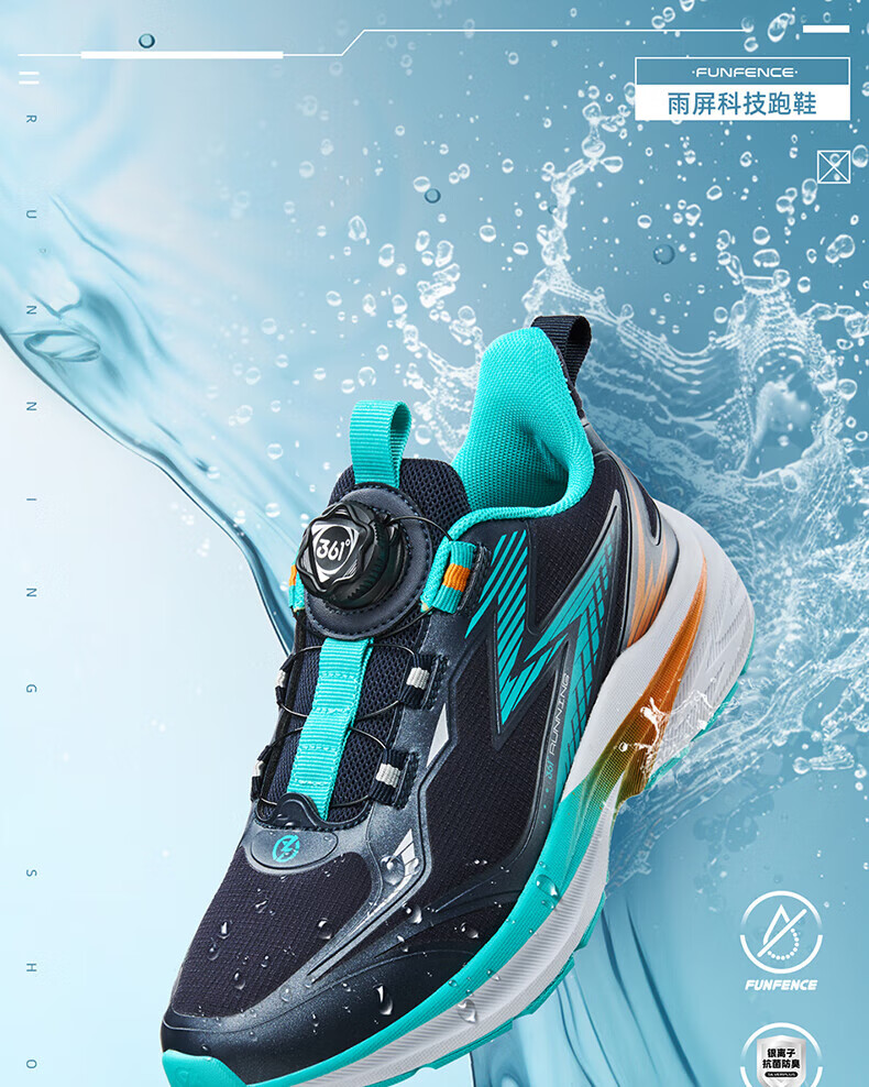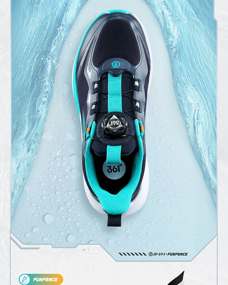 361 Yuscreen Technology 3.0 Children's Running Shoes 2025 Four Seasons New Water-Repellent Sports Shoes for Boys and Girls Rainscreen Third Generation Dark Stone Blue/Time Green 37