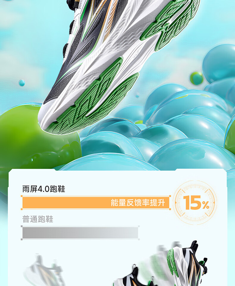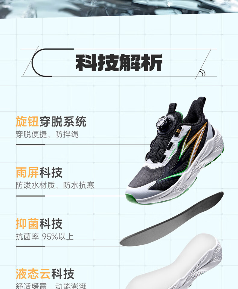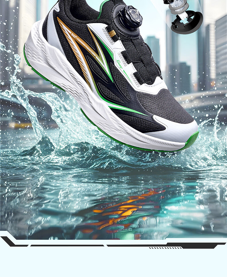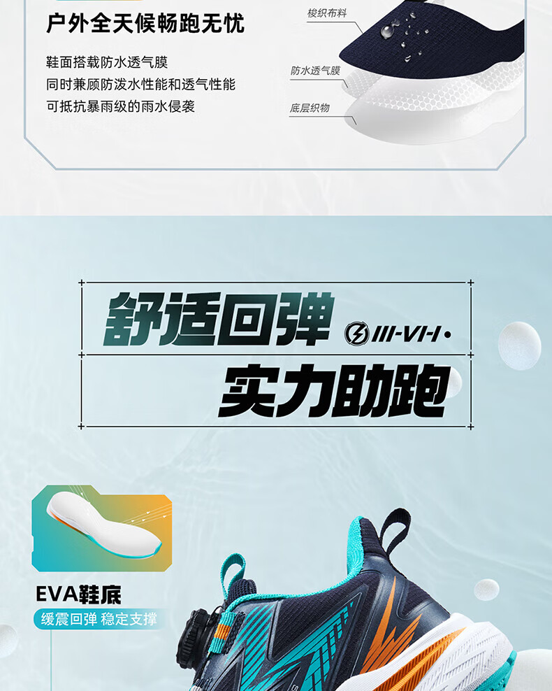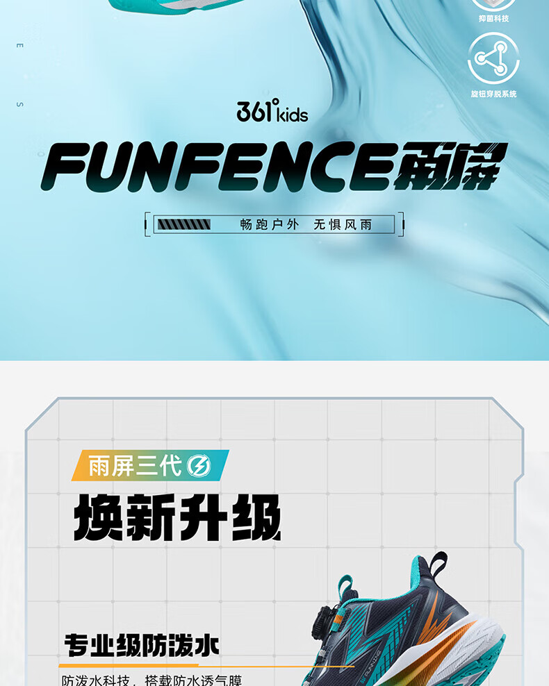 361 Yuscreen Technology 3.0 Children's Running Shoes 2025 Four Seasons New Water-Repellent Sports Shoes for Boys and Girls Rainscreen Third Generation Dark Stone Blue/Time Green 37