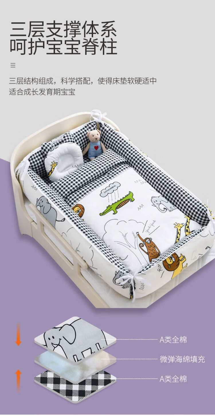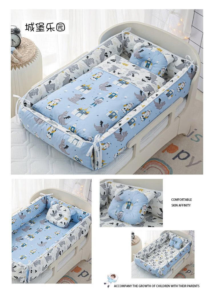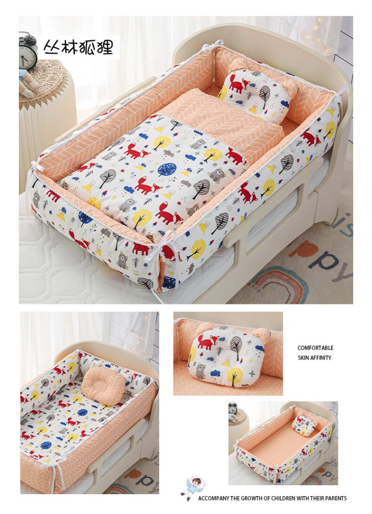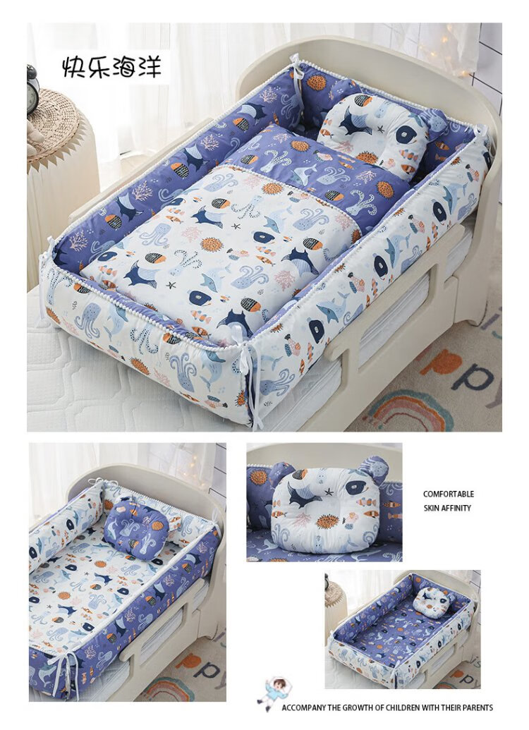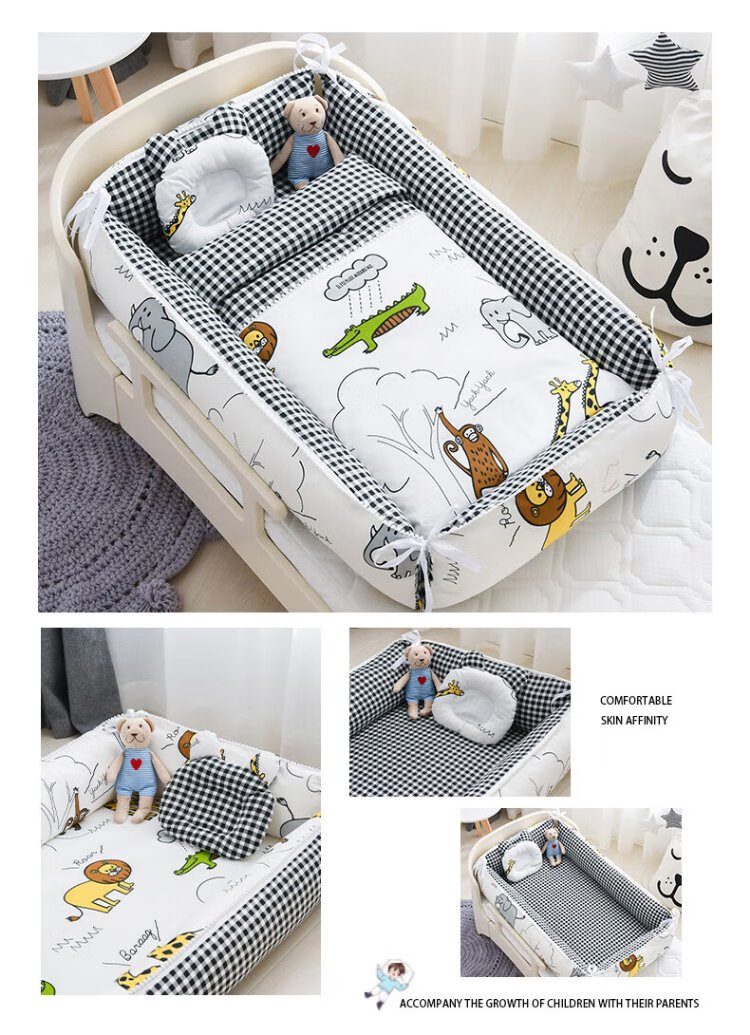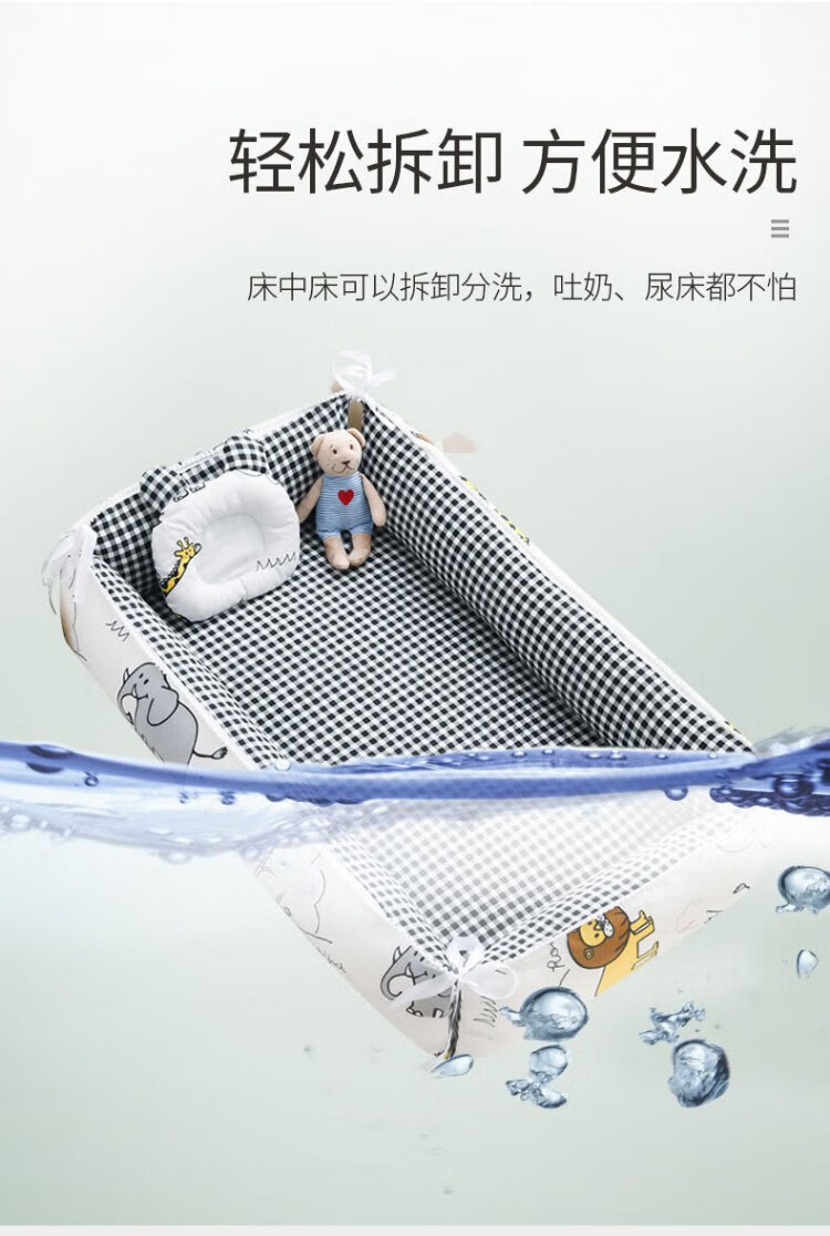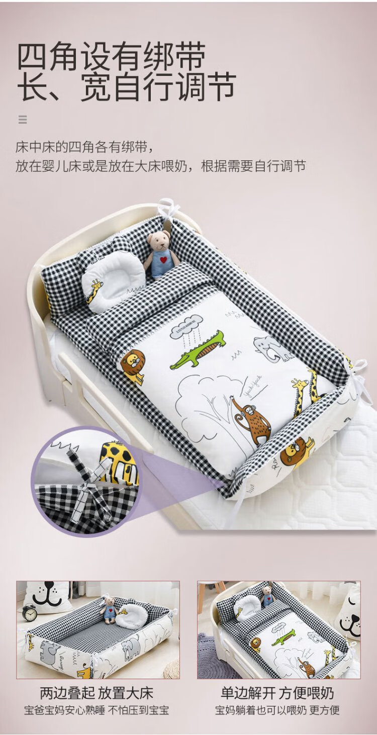 Gudong Bear crib mid-bed bed soothing artifact multi-functional newborn portable baby play bed detachable mobile bionic Animal World with quilt (set of four)