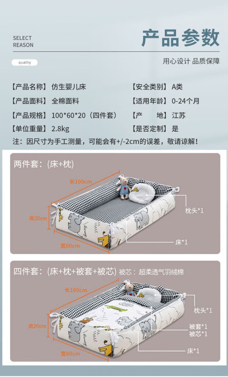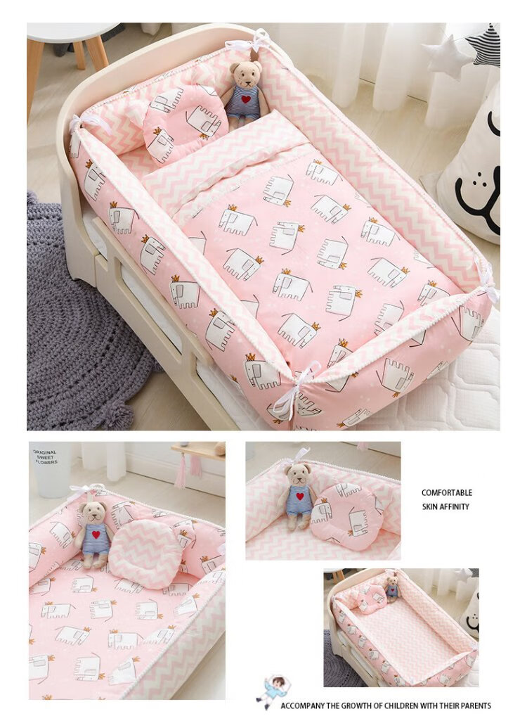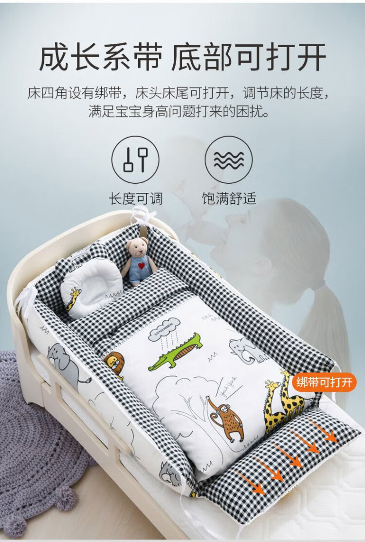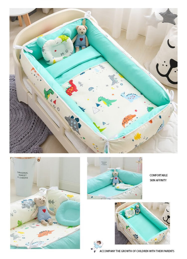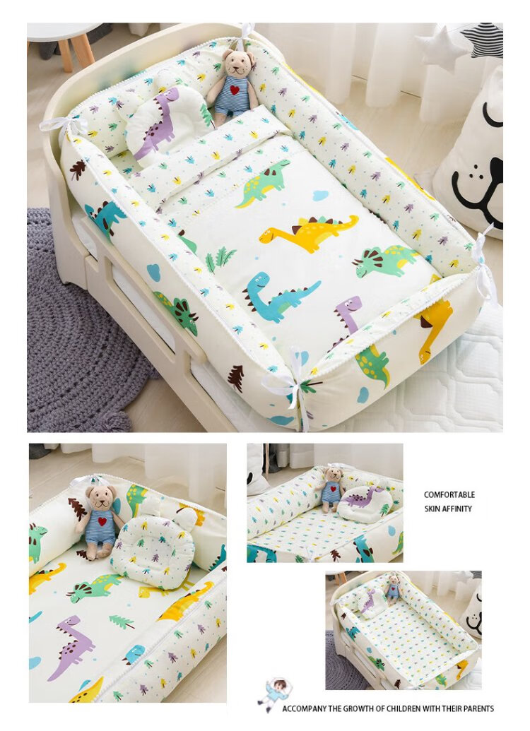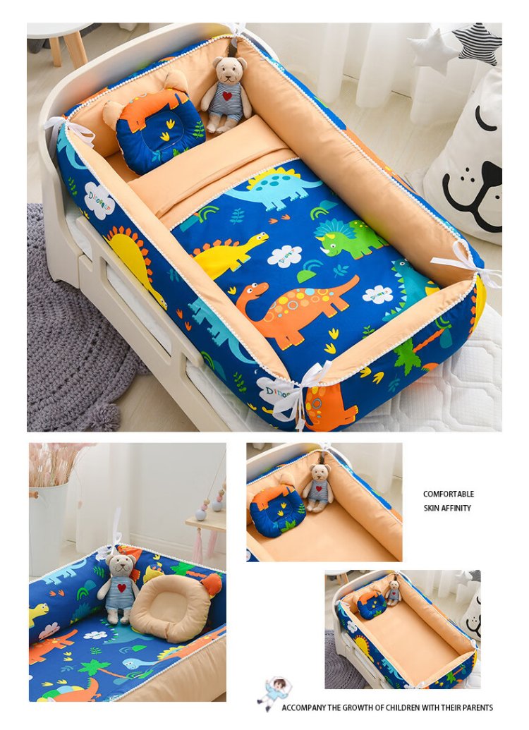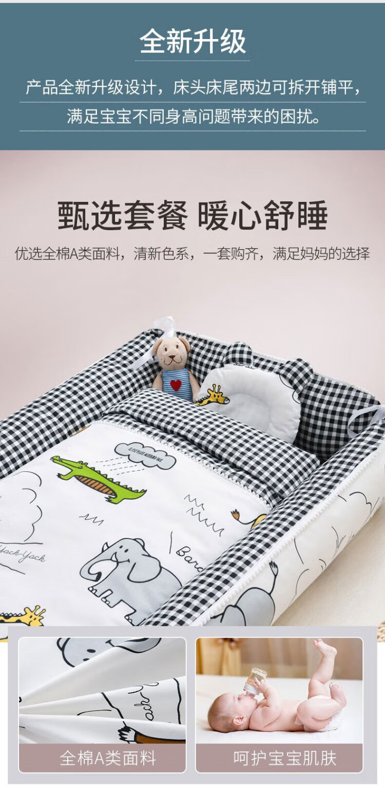 Gudong Bear crib mid-bed bed soothing artifact multi-functional newborn portable baby play bed detachable mobile bionic Animal World with quilt (set of four)