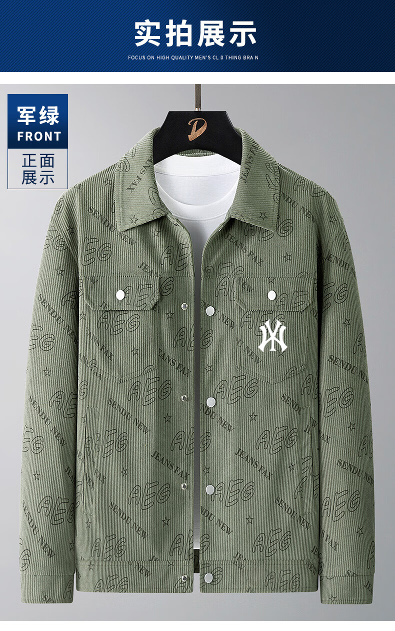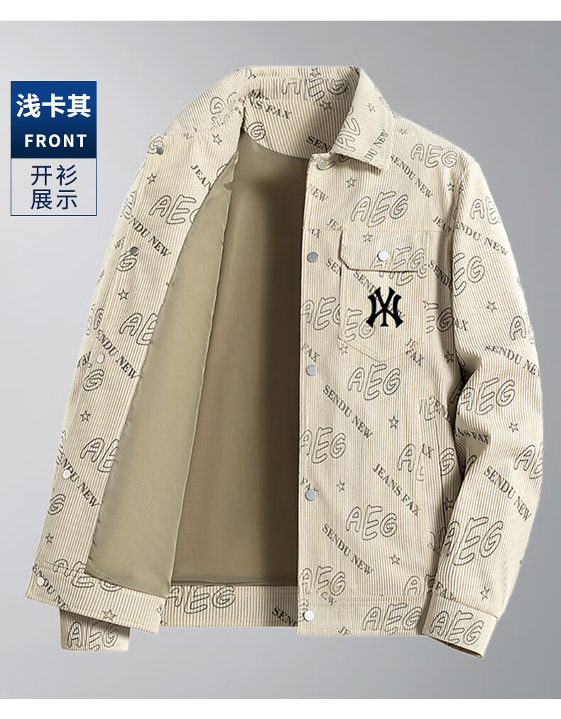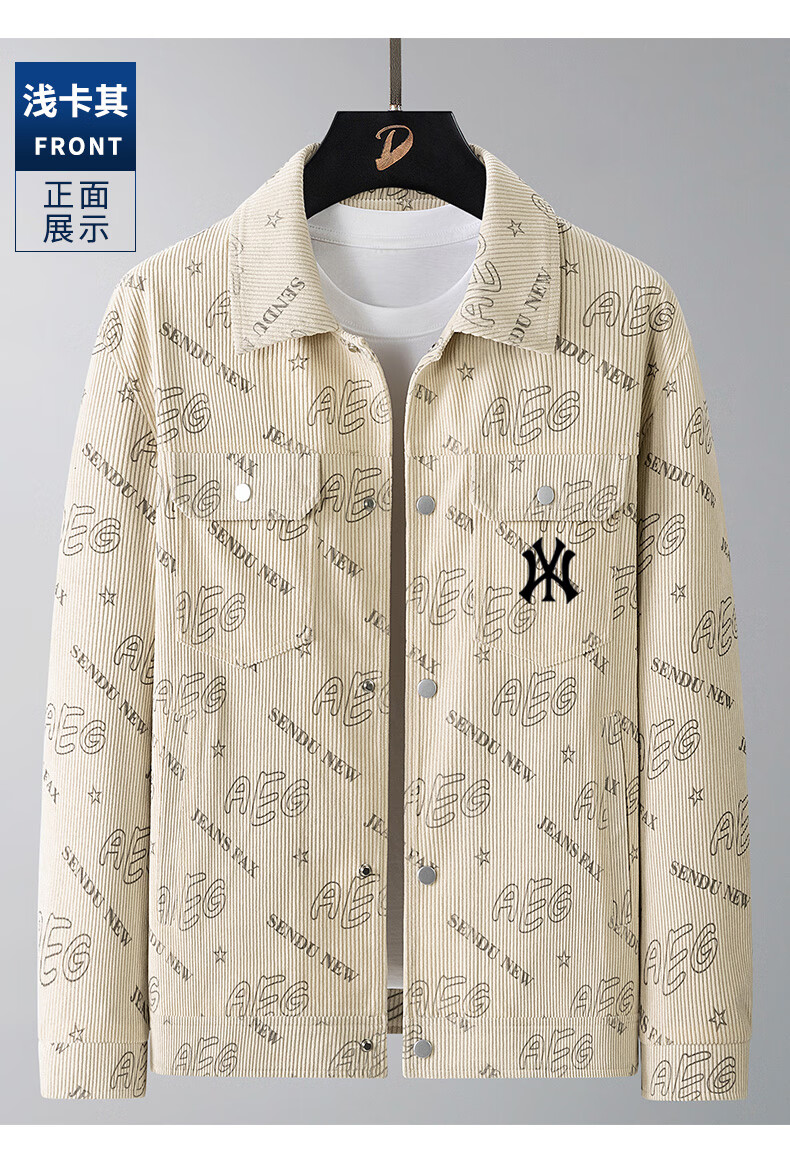 PHIELIERPS official trendy brand casual jacket for men in autumn and winter Korean style printed handsome lapel high street jacket baseball uniform top for men Khaki - Spring and Autumn (NE01) XL (recommended 130-150Jin Jin is equal to 0.5kg)