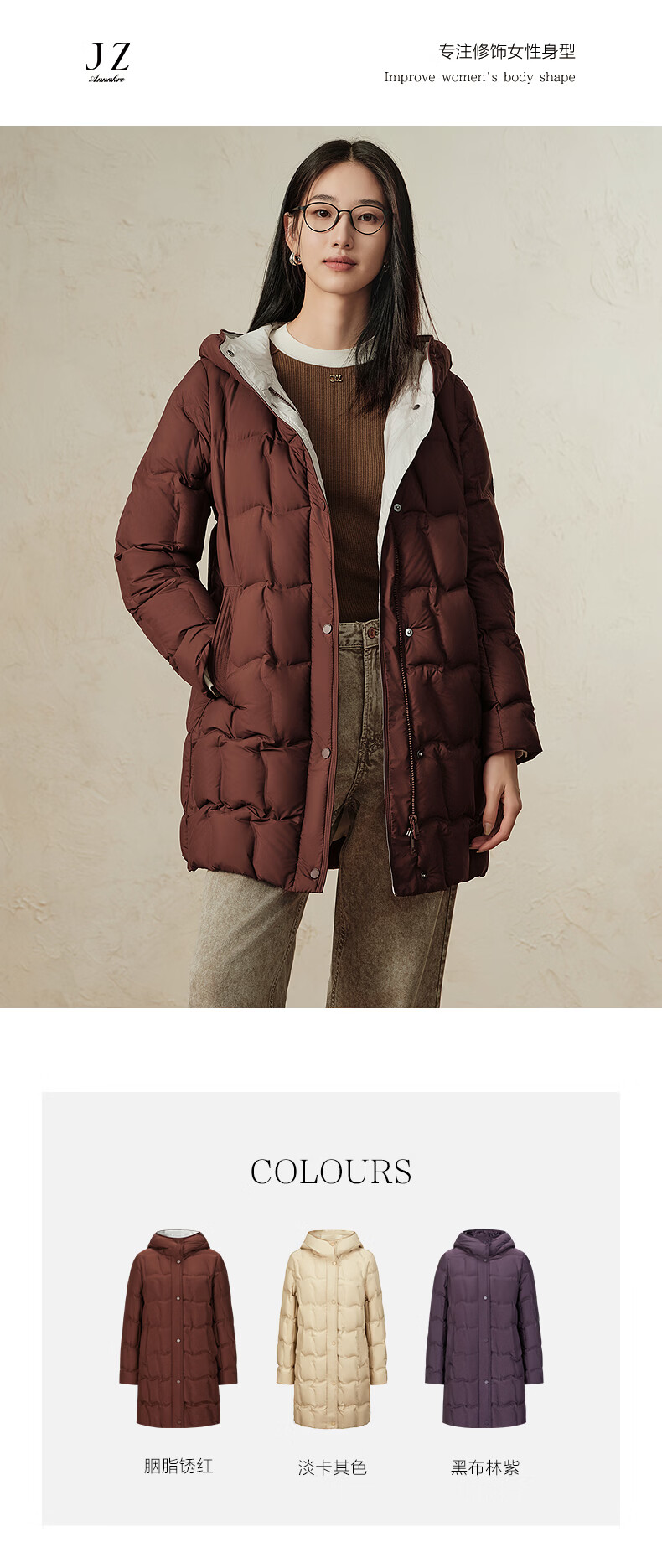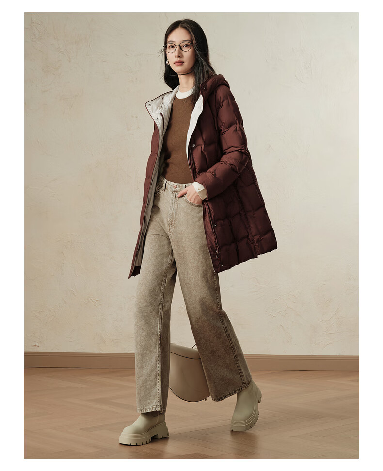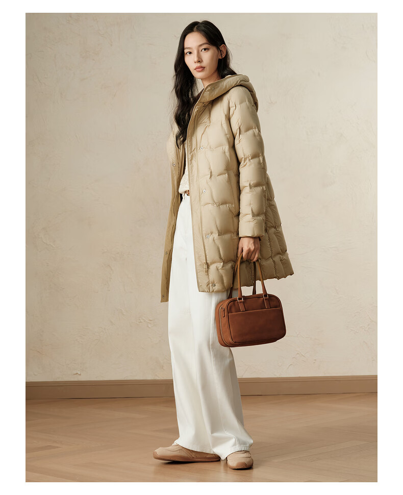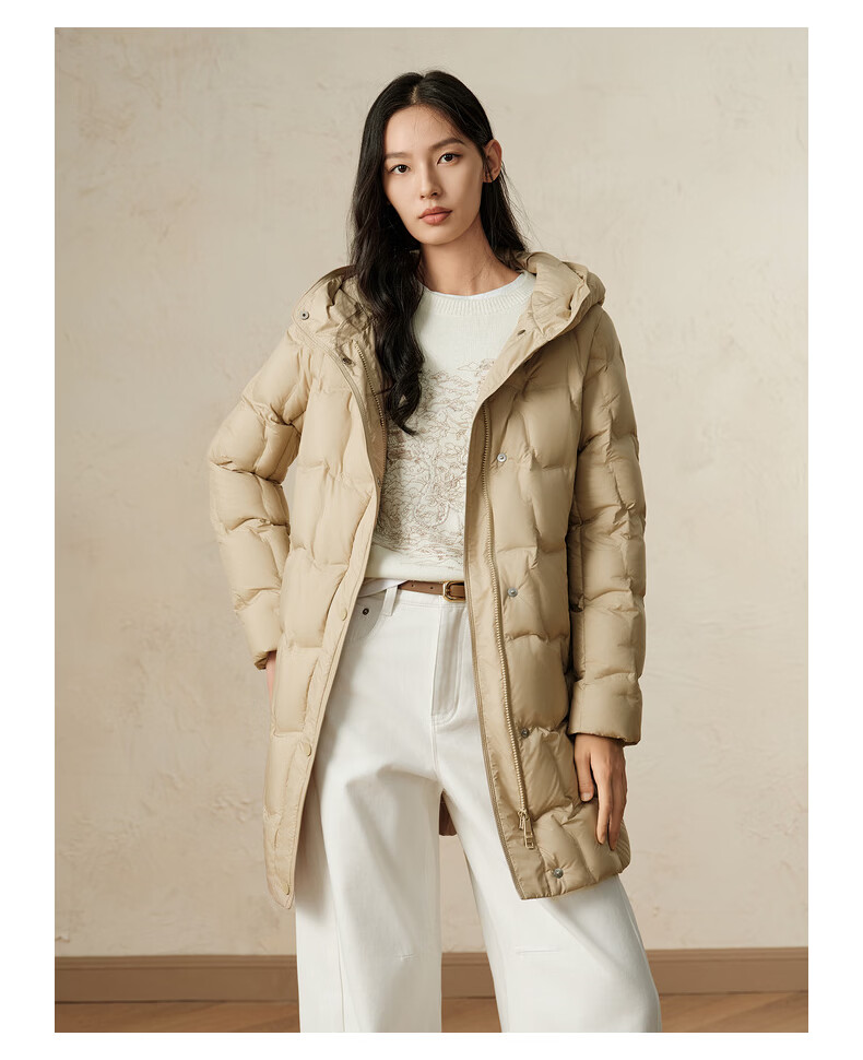 Jiuzi Annako Down Enjoy Casual Simple Light Warm White Duck Down Mid-Length Down Women's Winter Khaki M