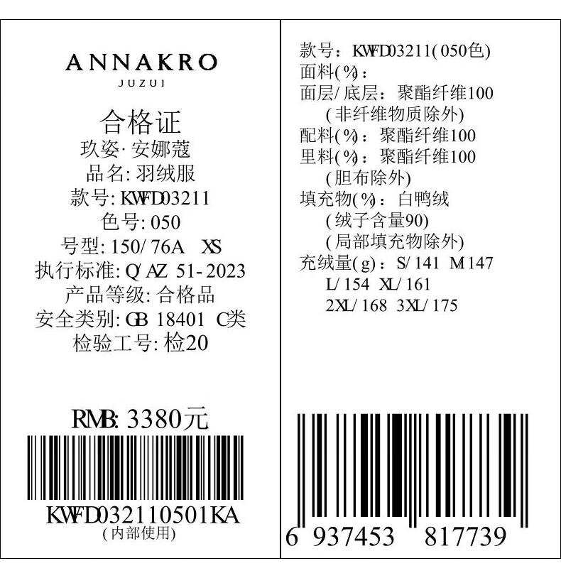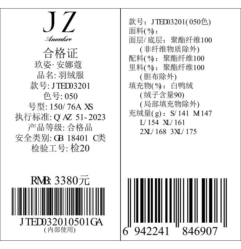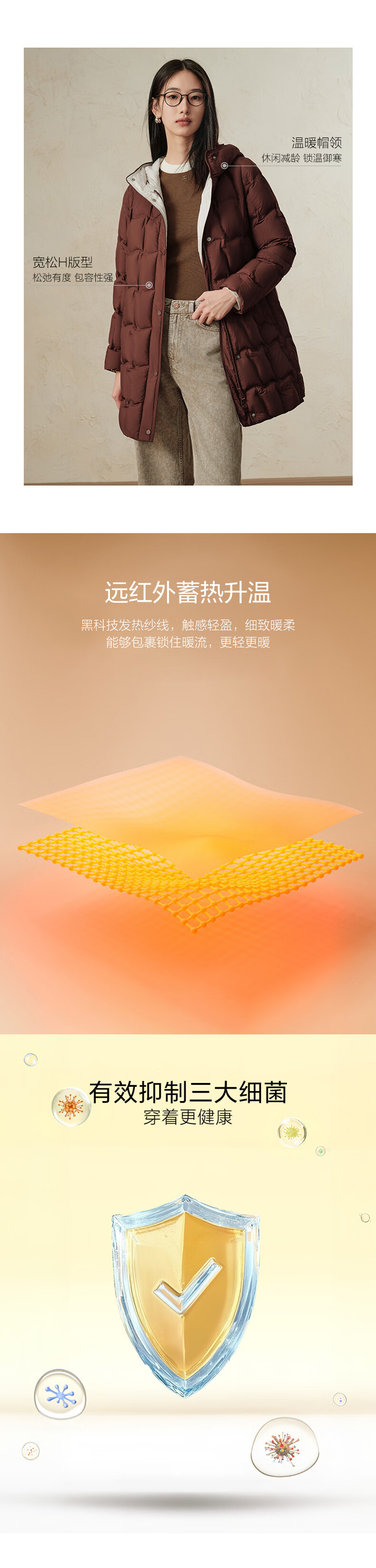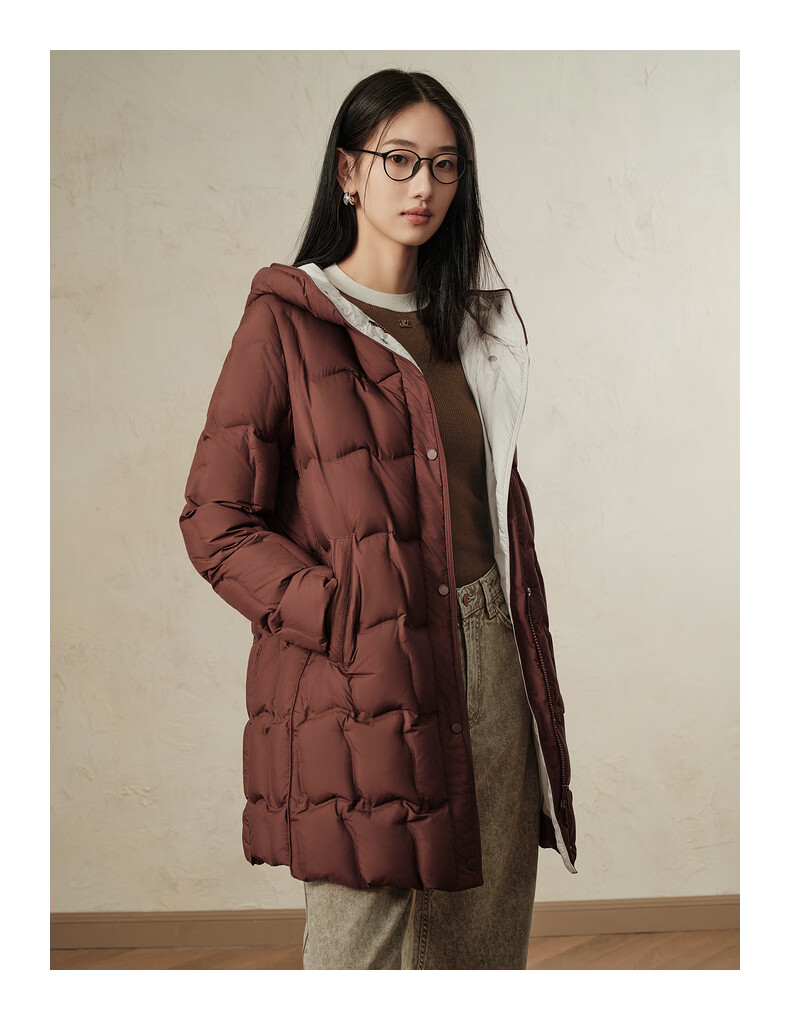Jiuzi Annako Down Enjoy Casual Simple Light Warm White Duck Down Mid-Length Down Women's Winter Khaki M