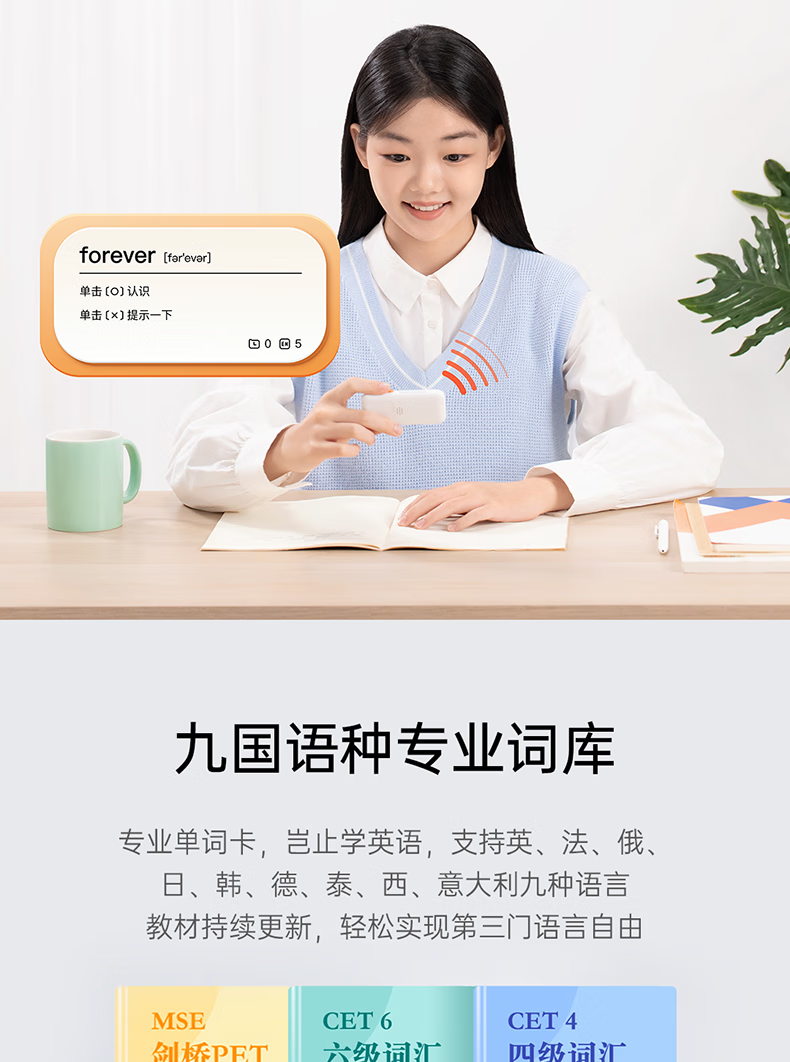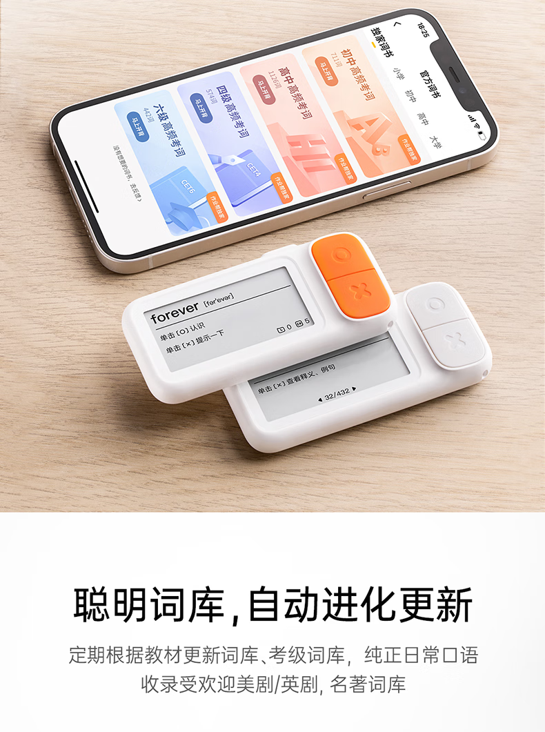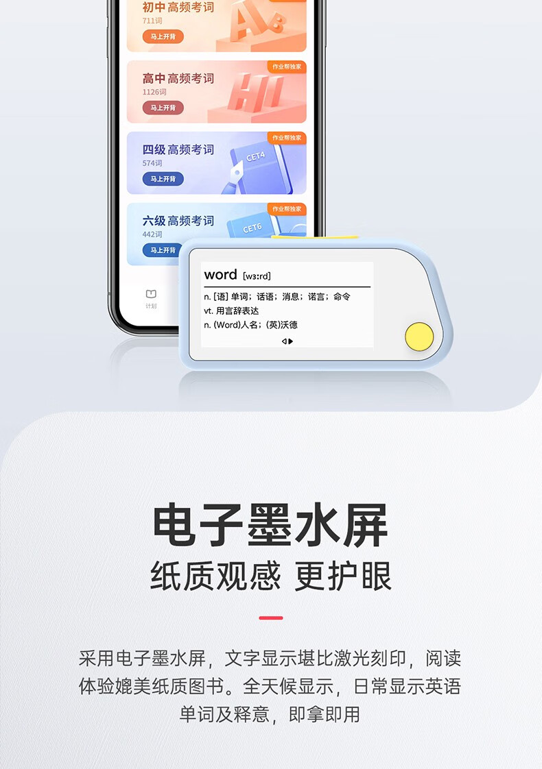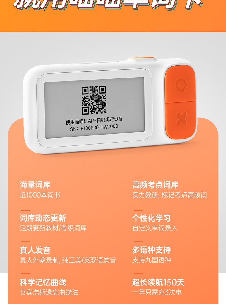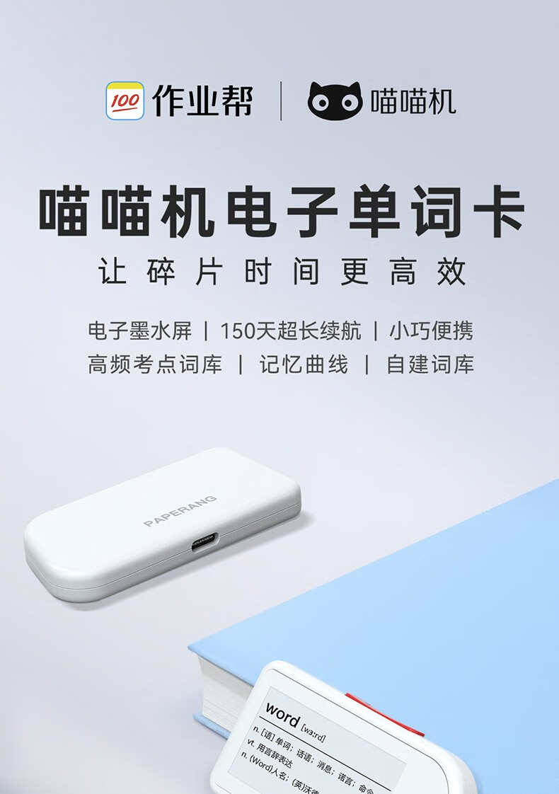 Meow Meow Machine Homework Helper English Word Memorization Artifact Electronic Word Card E2Plus Handheld Word Book Contains Primary School Junior High School High School College Postgraduate Entrance Examination TOEFL IELTS English Vocabulary 2.66-inch Large Screen E2plus AI Precision Learning Word Learning Machine