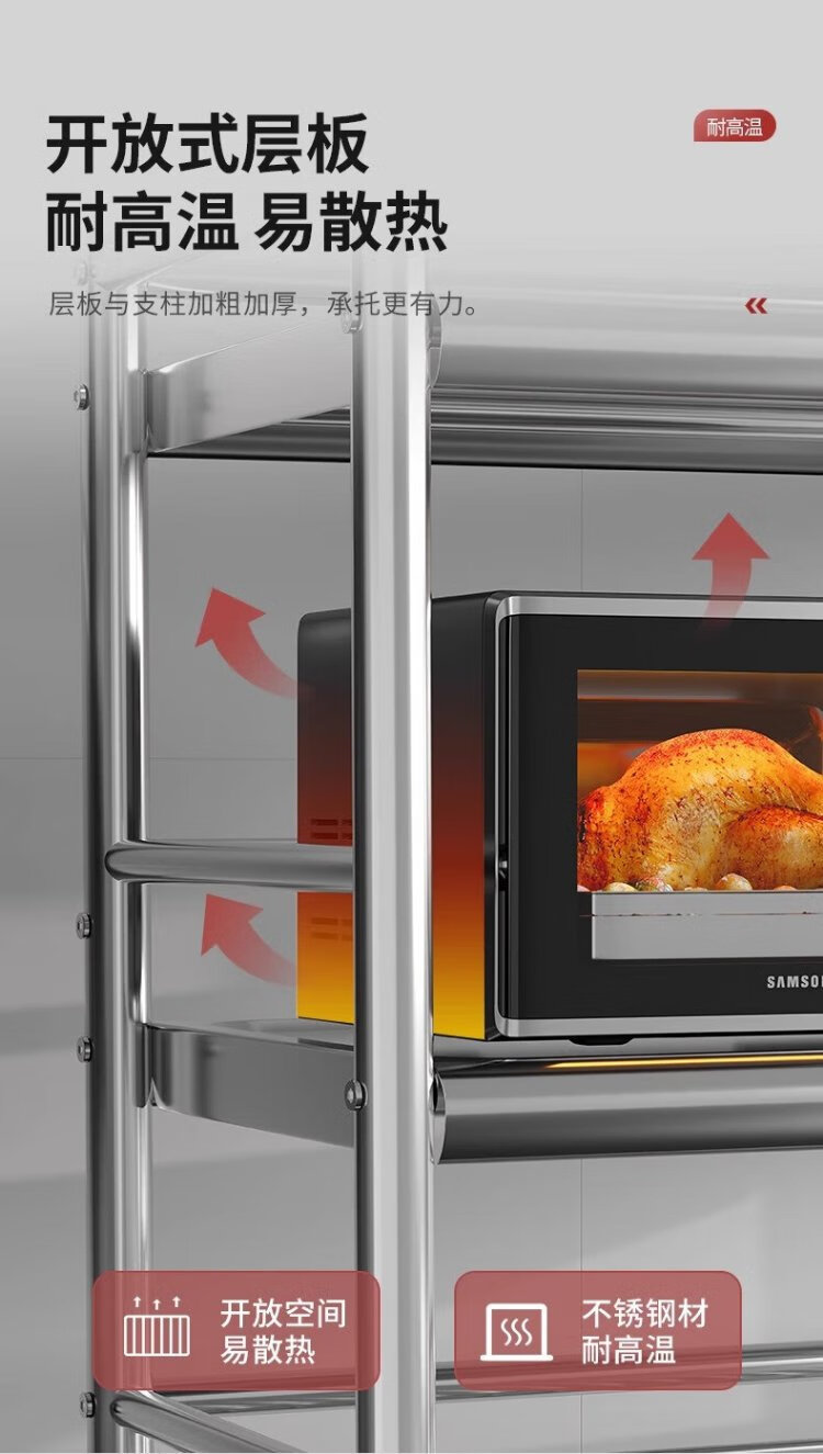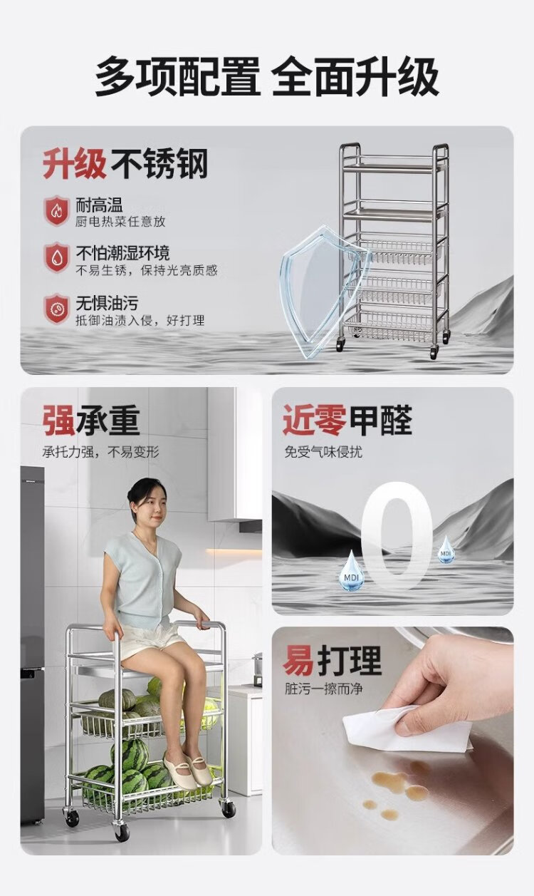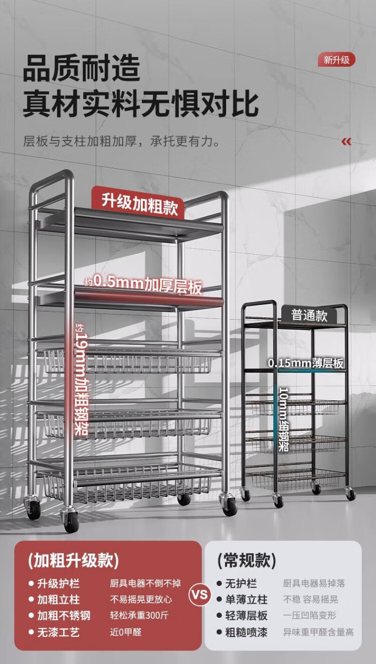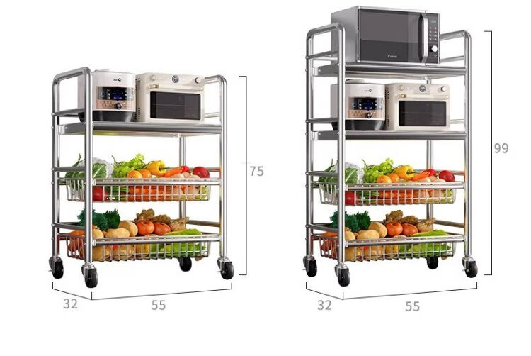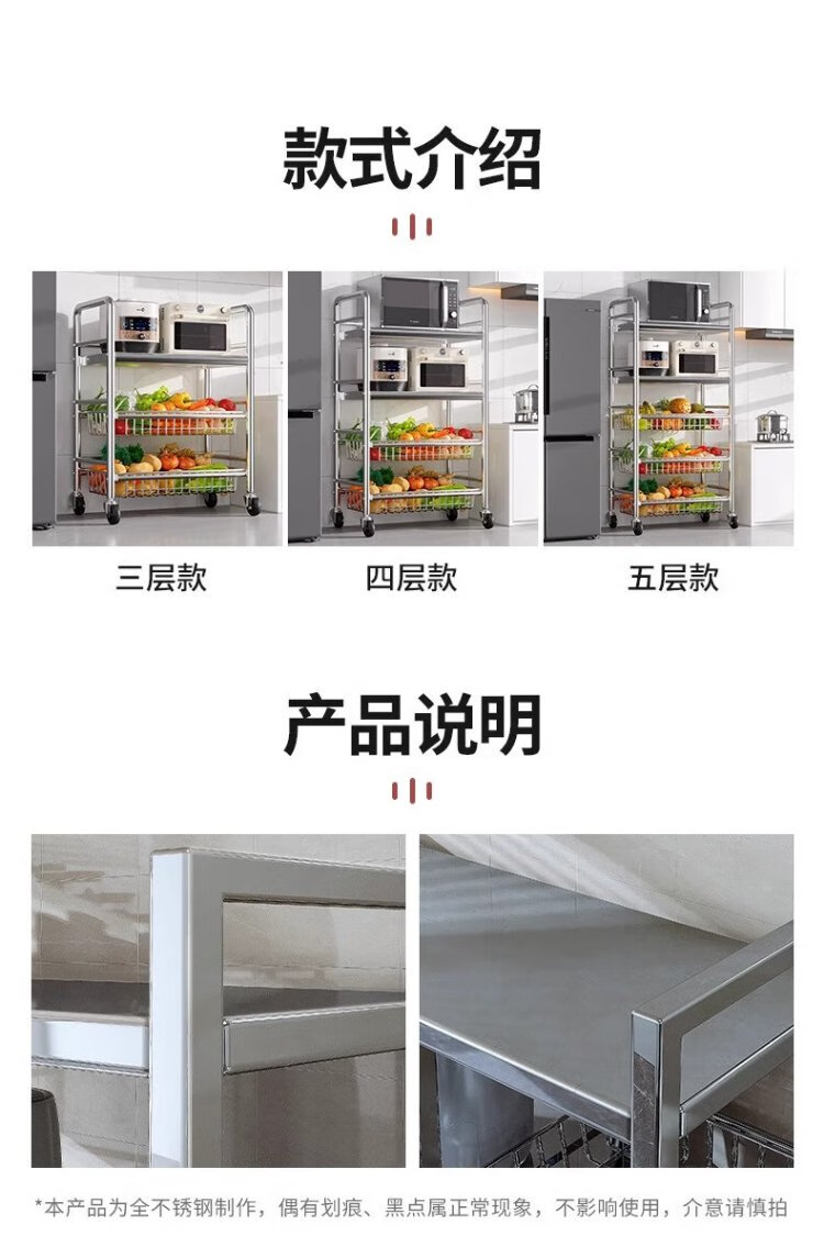 Taodehao stainless steel kitchen rack floor-standing multi-layer movable vegetable basket for fruit and vegetable storage rack trolley three layers丨three baskets without plates stainless steel