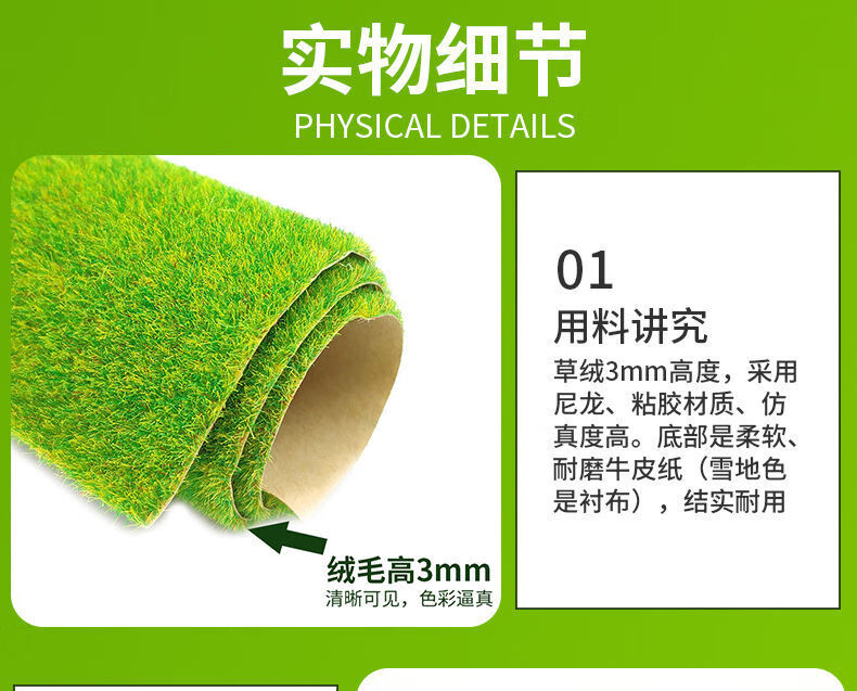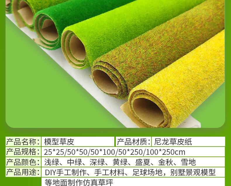 Runhuanian sand table model turf building model material diy handmade sand table lawn outdoor grass powder turf paper light green 50*100cm1 sheet